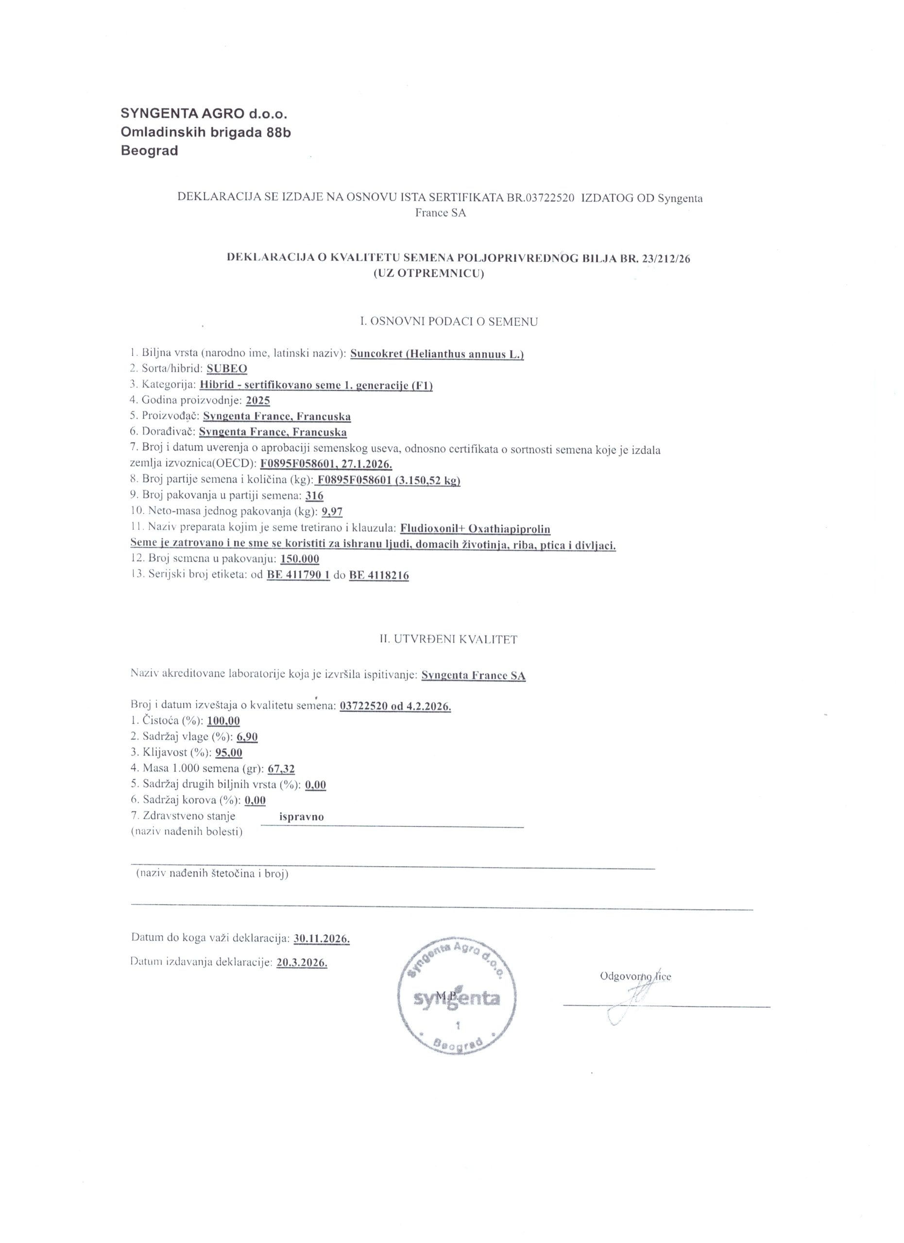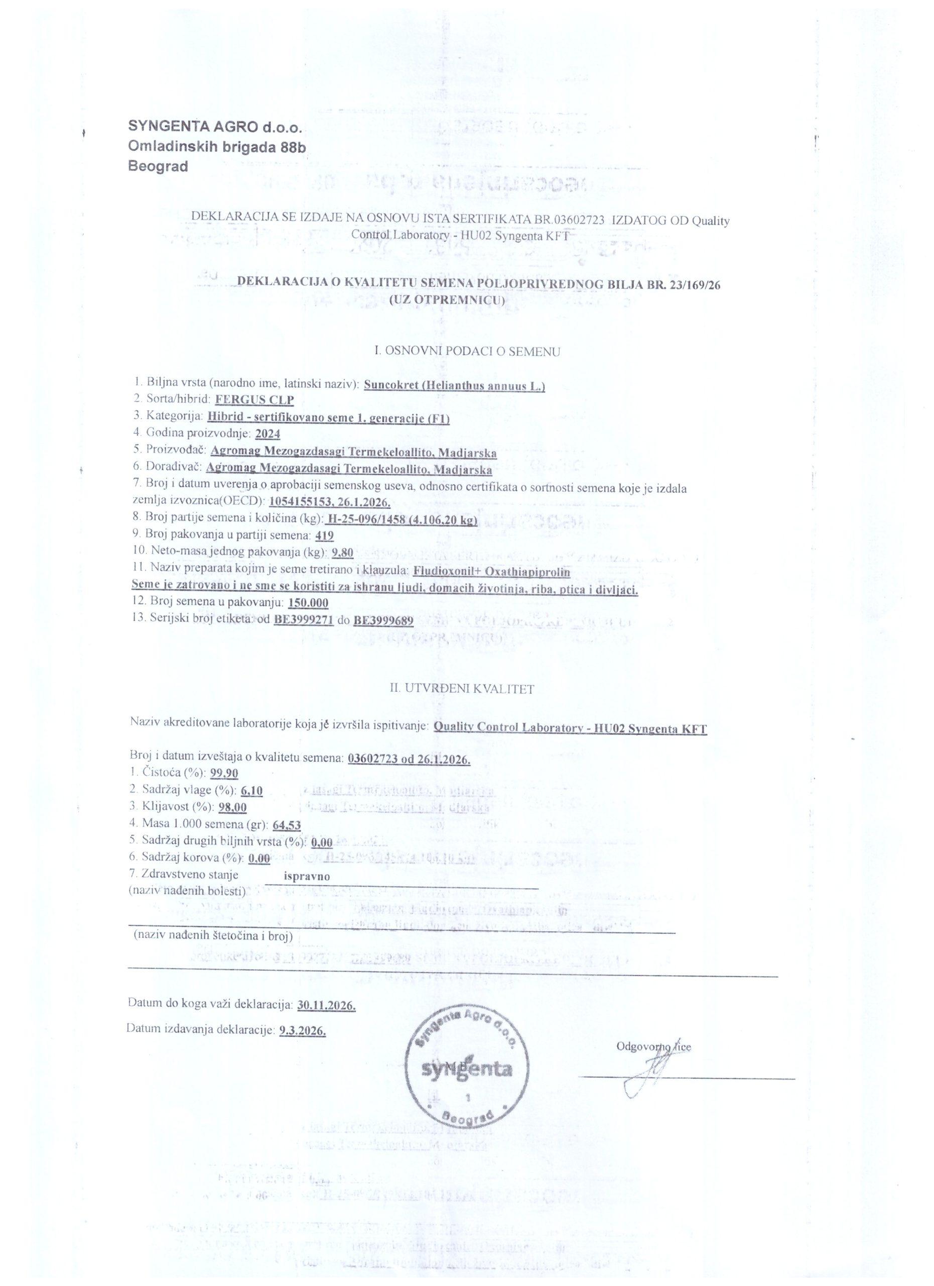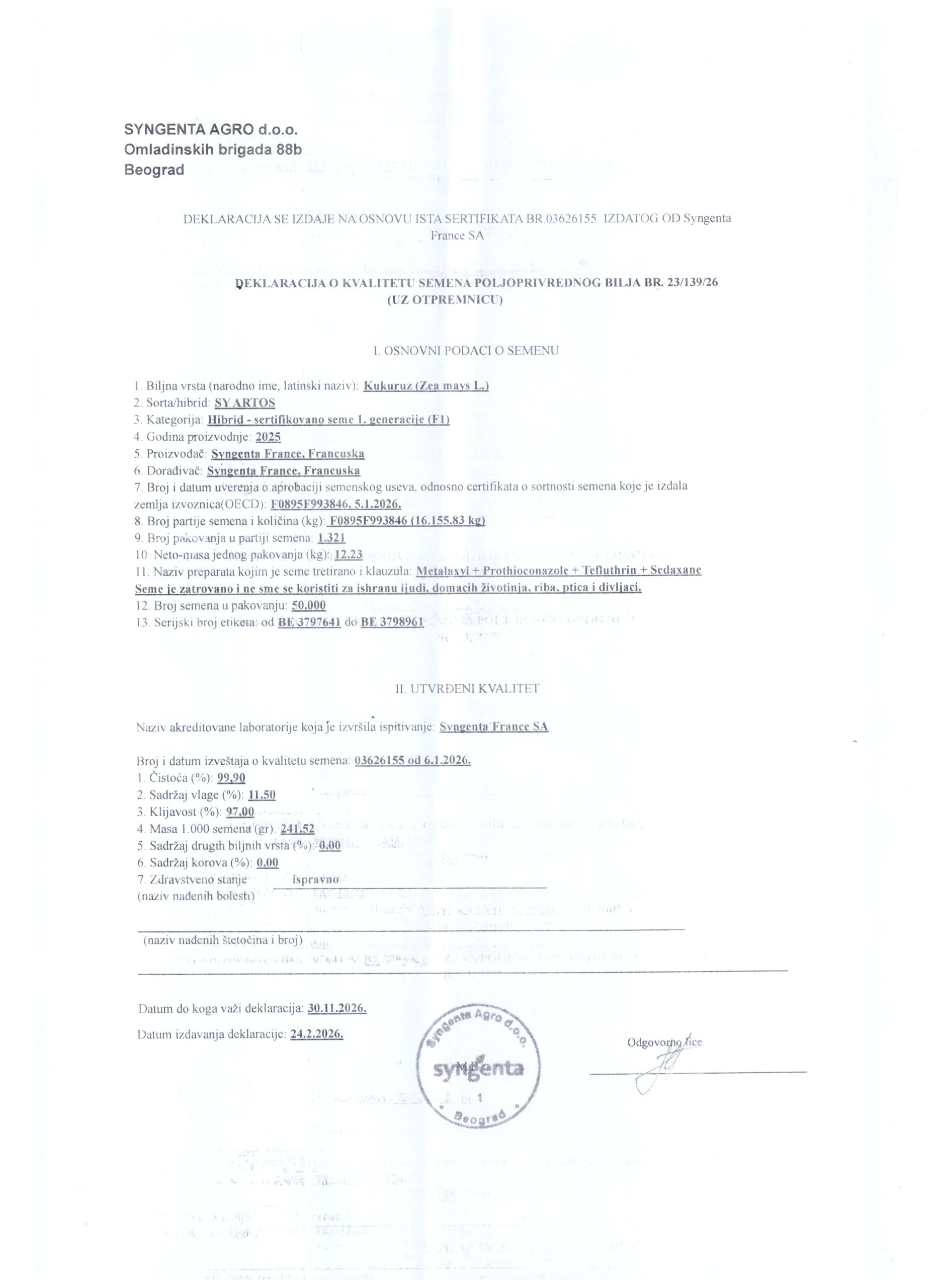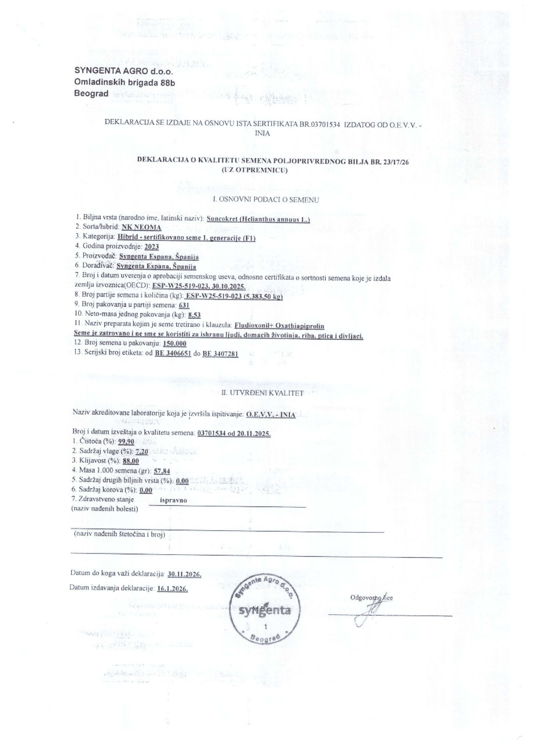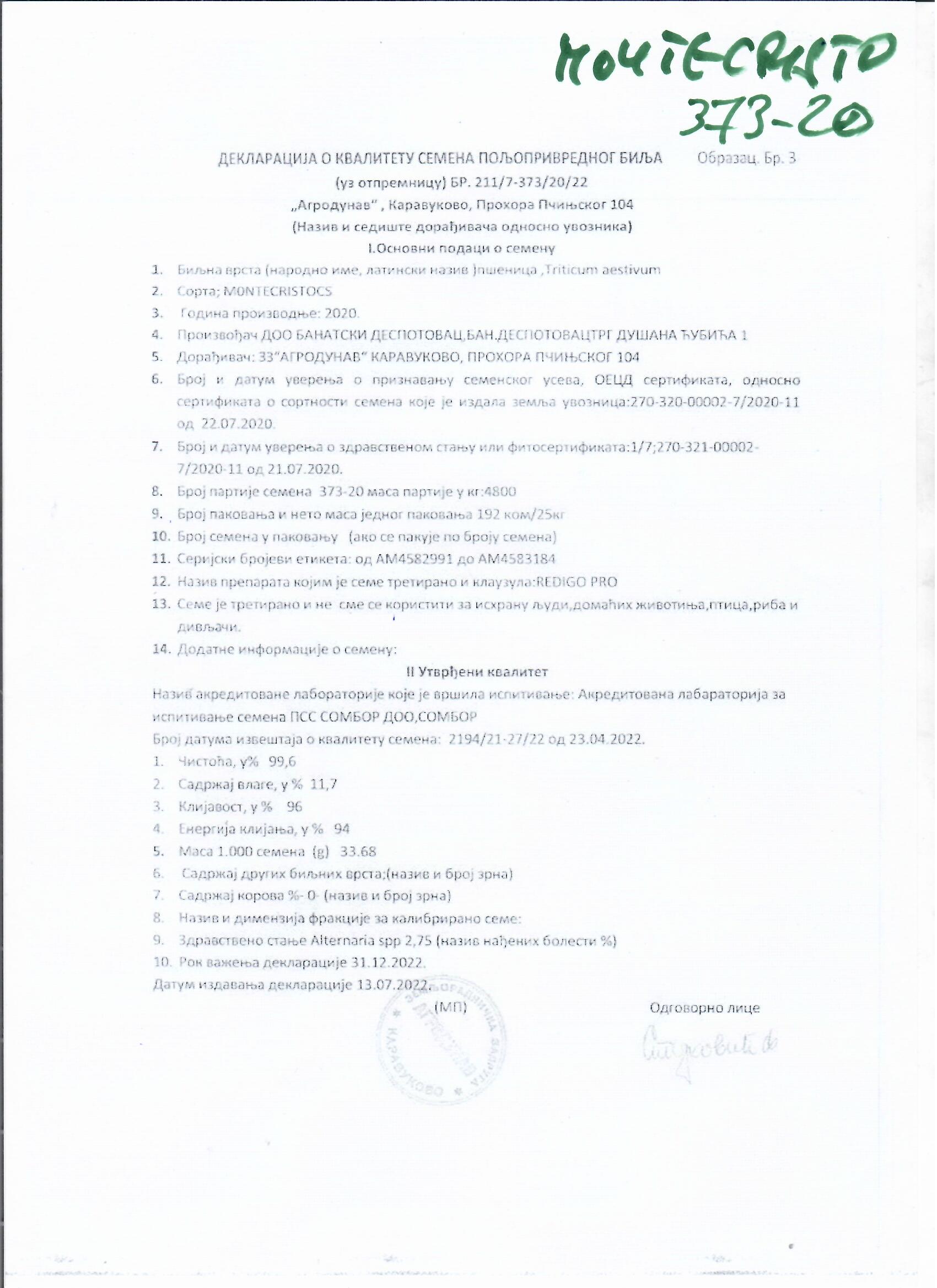 Uvoz i distribucija sredstava za zažštitu bilja kompanije NUFARM GmbH & Co KG, semena kukuruza i semena uljane repice kompanije MONSANTO INTERNATIONAL SARL.