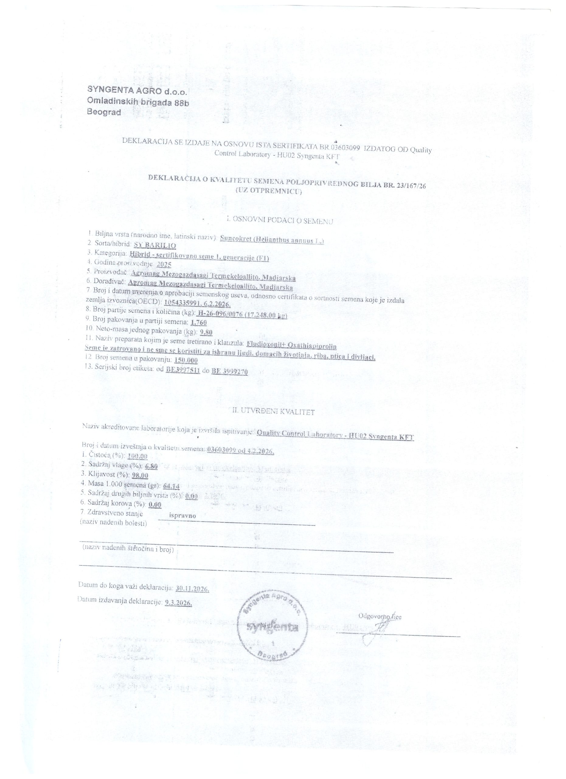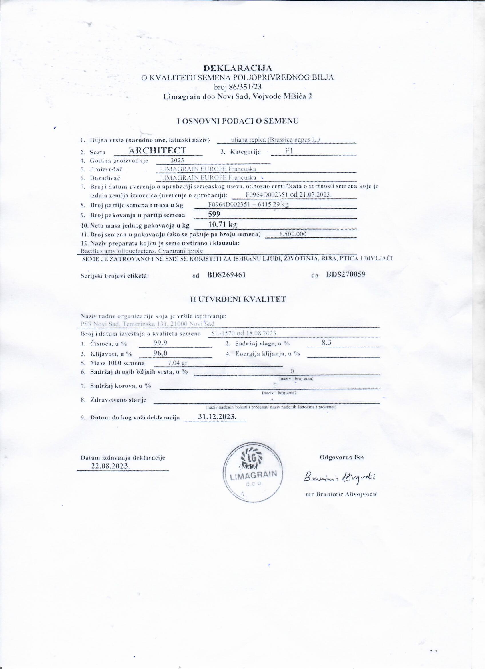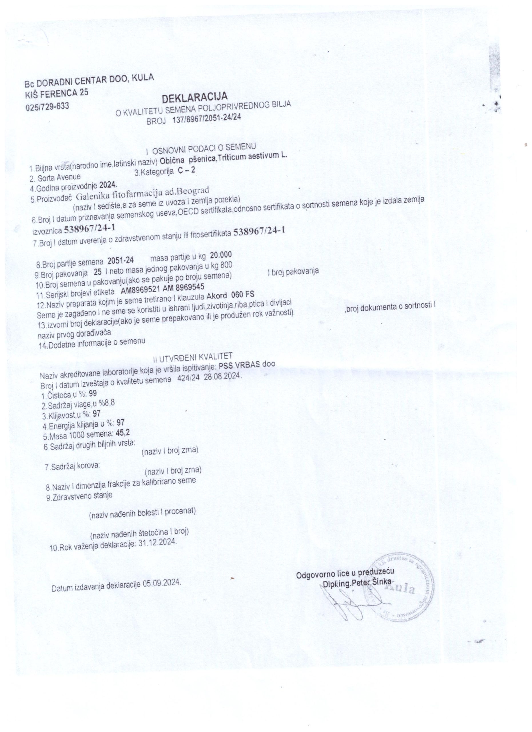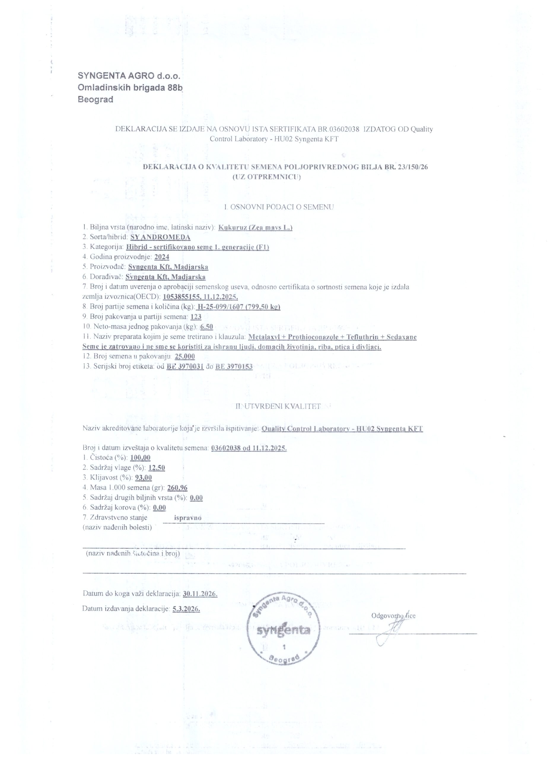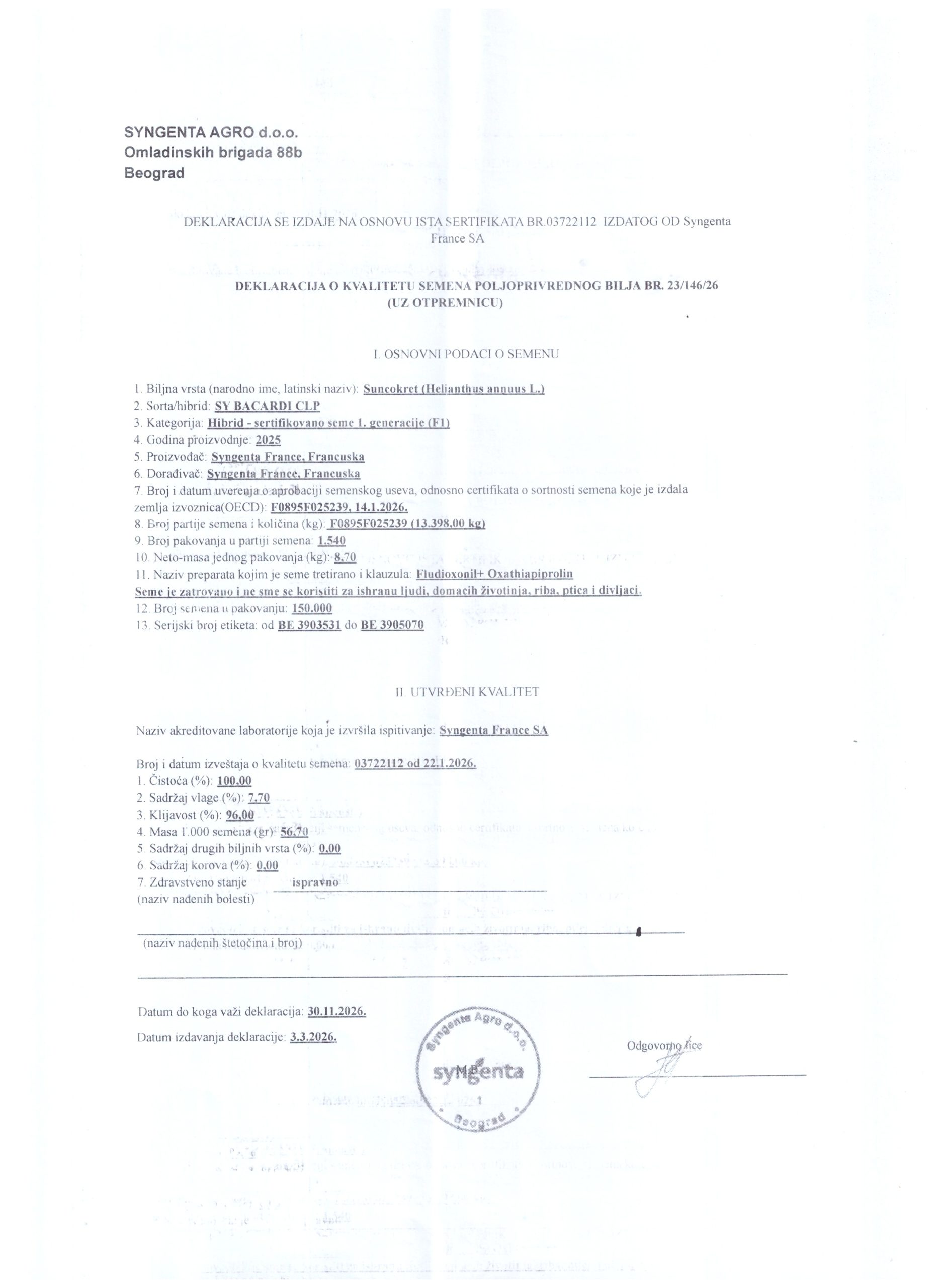 Uvoz i distribucija sredstava za zažštitu bilja kompanije NUFARM GmbH & Co KG, semena kukuruza i semena uljane repice kompanije MONSANTO INTERNATIONAL SARL.