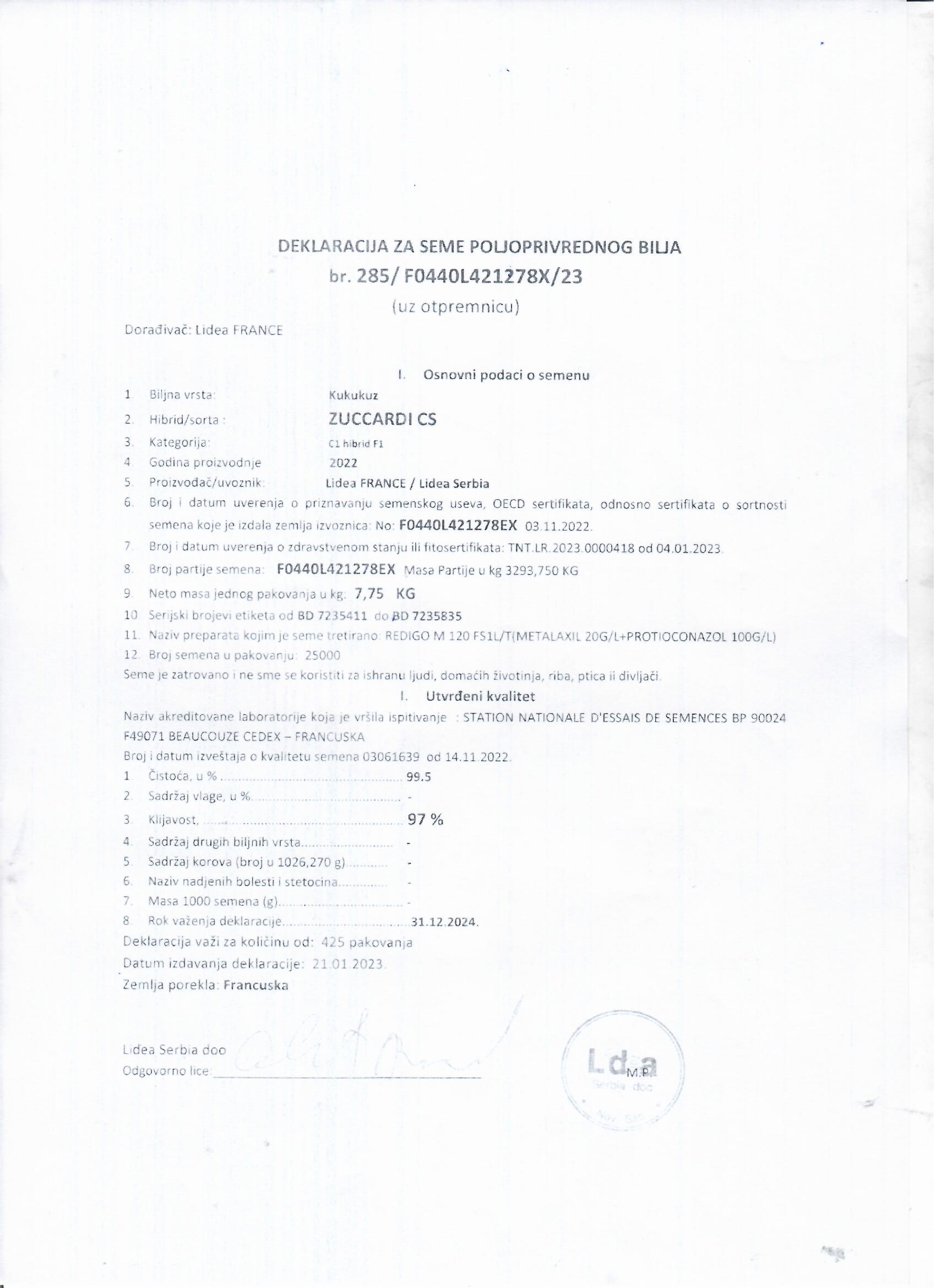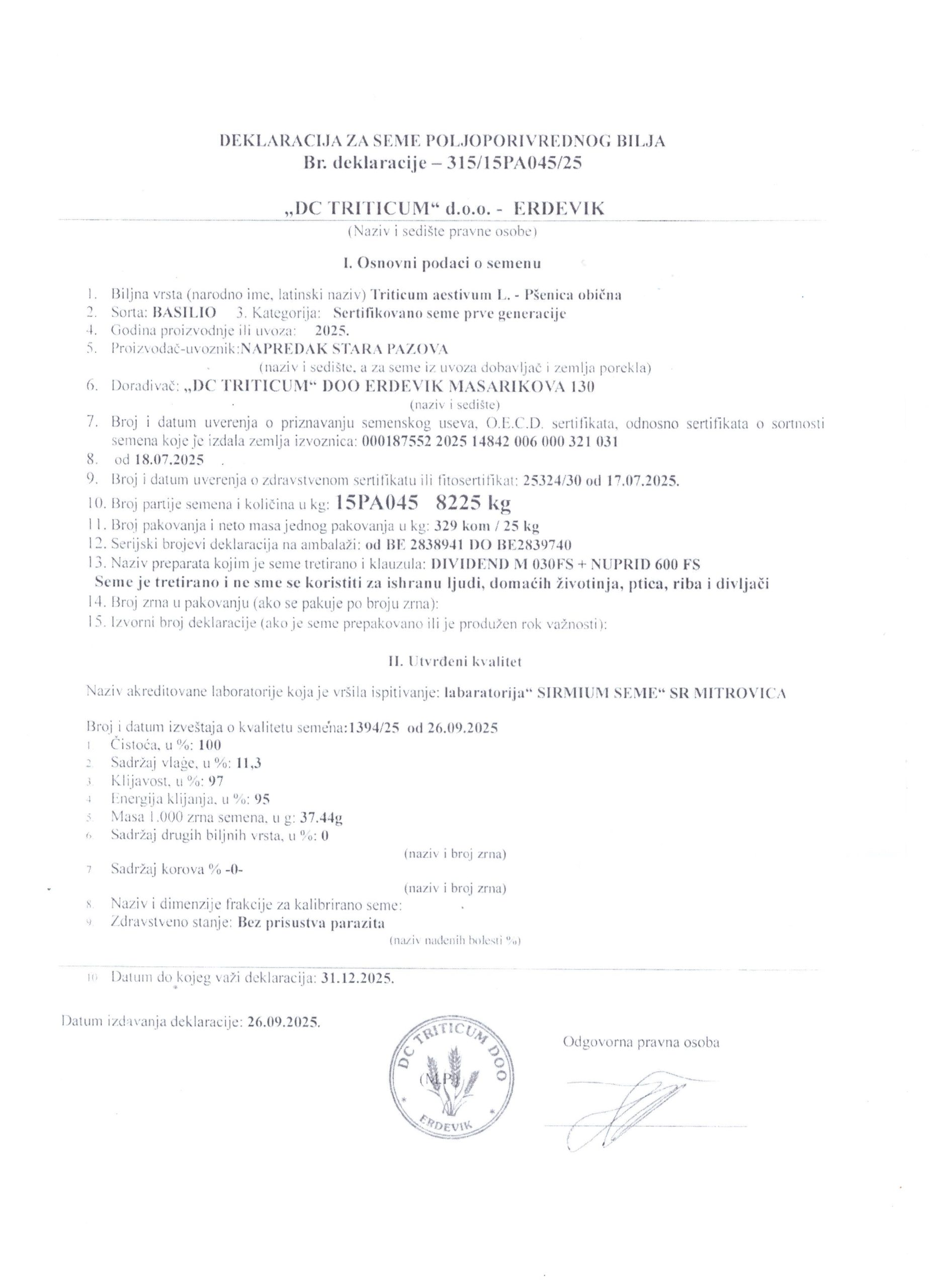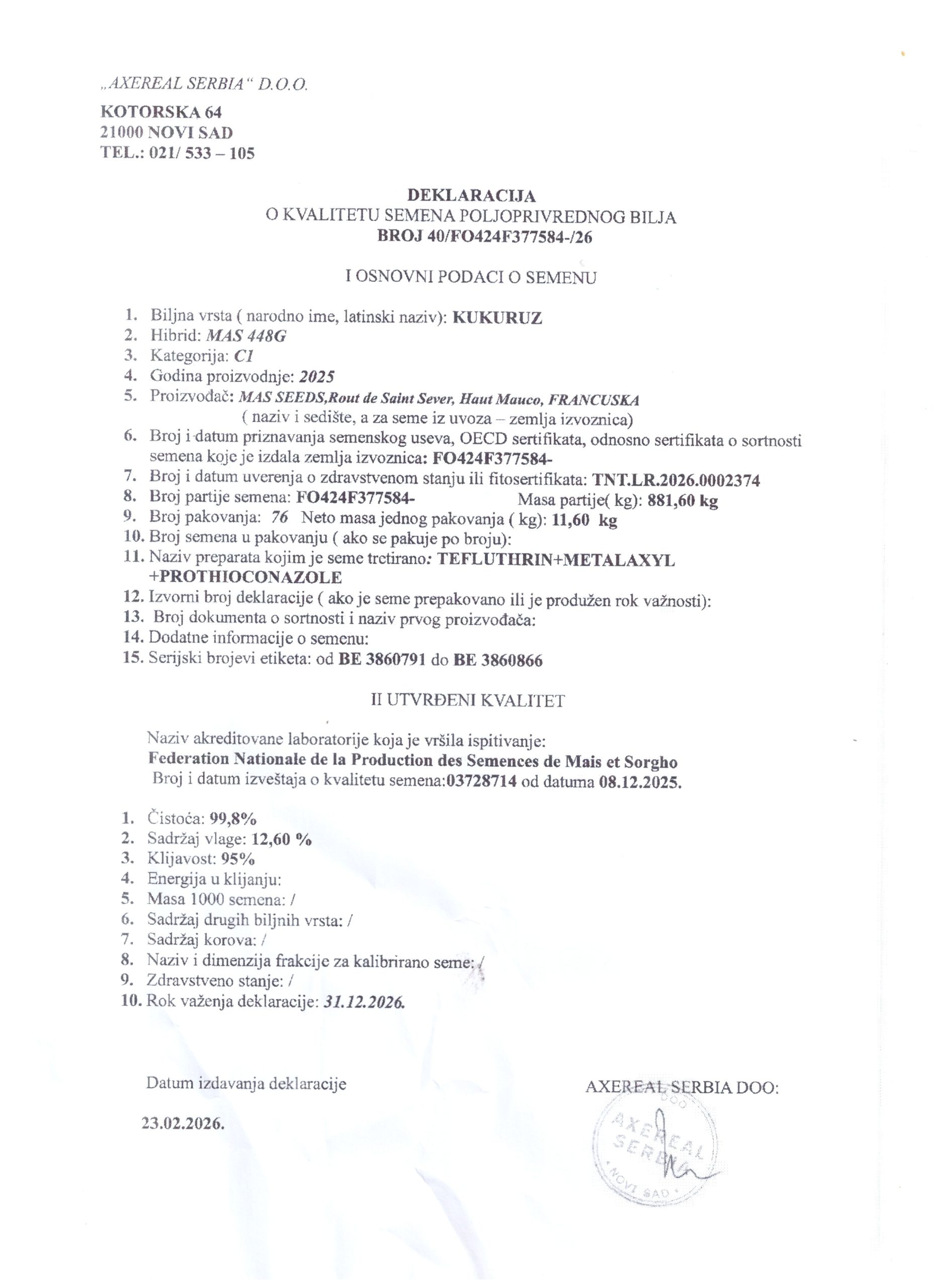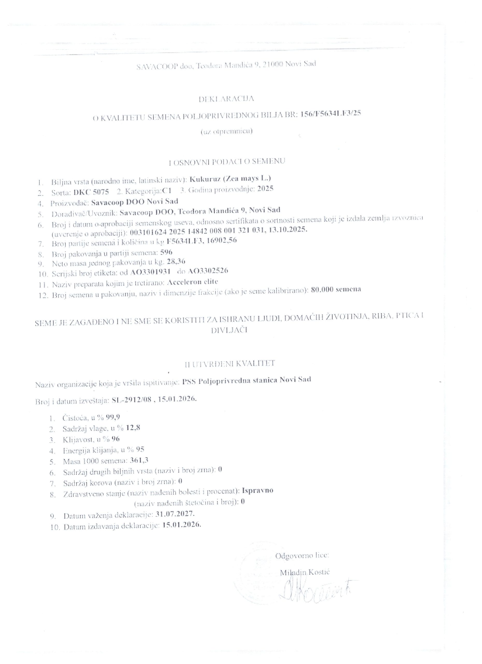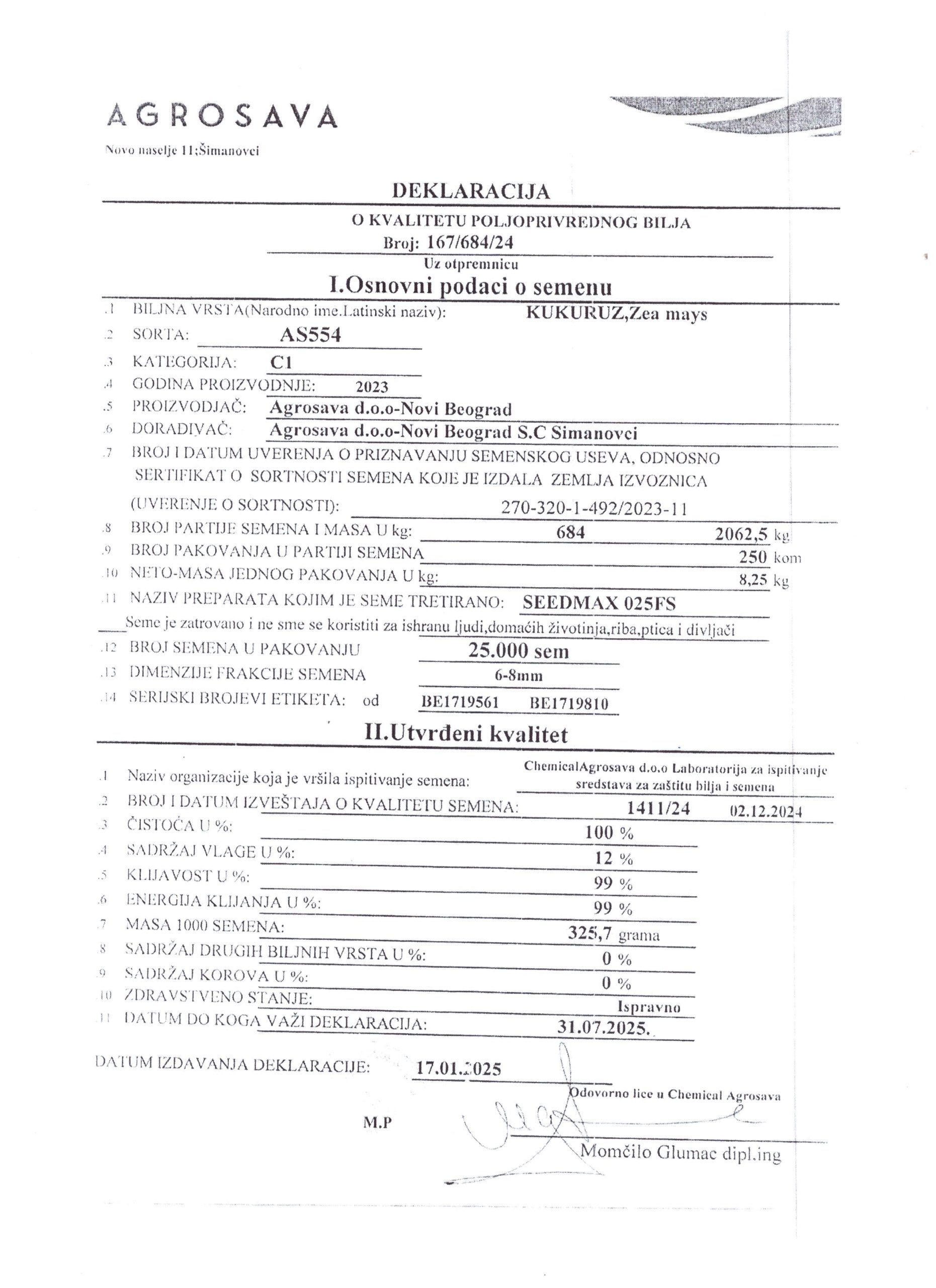 Uvoz i distribucija sredstava za zažštitu bilja kompanije NUFARM GmbH & Co KG, semena kukuruza i semena uljane repice kompanije MONSANTO INTERNATIONAL SARL.