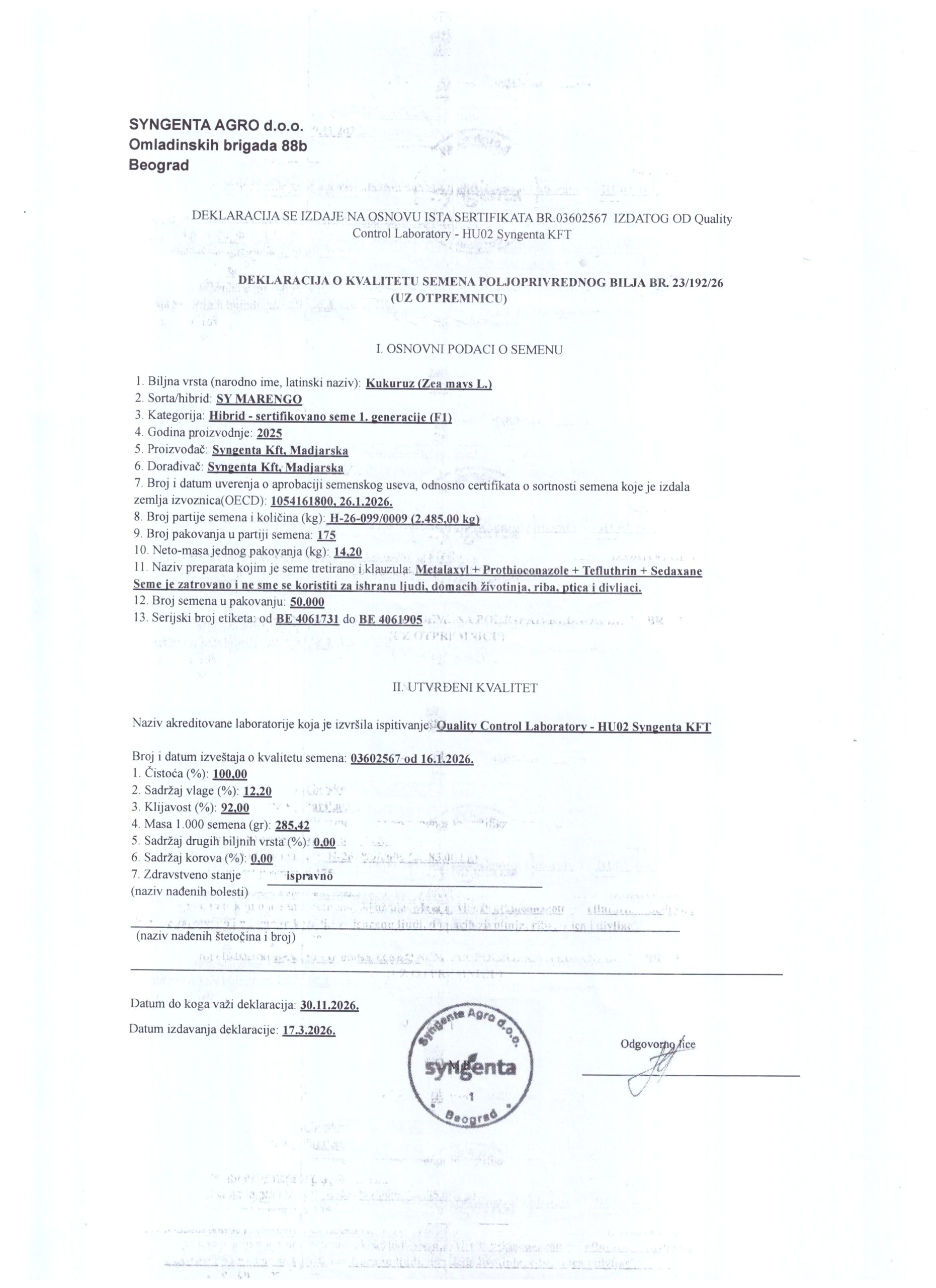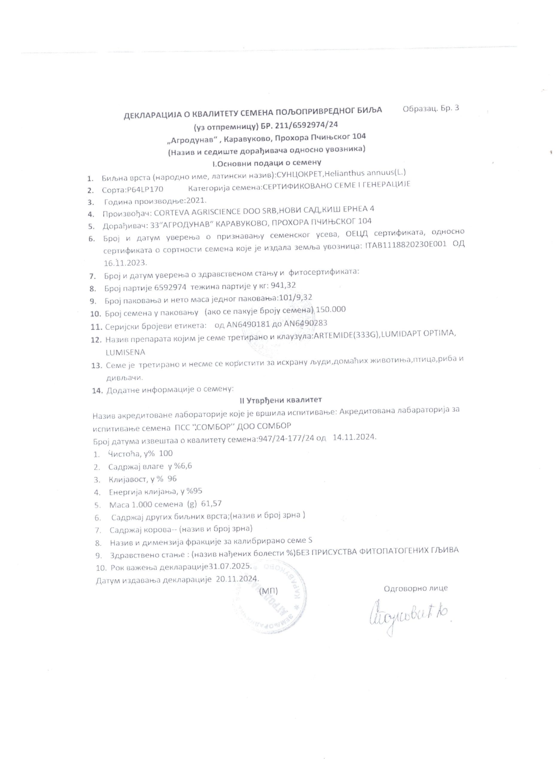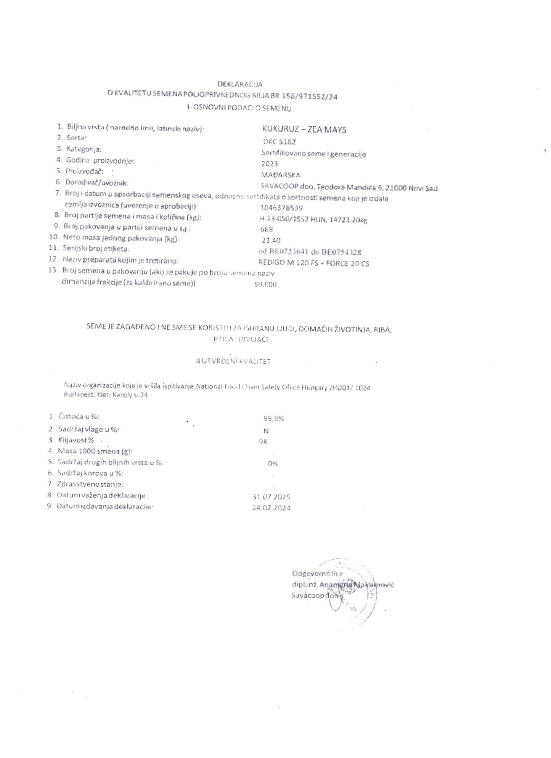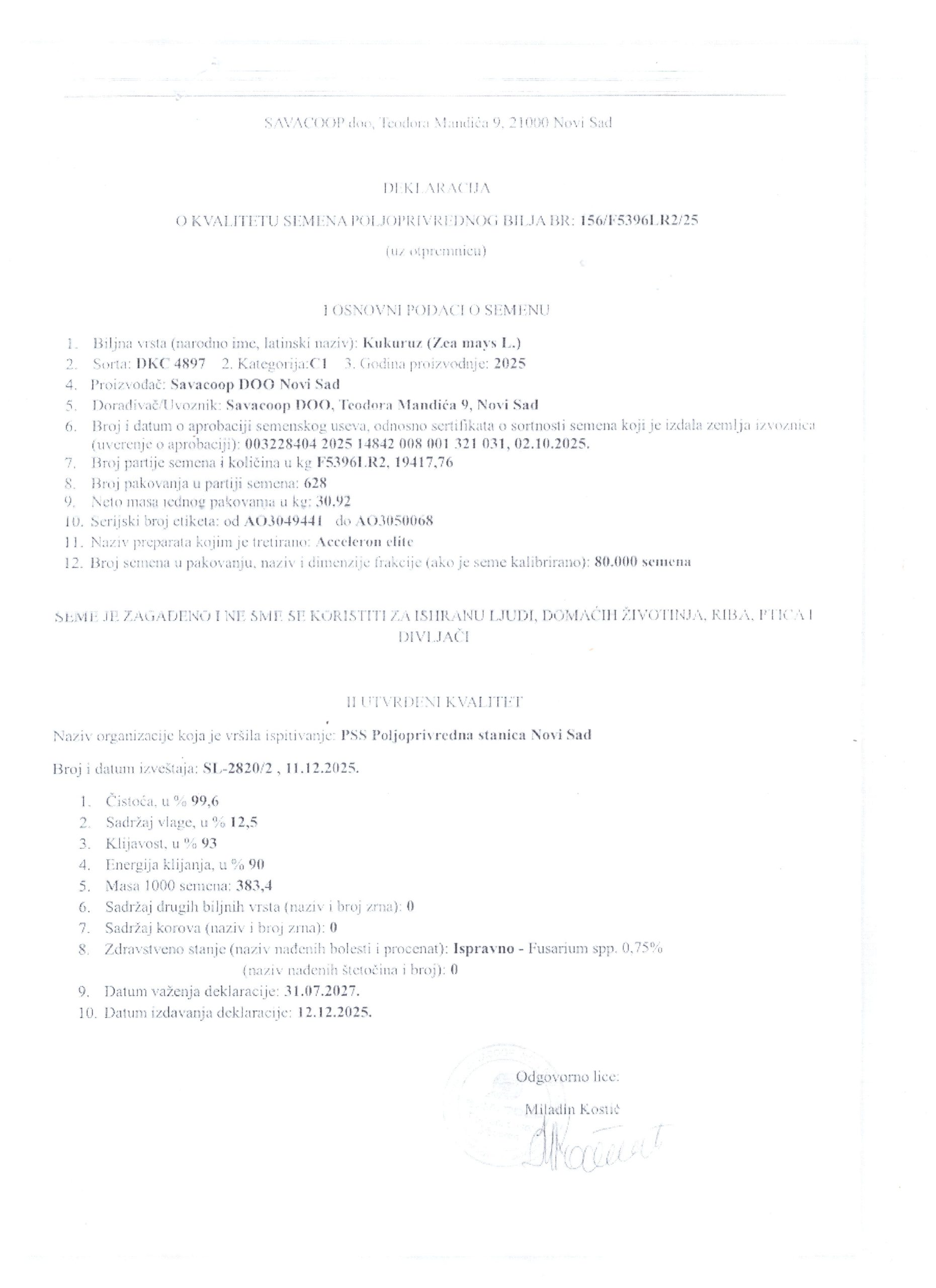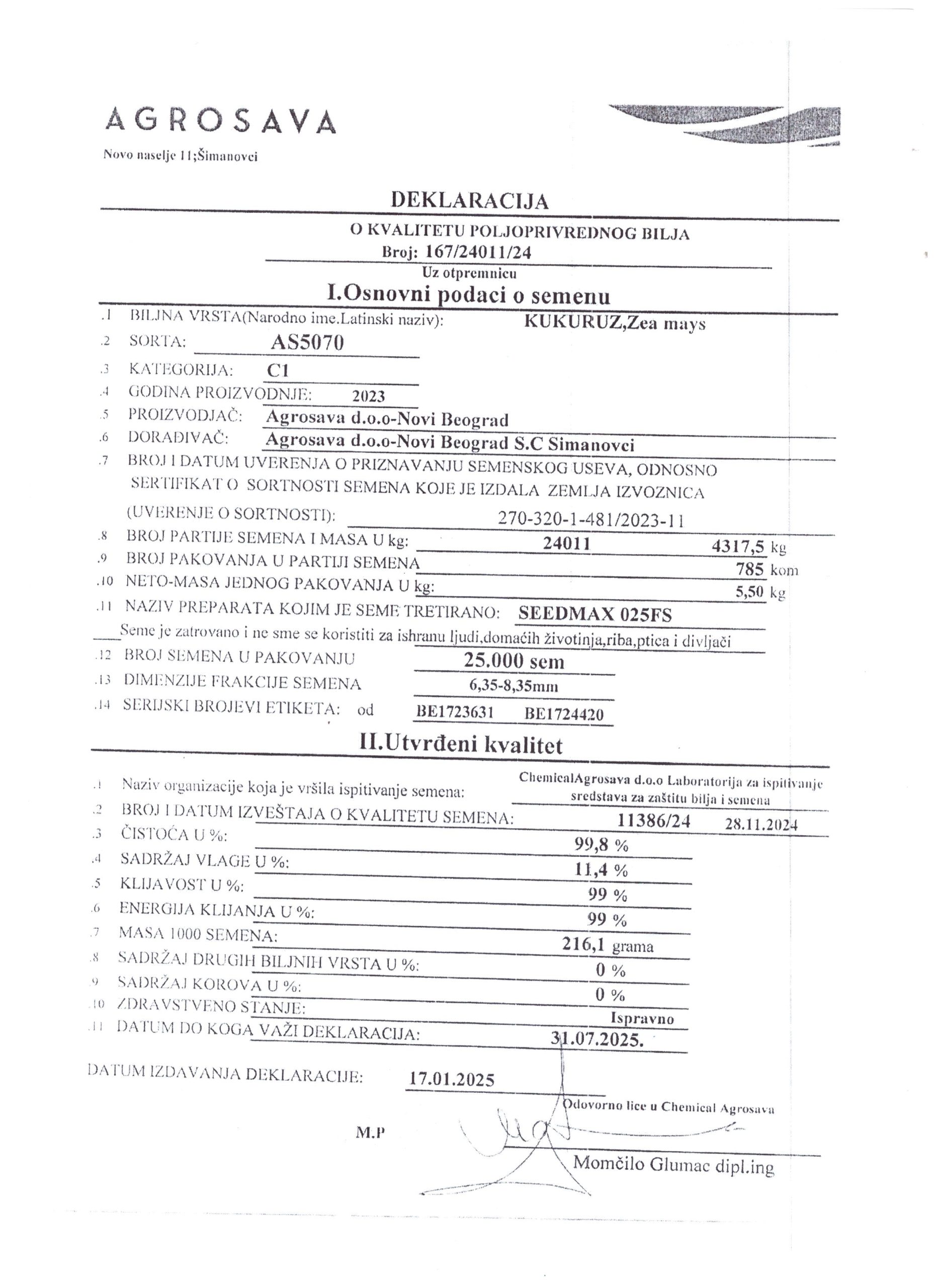 Uvoz i distribucija sredstava za zažštitu bilja kompanije NUFARM GmbH & Co KG, semena kukuruza i semena uljane repice kompanije MONSANTO INTERNATIONAL SARL.