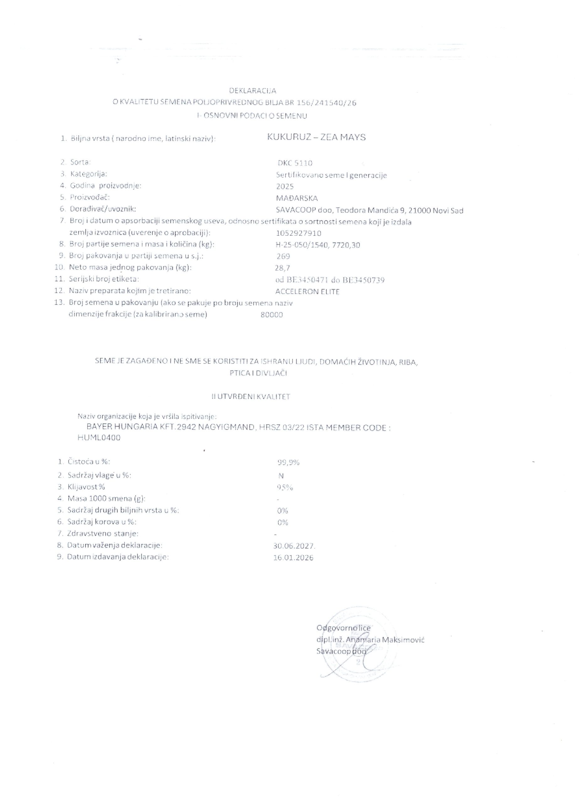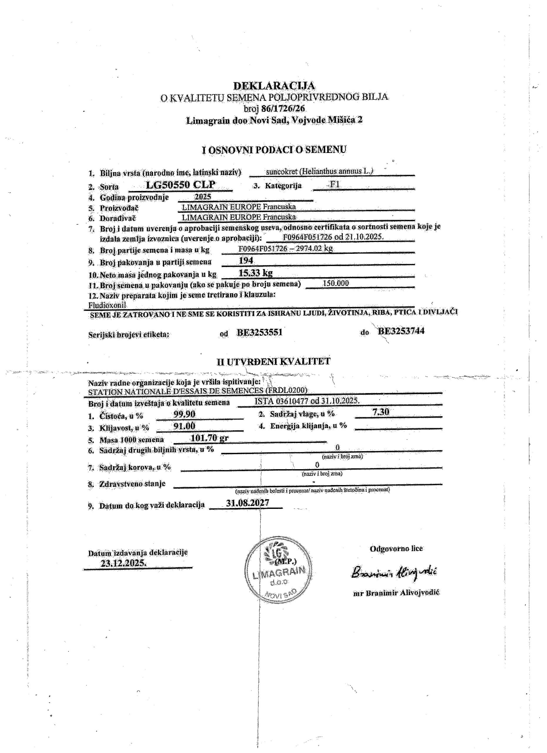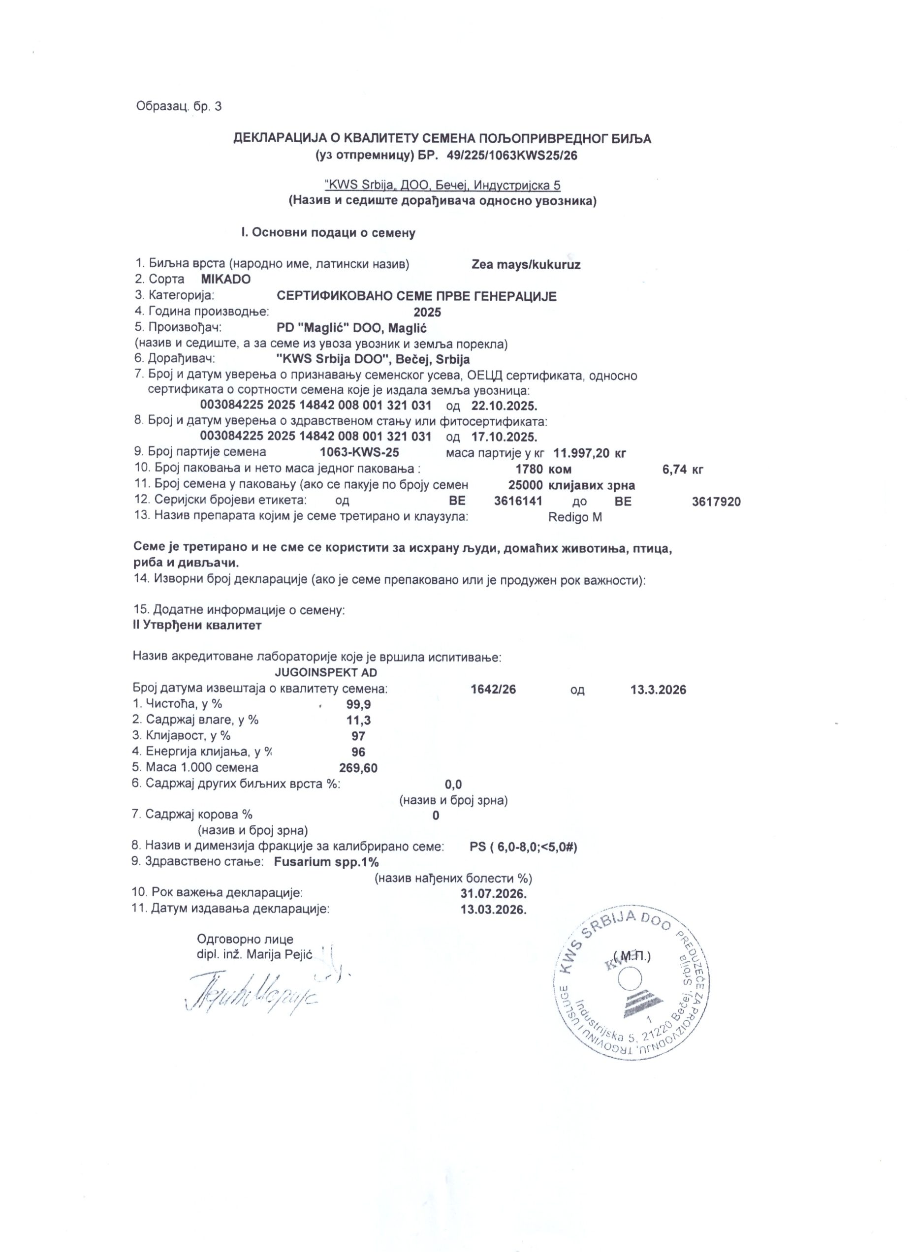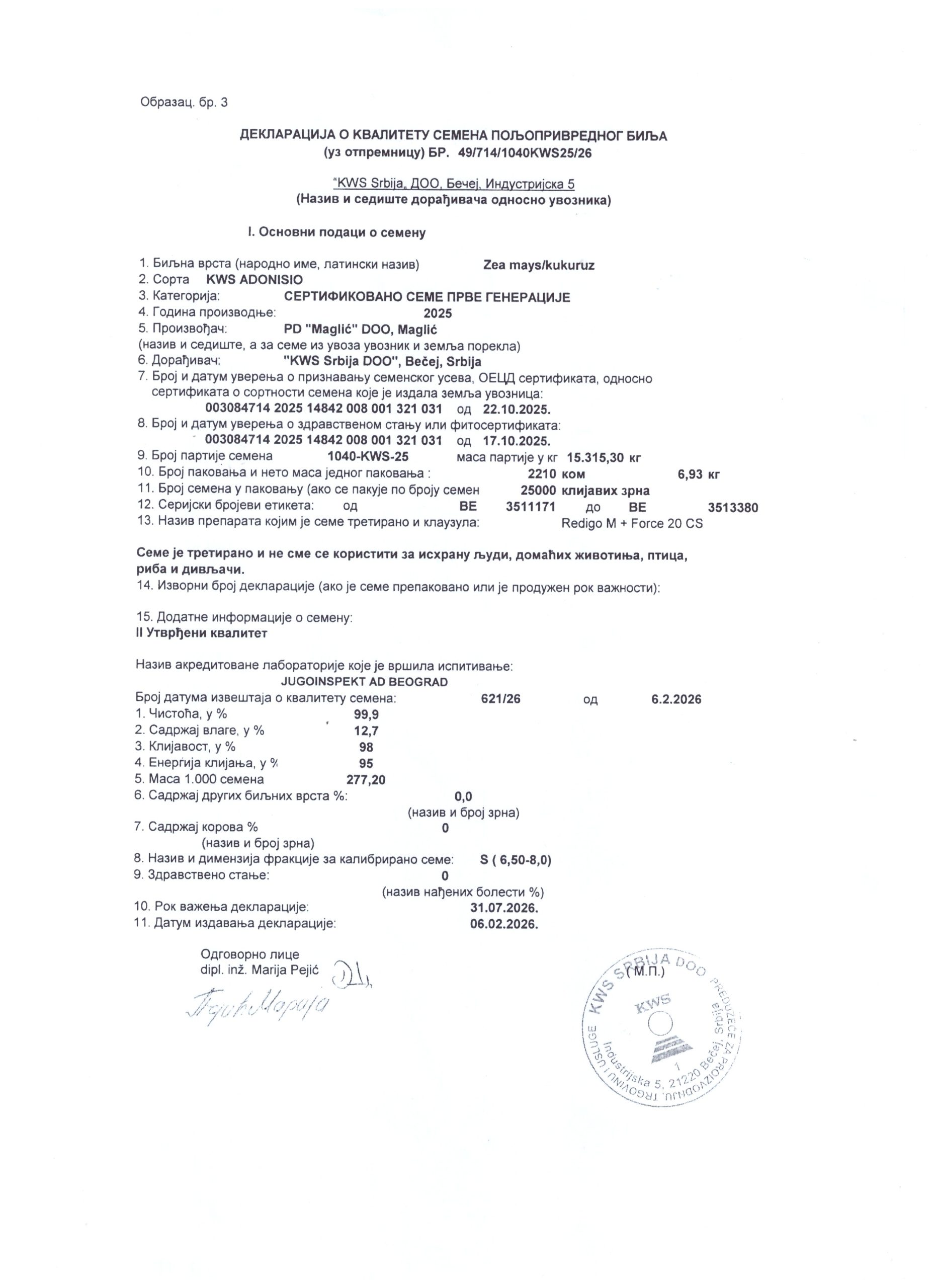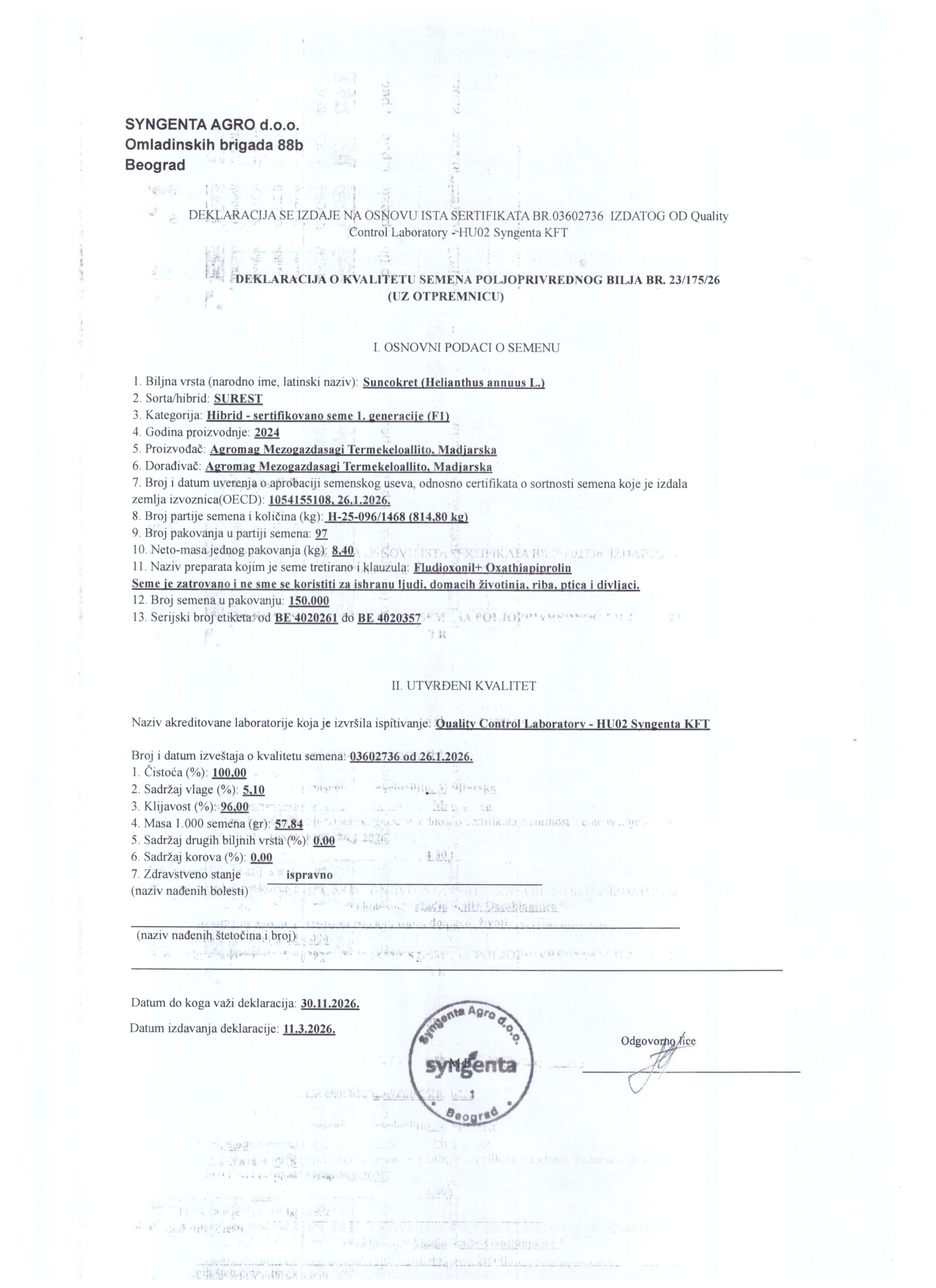 Uvoz i distribucija sredstava za zažštitu bilja kompanije NUFARM GmbH & Co KG, semena kukuruza i semena uljane repice kompanije MONSANTO INTERNATIONAL SARL.