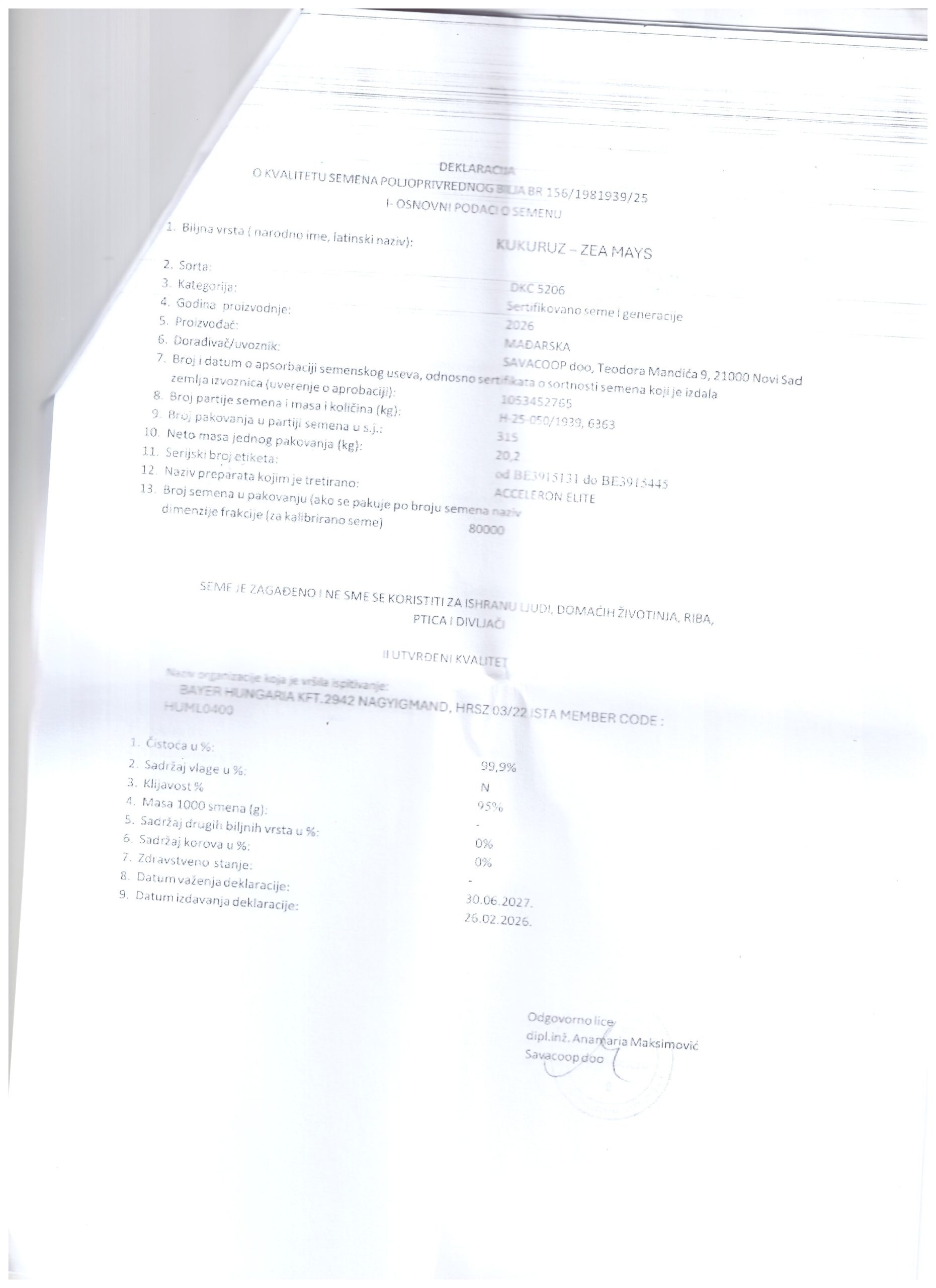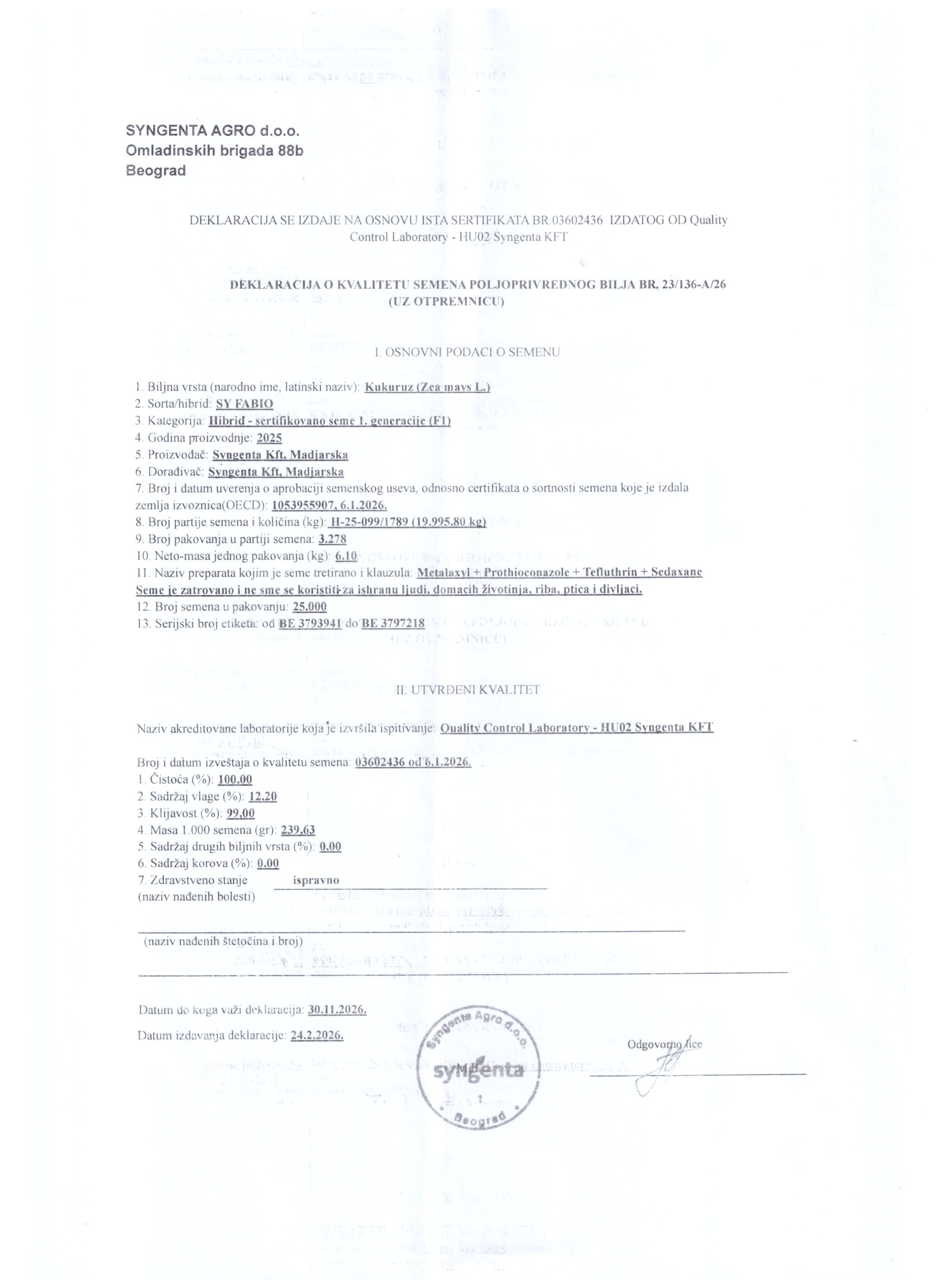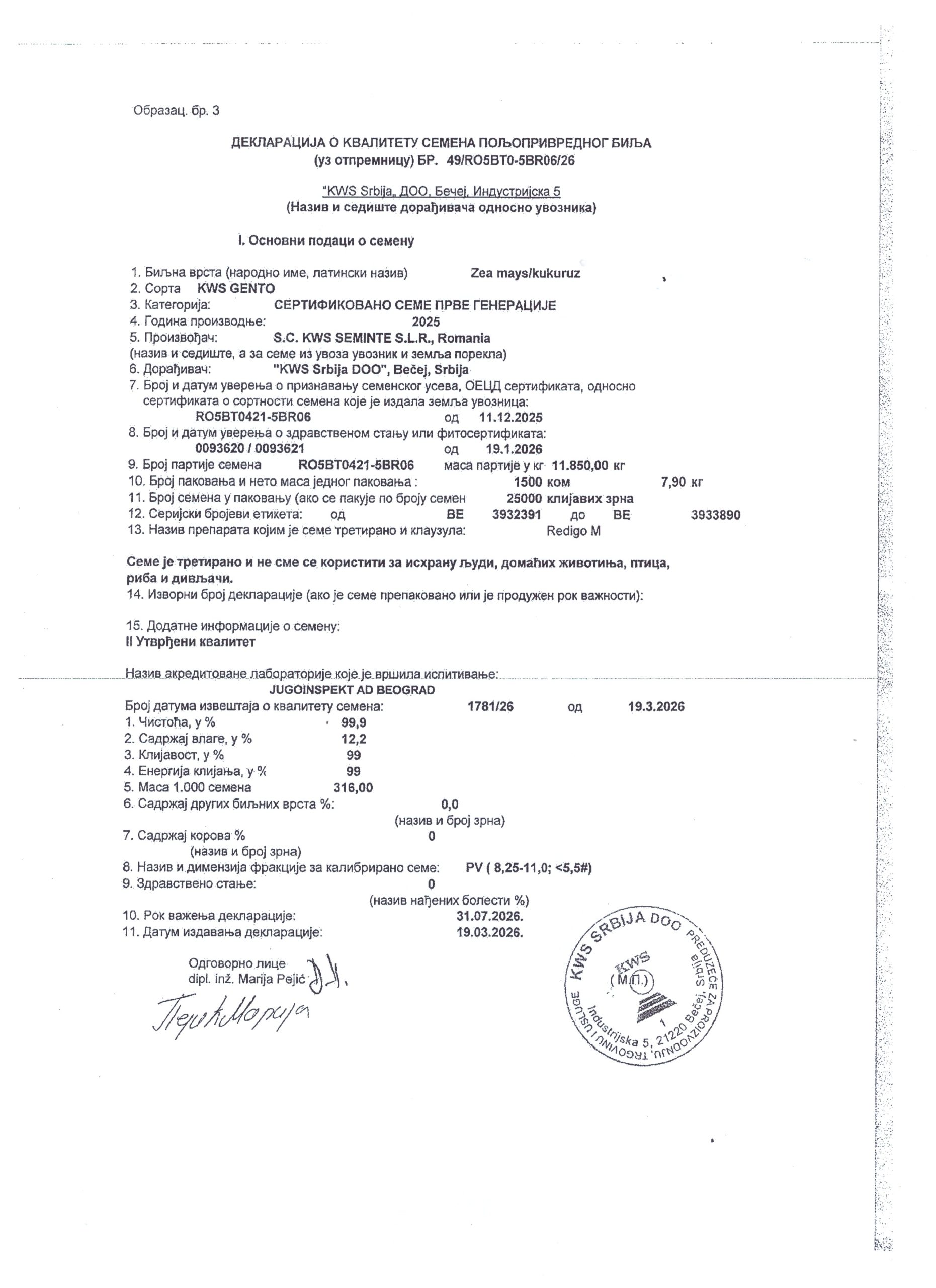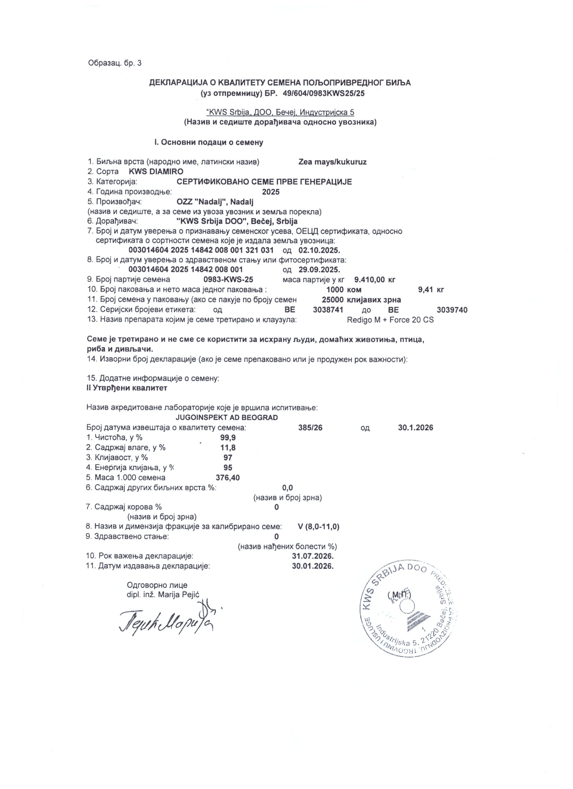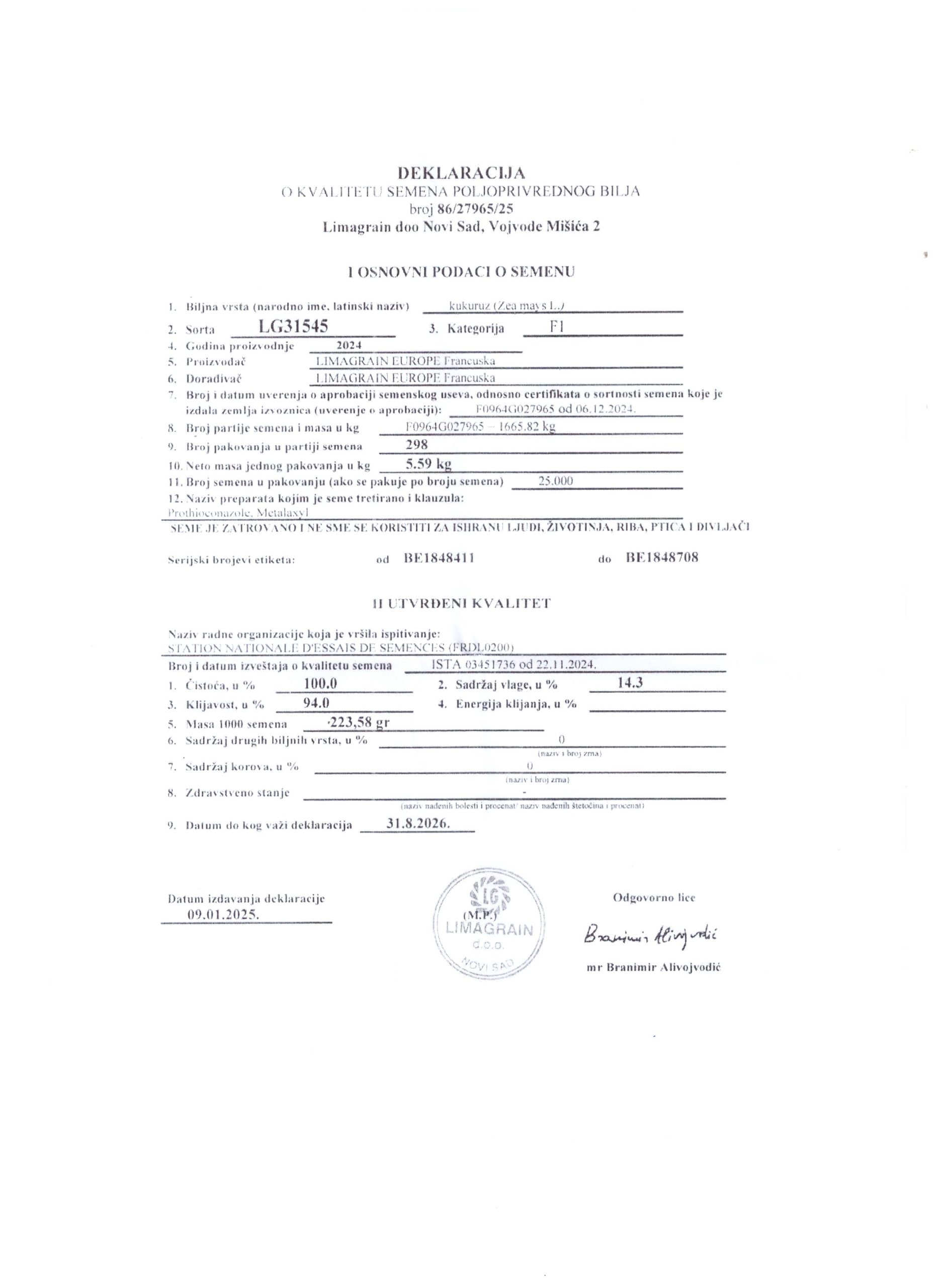 Uvoz i distribucija sredstava za zažštitu bilja kompanije NUFARM GmbH & Co KG, semena kukuruza i semena uljane repice kompanije MONSANTO INTERNATIONAL SARL.