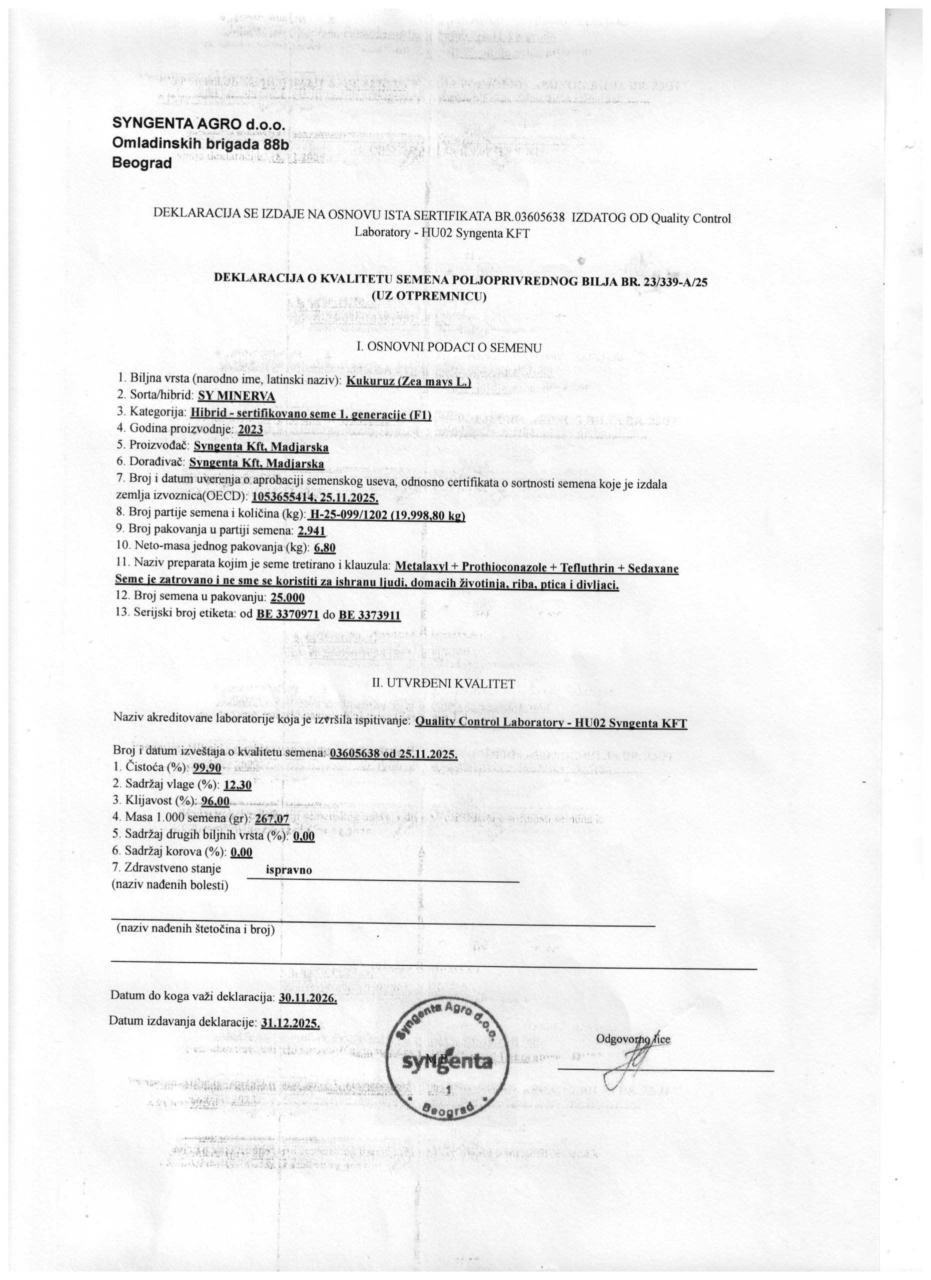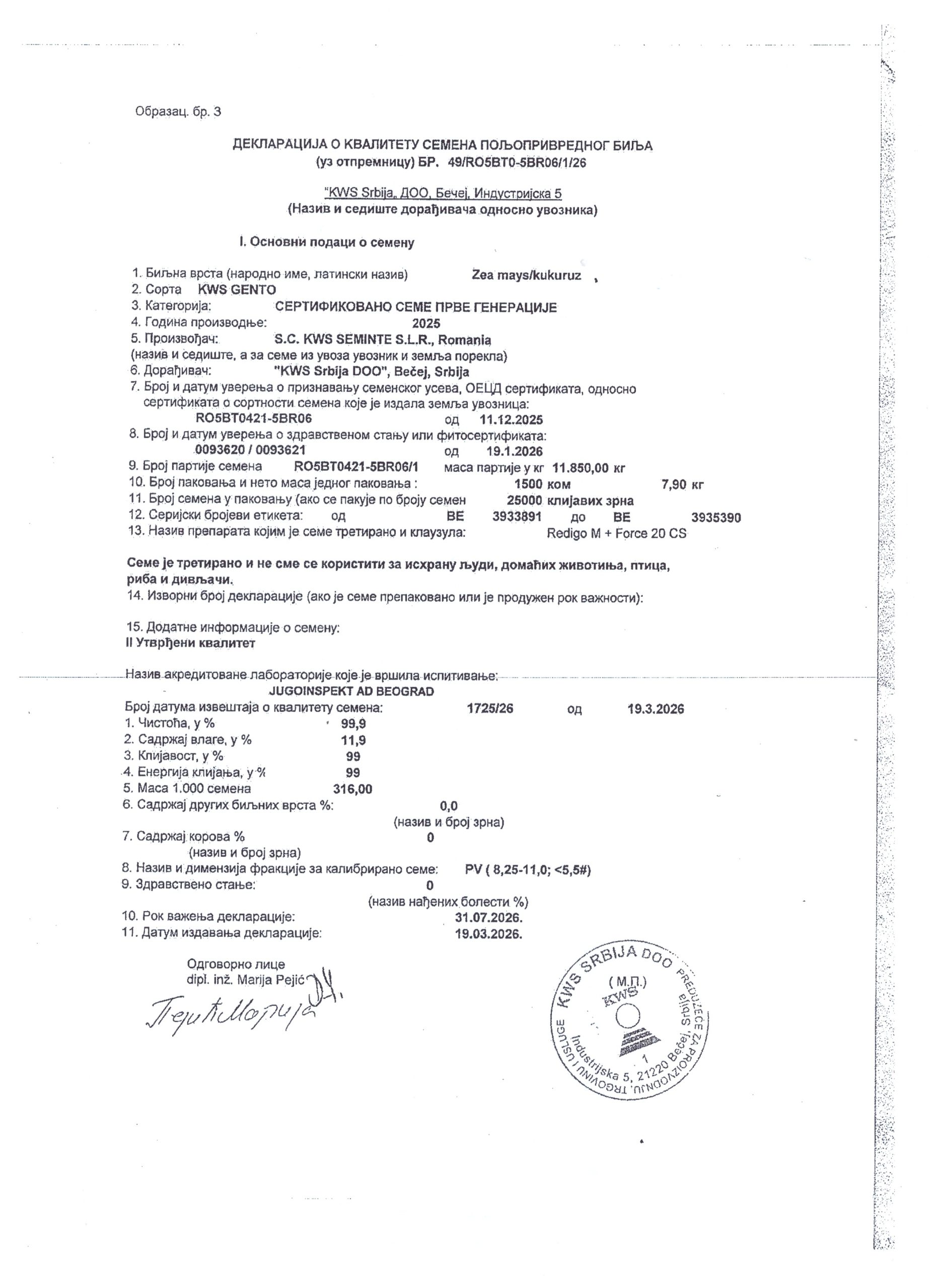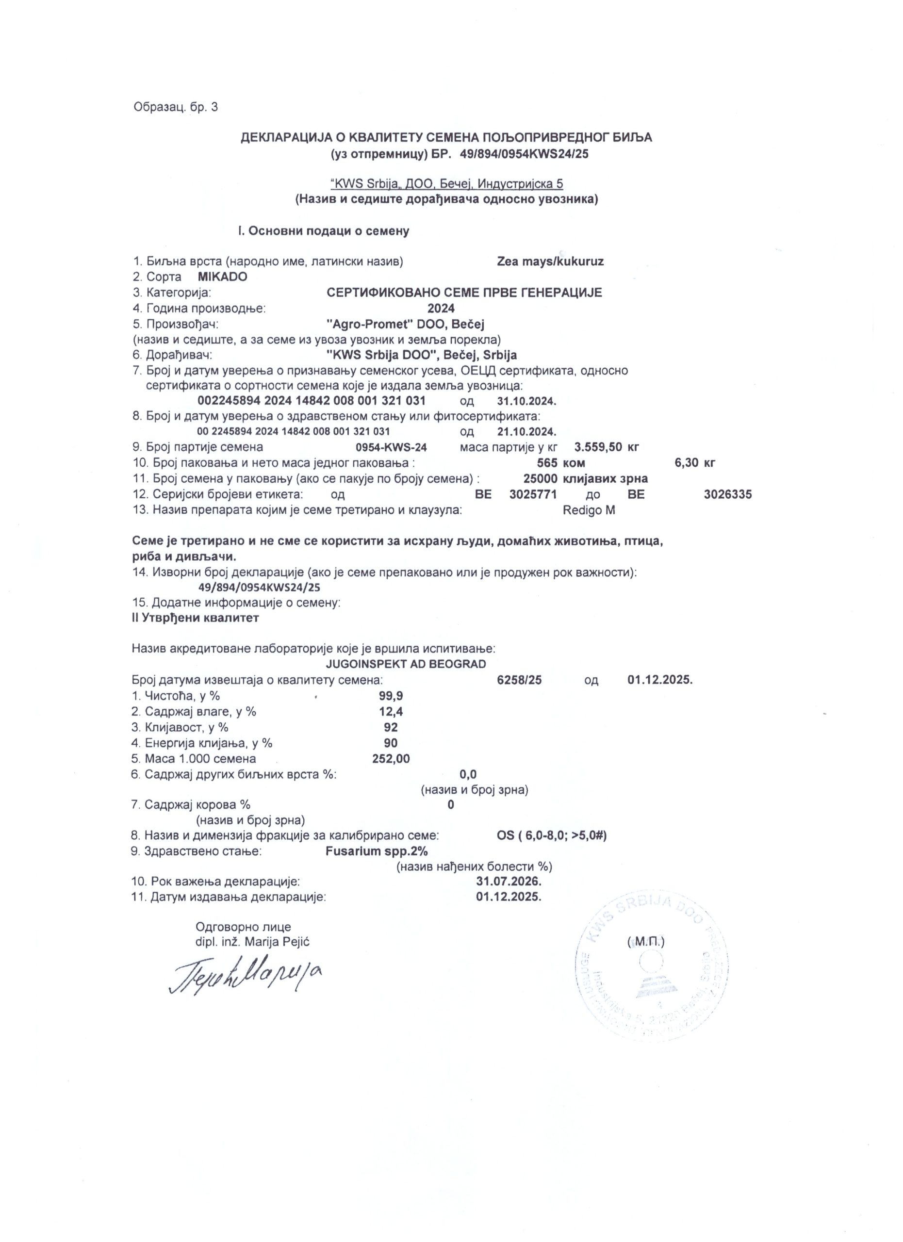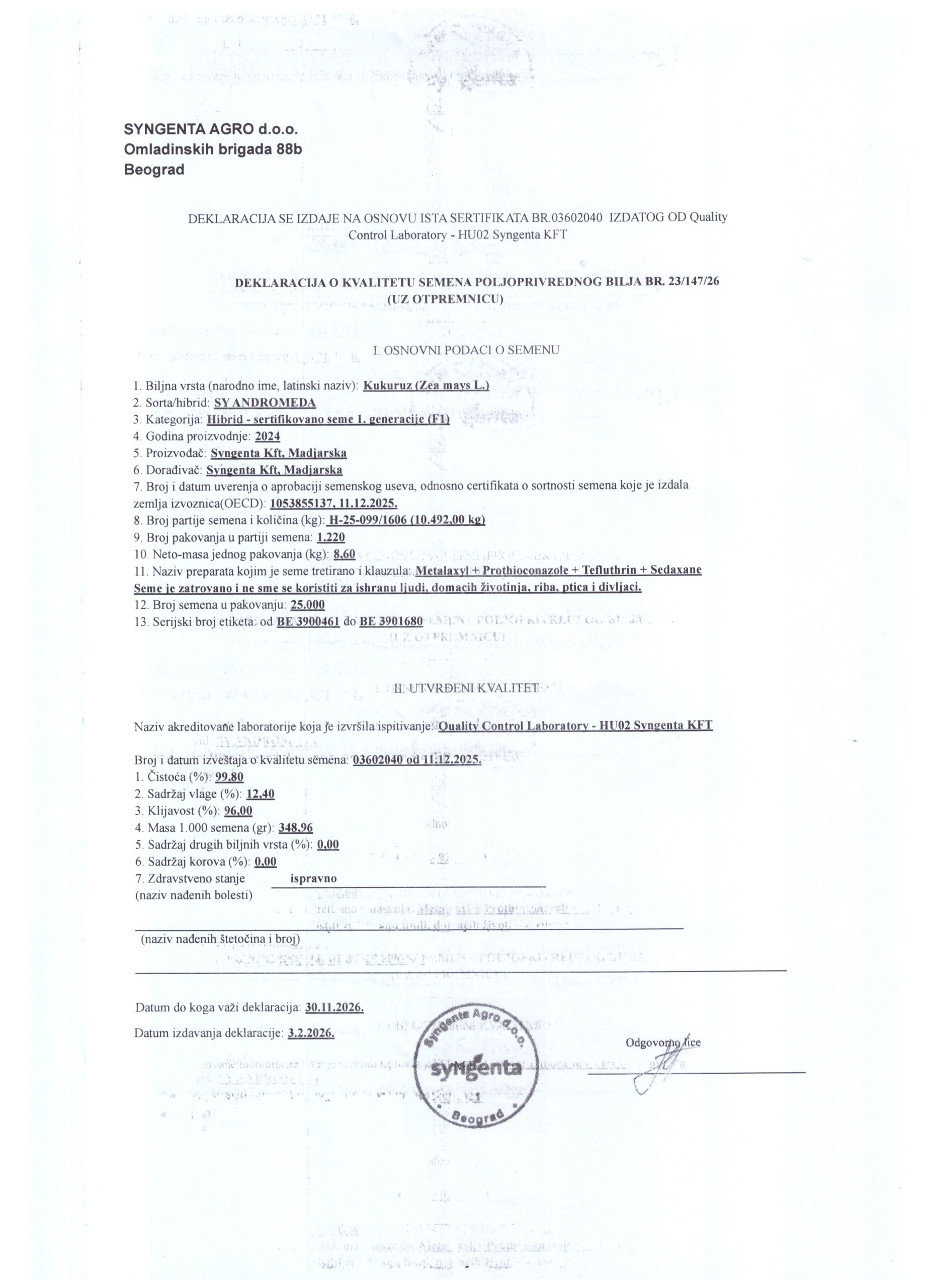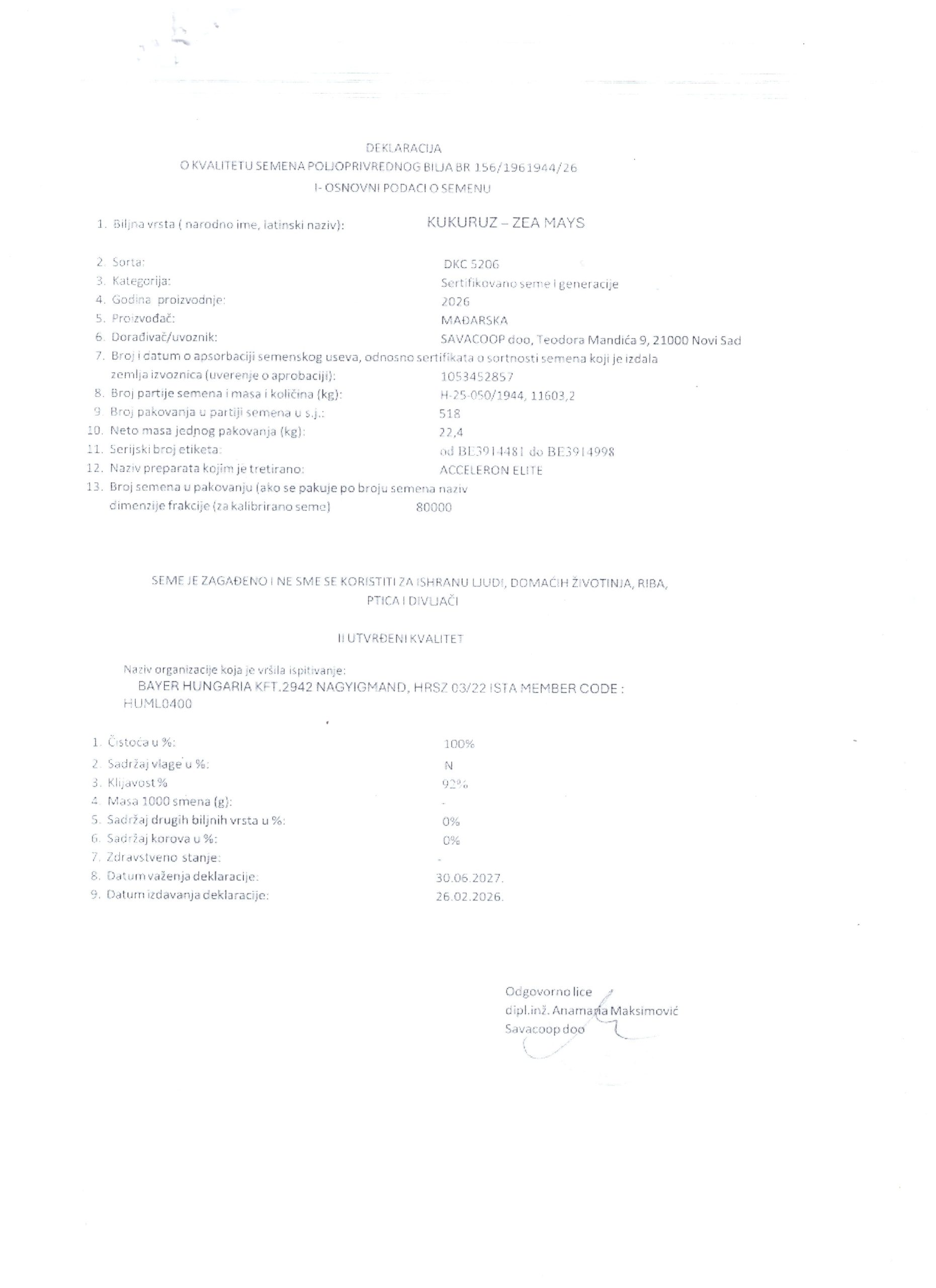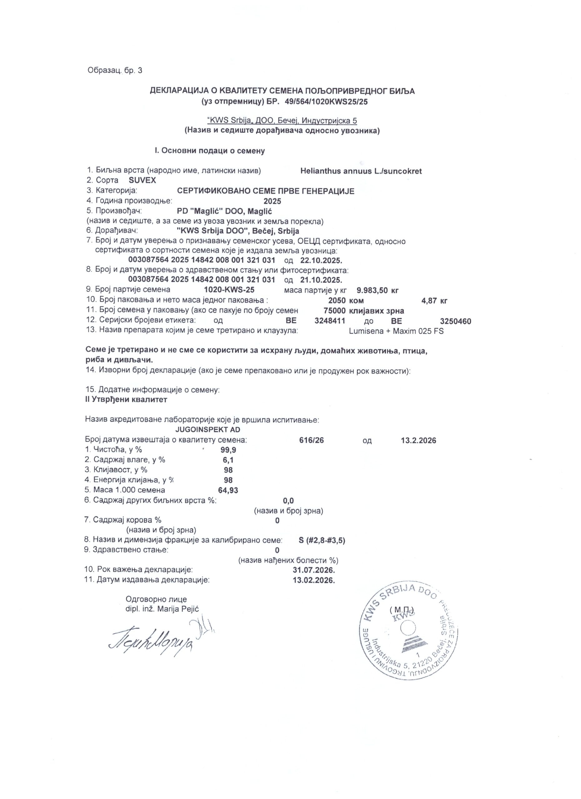 Uvoz i distribucija sredstava za zažštitu bilja kompanije NUFARM GmbH & Co KG, semena kukuruza i semena uljane repice kompanije MONSANTO INTERNATIONAL SARL.