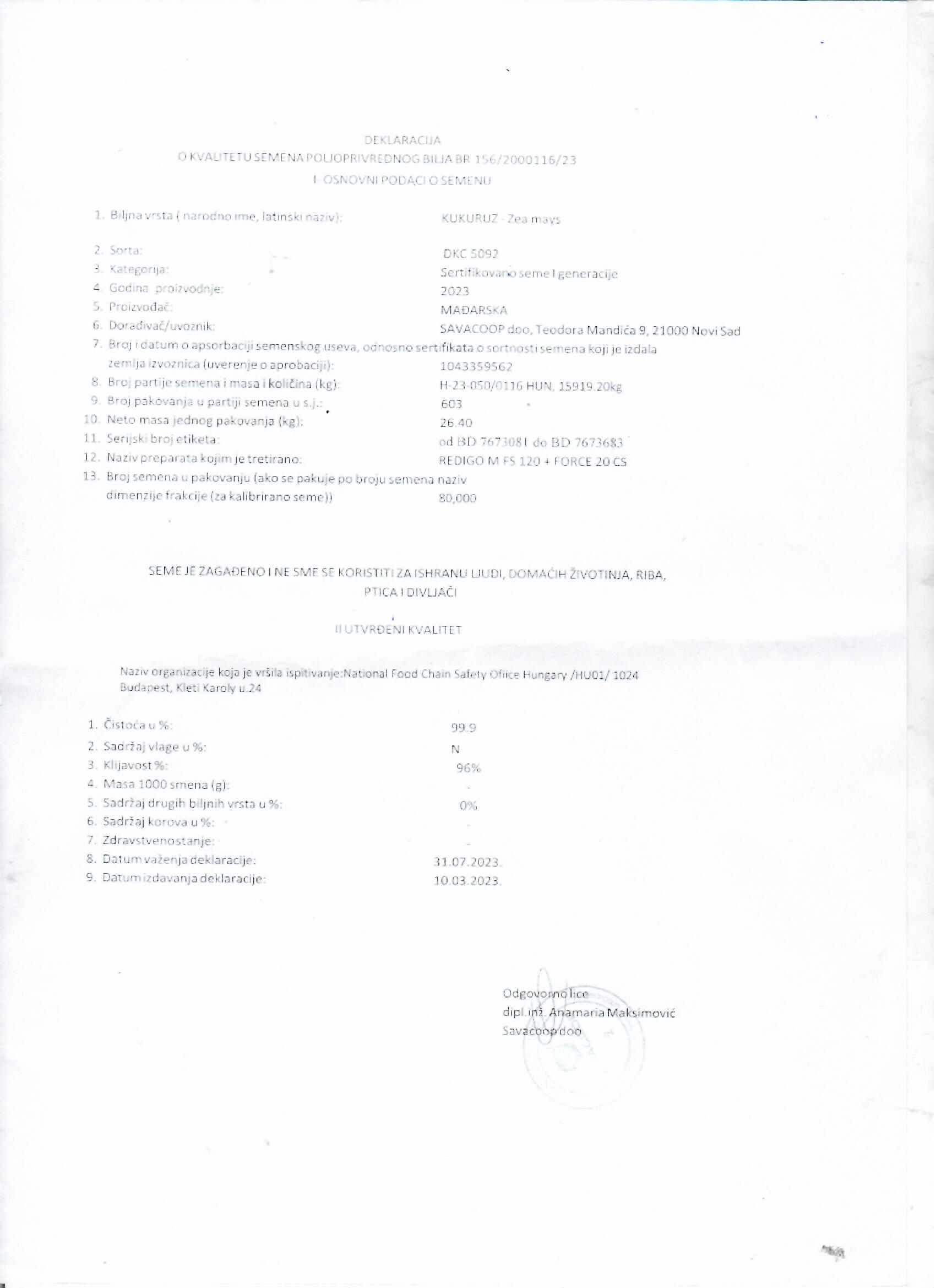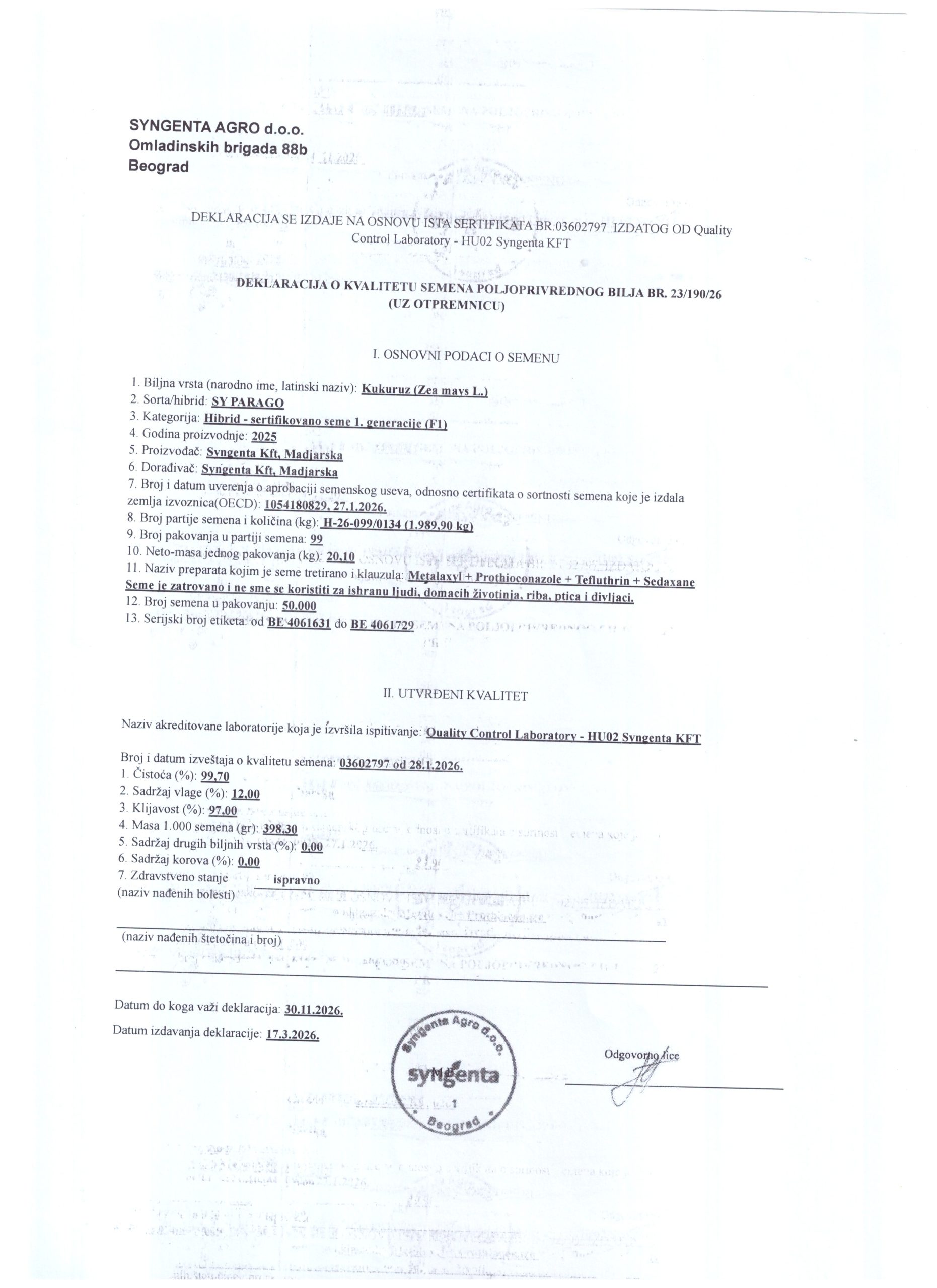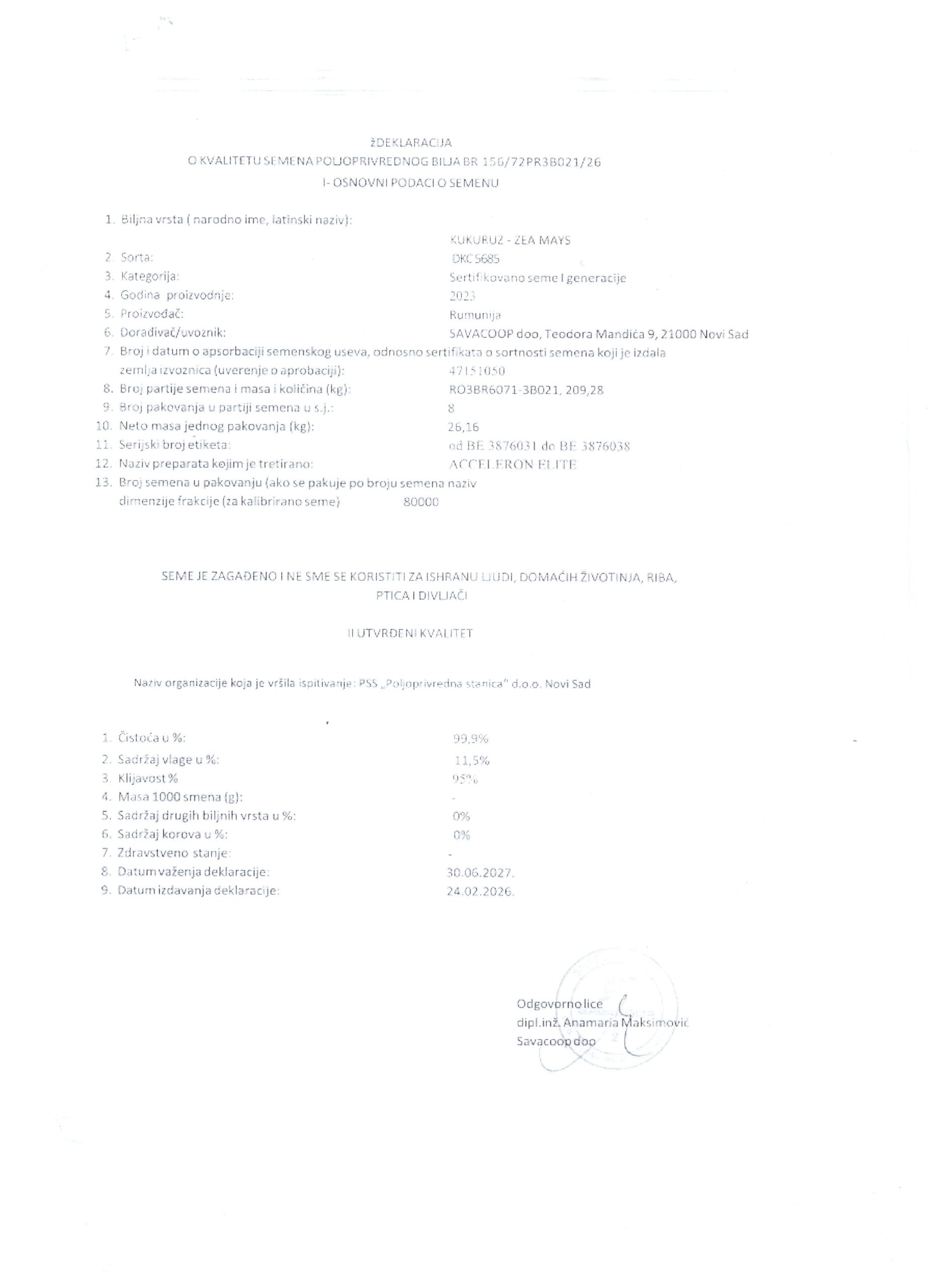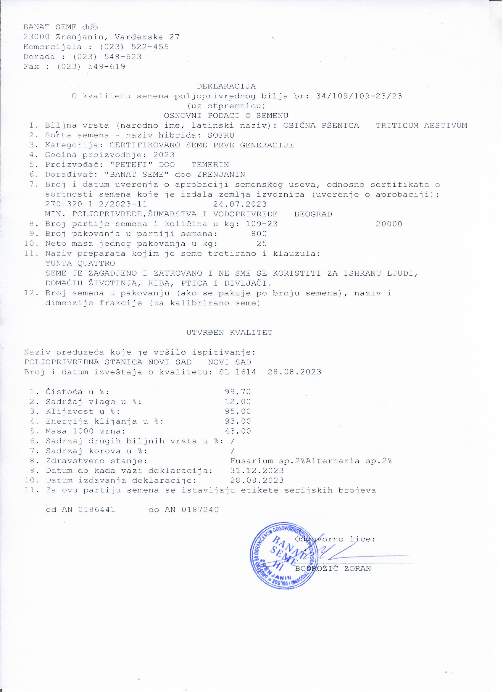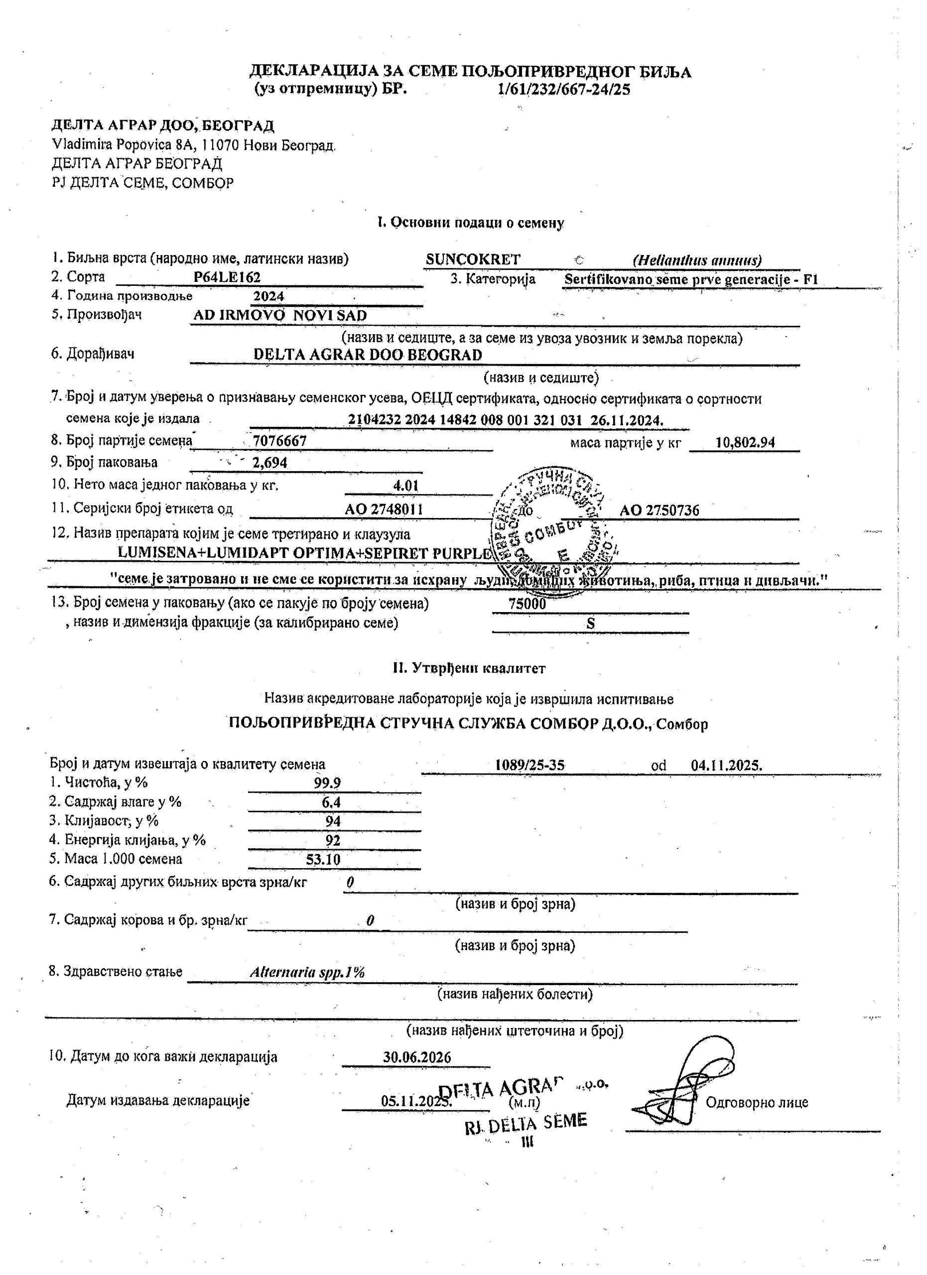 Uvoz i distribucija sredstava za zažštitu bilja kompanije NUFARM GmbH & Co KG, semena kukuruza i semena uljane repice kompanije MONSANTO INTERNATIONAL SARL.