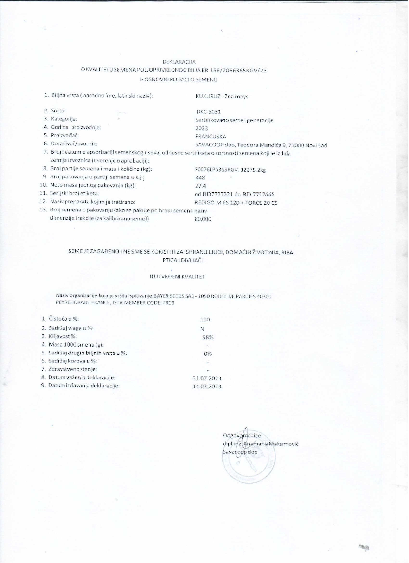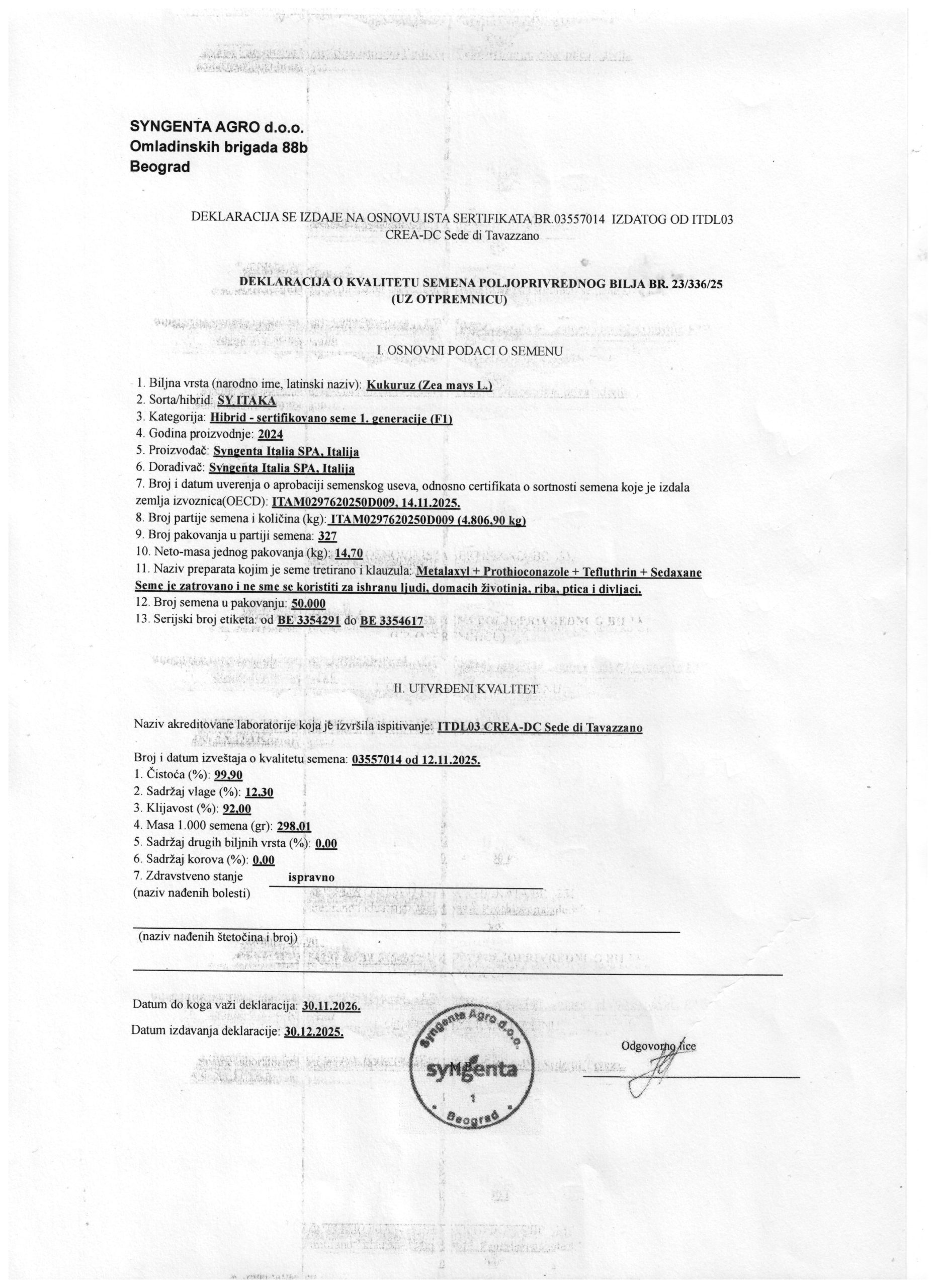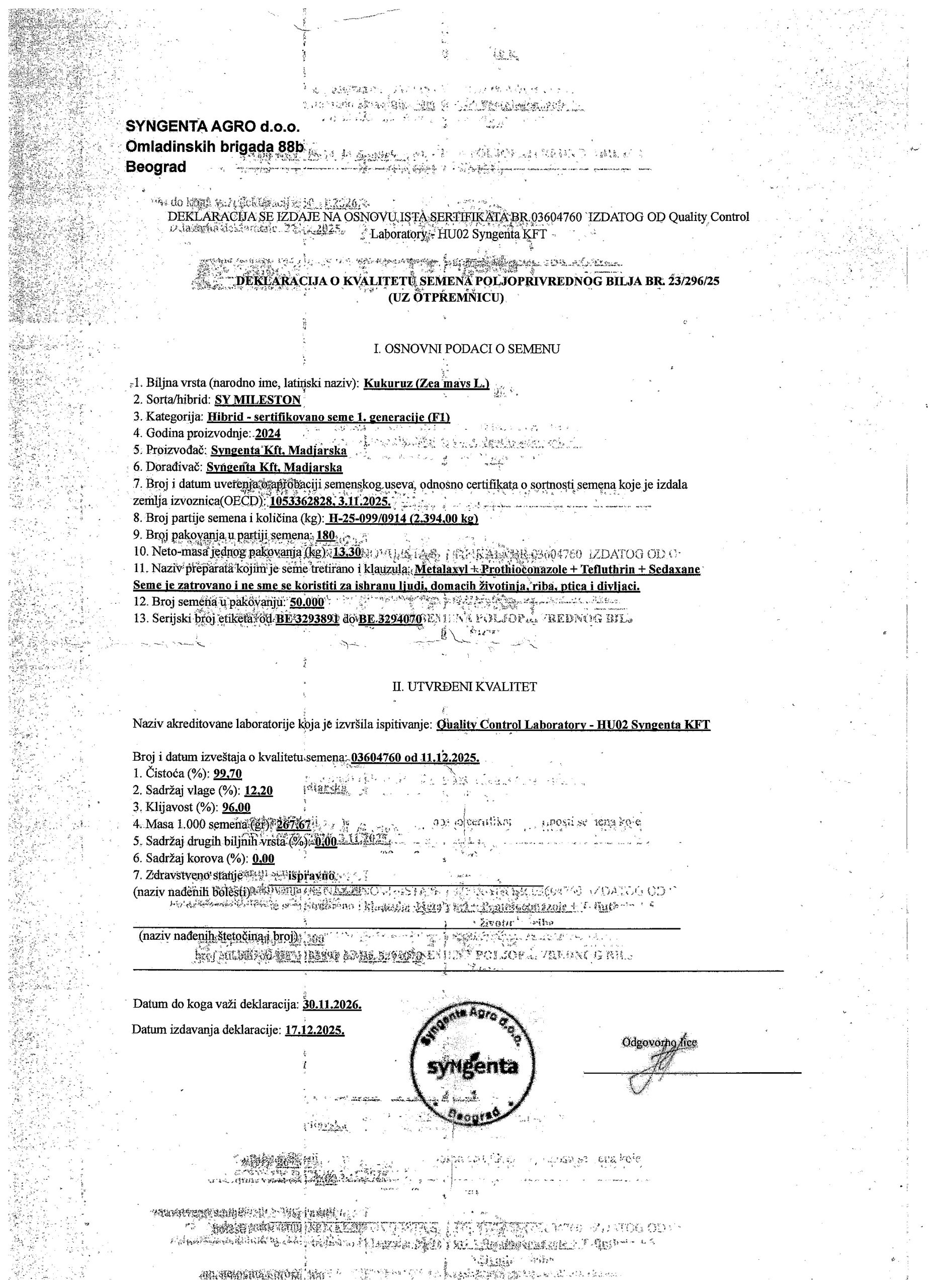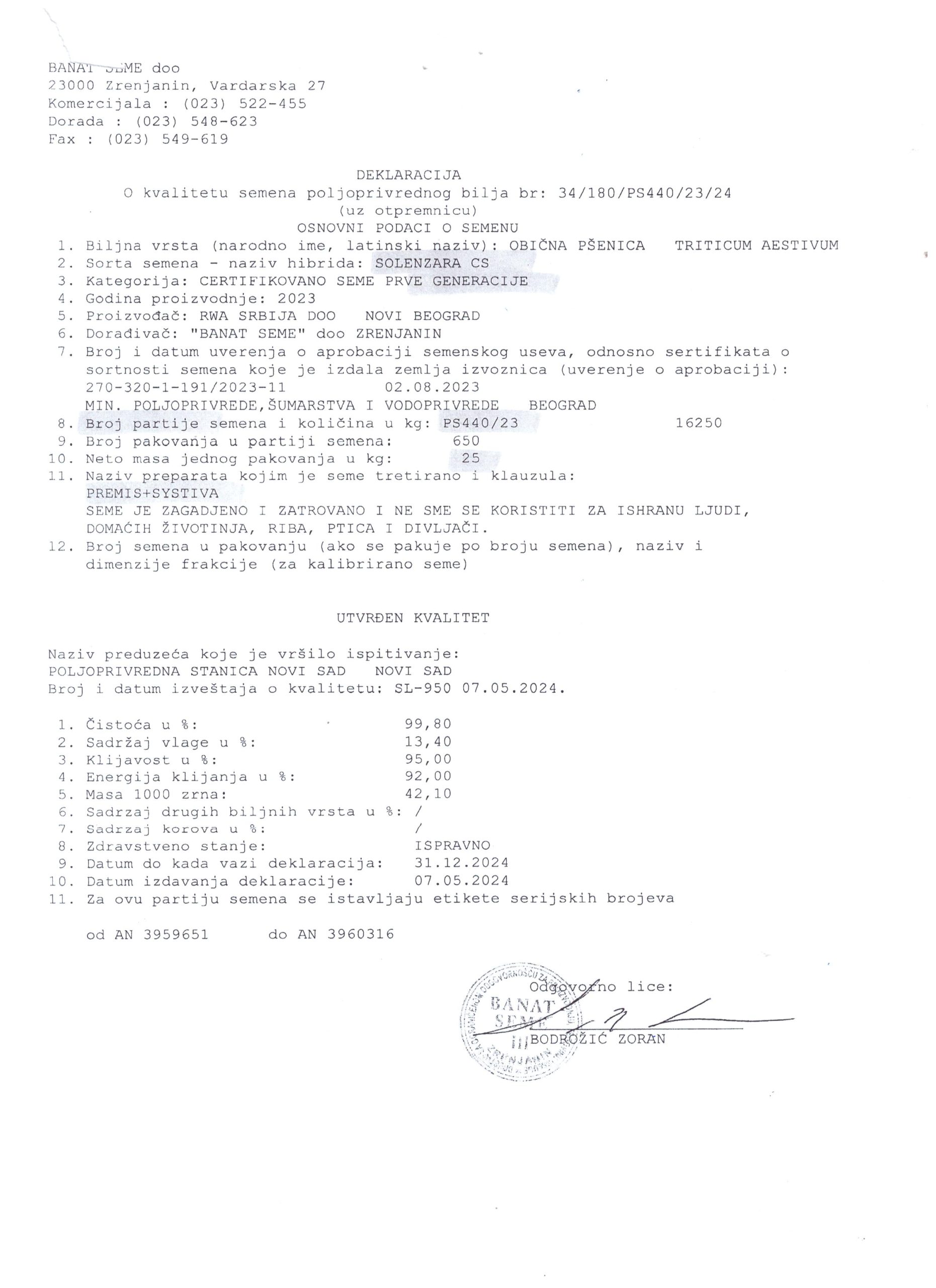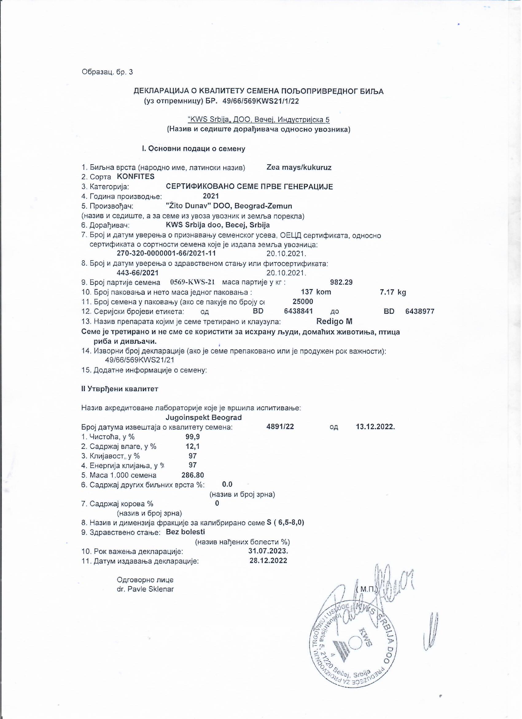 Uvoz i distribucija sredstava za zažštitu bilja kompanije NUFARM GmbH & Co KG, semena kukuruza i semena uljane repice kompanije MONSANTO INTERNATIONAL SARL.