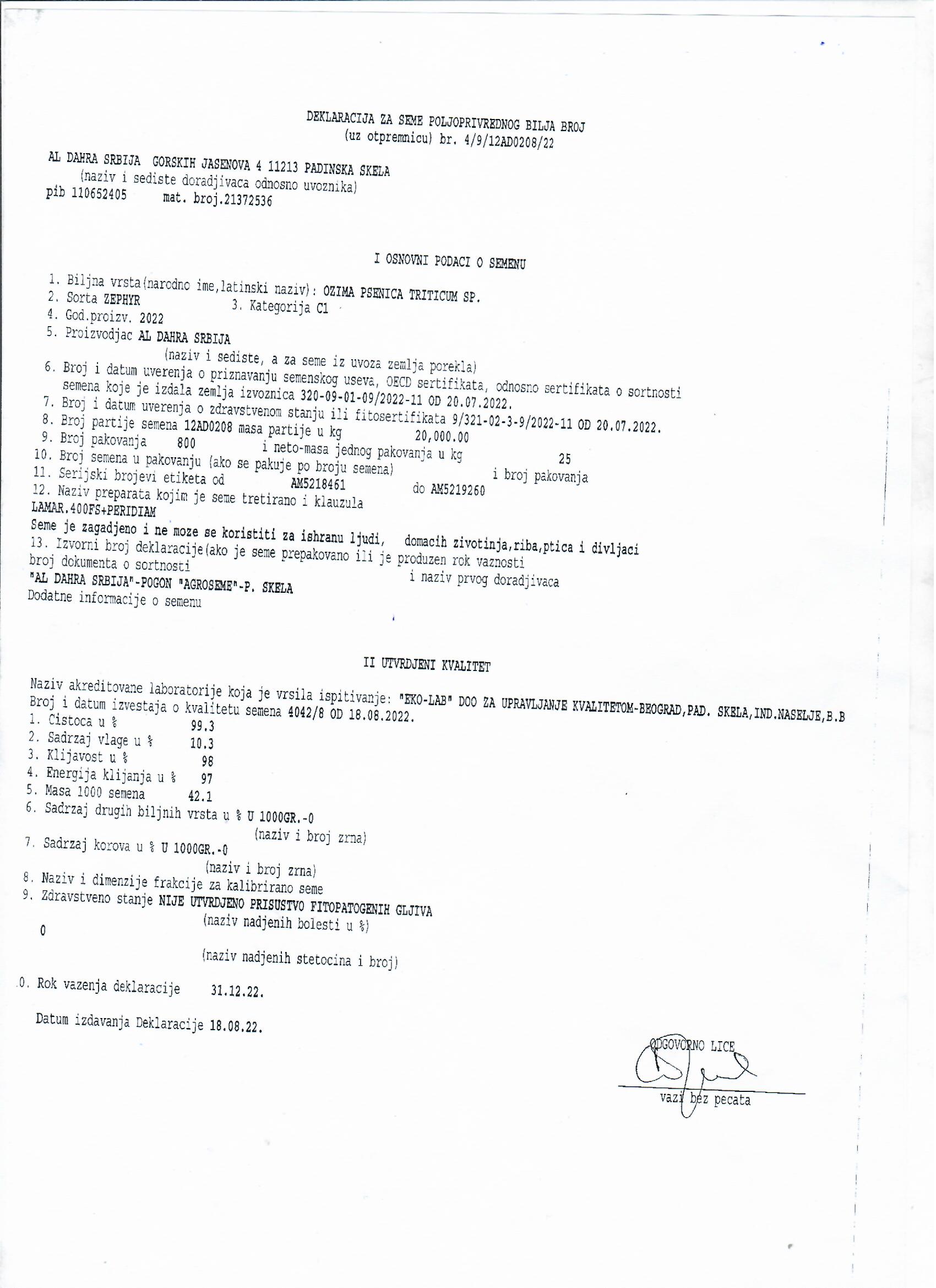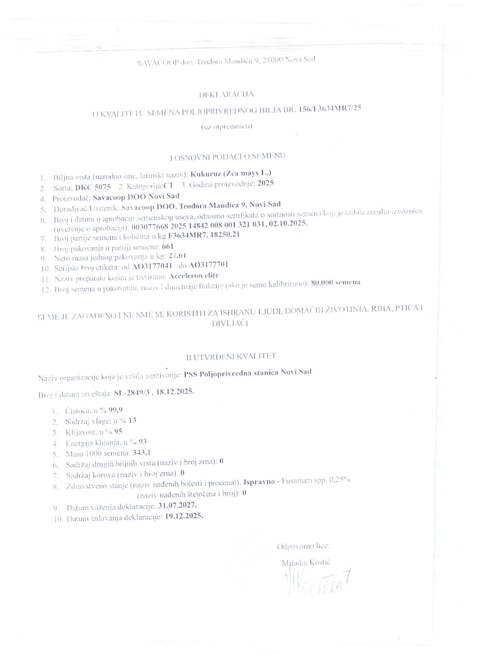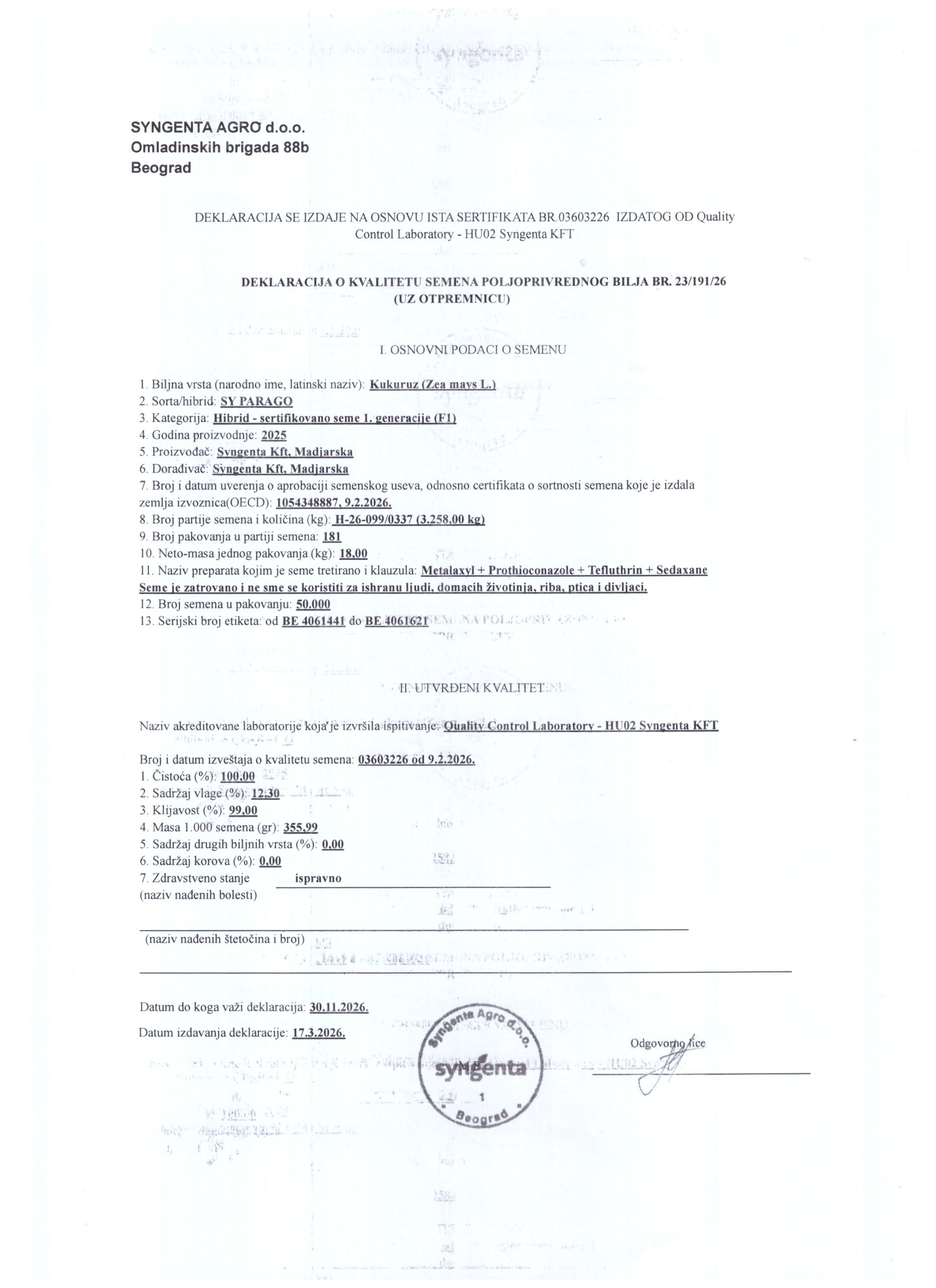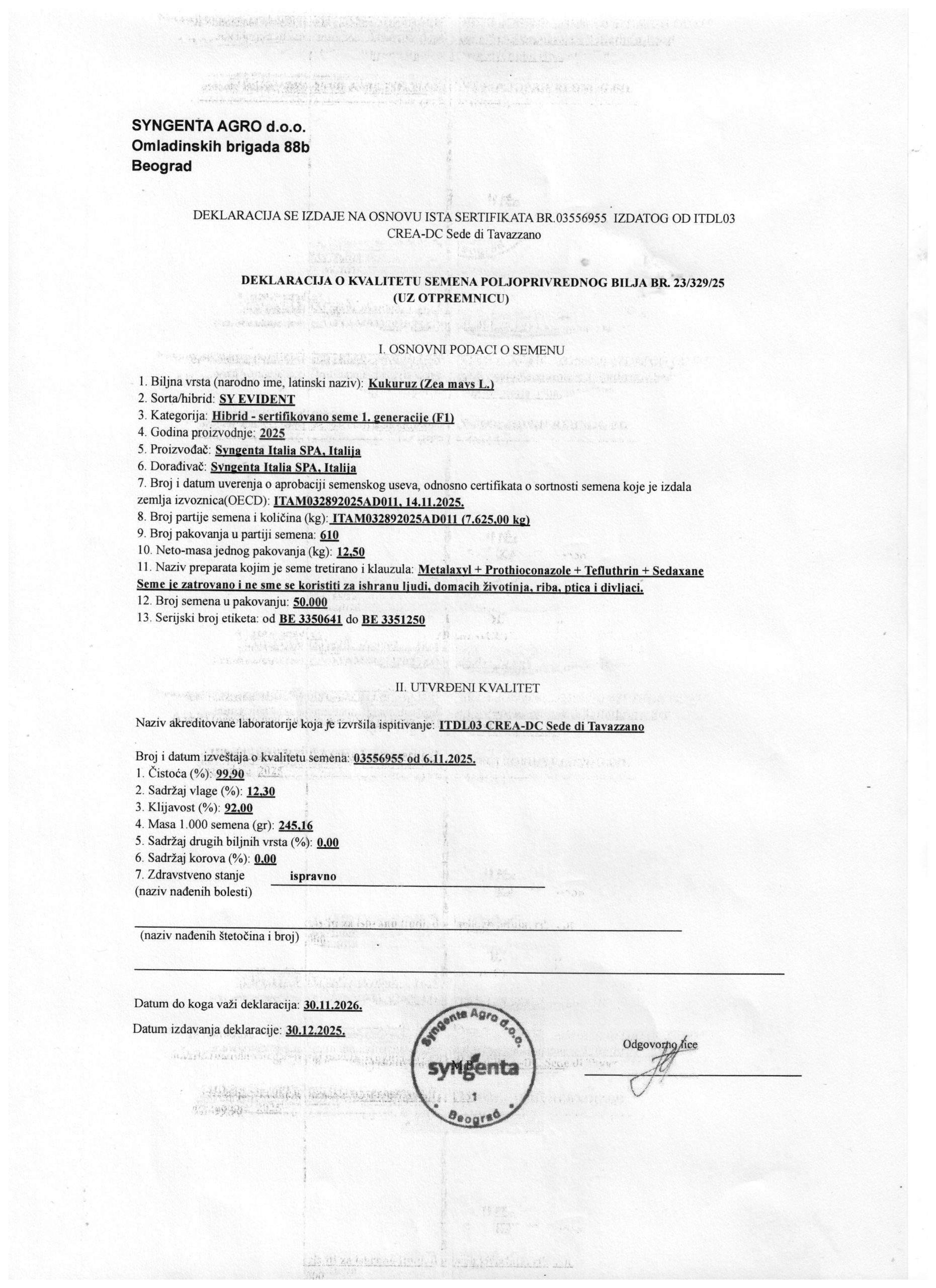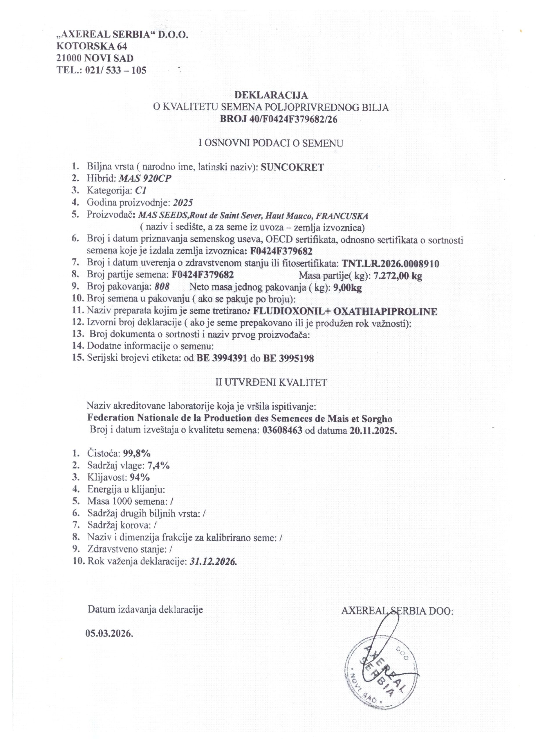 Uvoz i distribucija sredstava za zažštitu bilja kompanije NUFARM GmbH & Co KG, semena kukuruza i semena uljane repice kompanije MONSANTO INTERNATIONAL SARL.