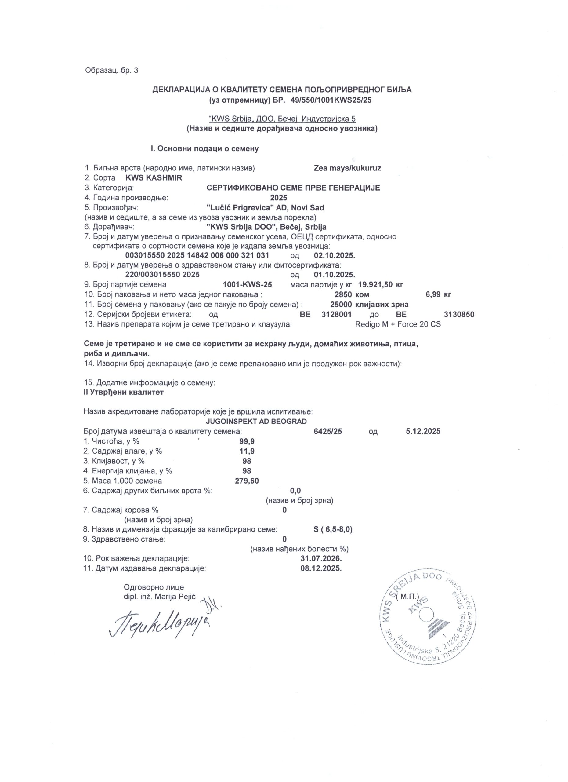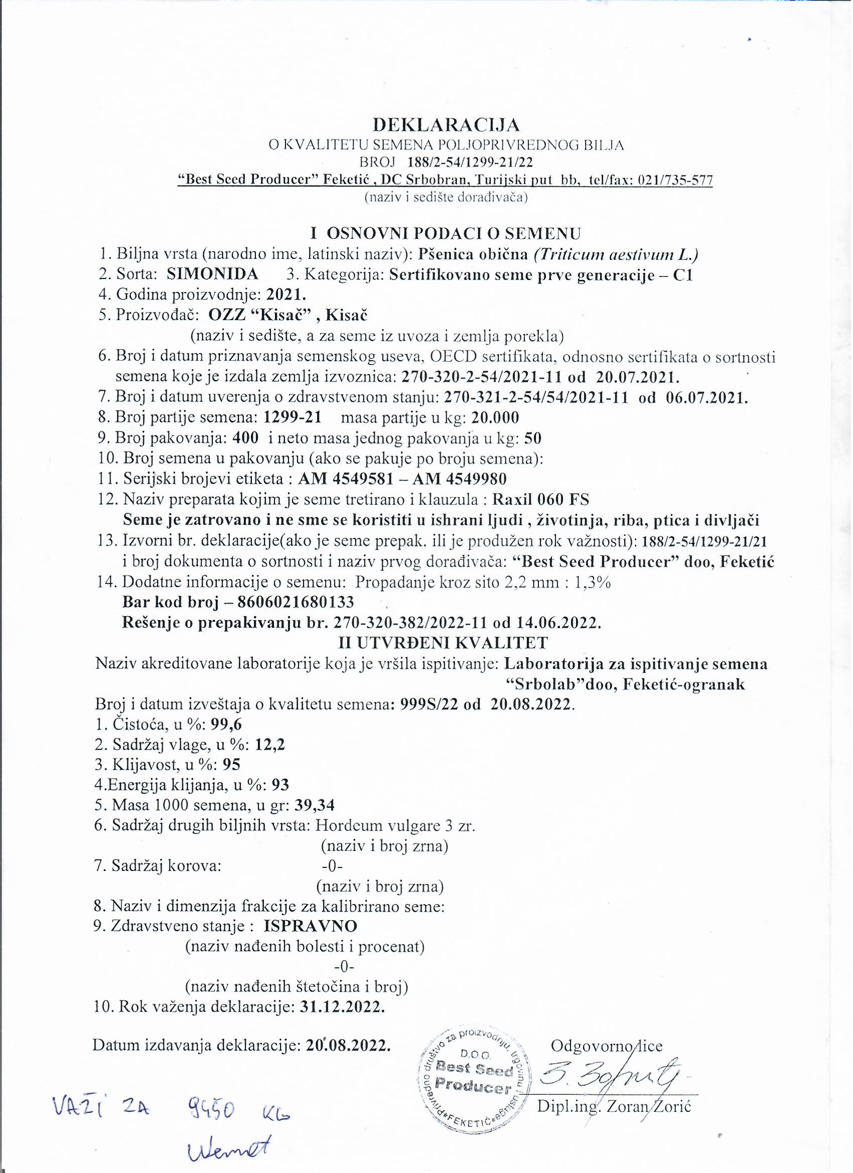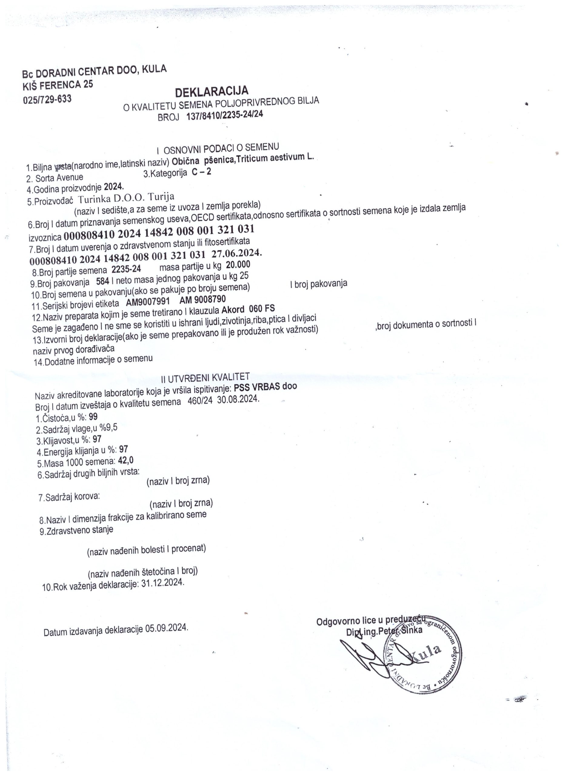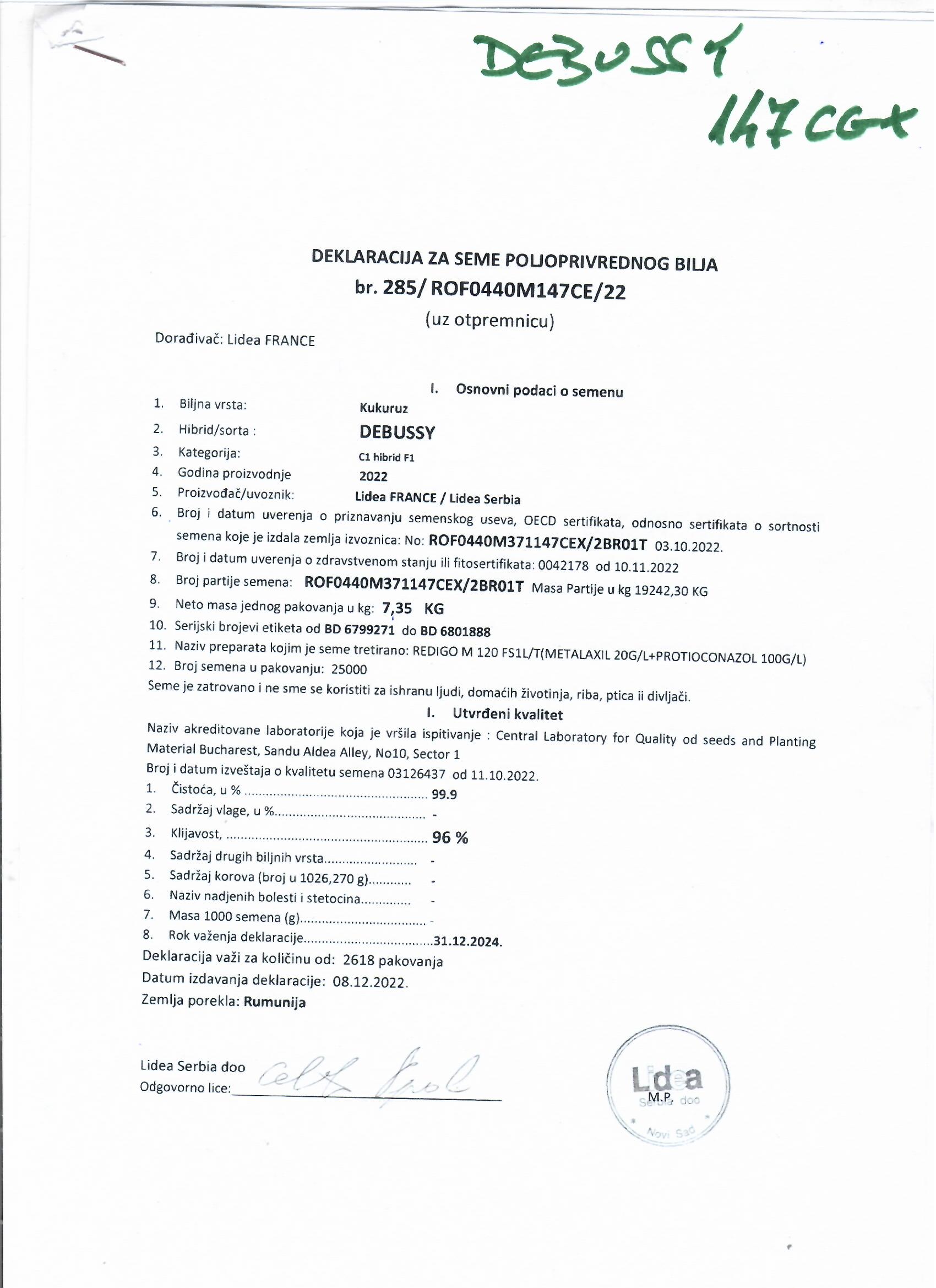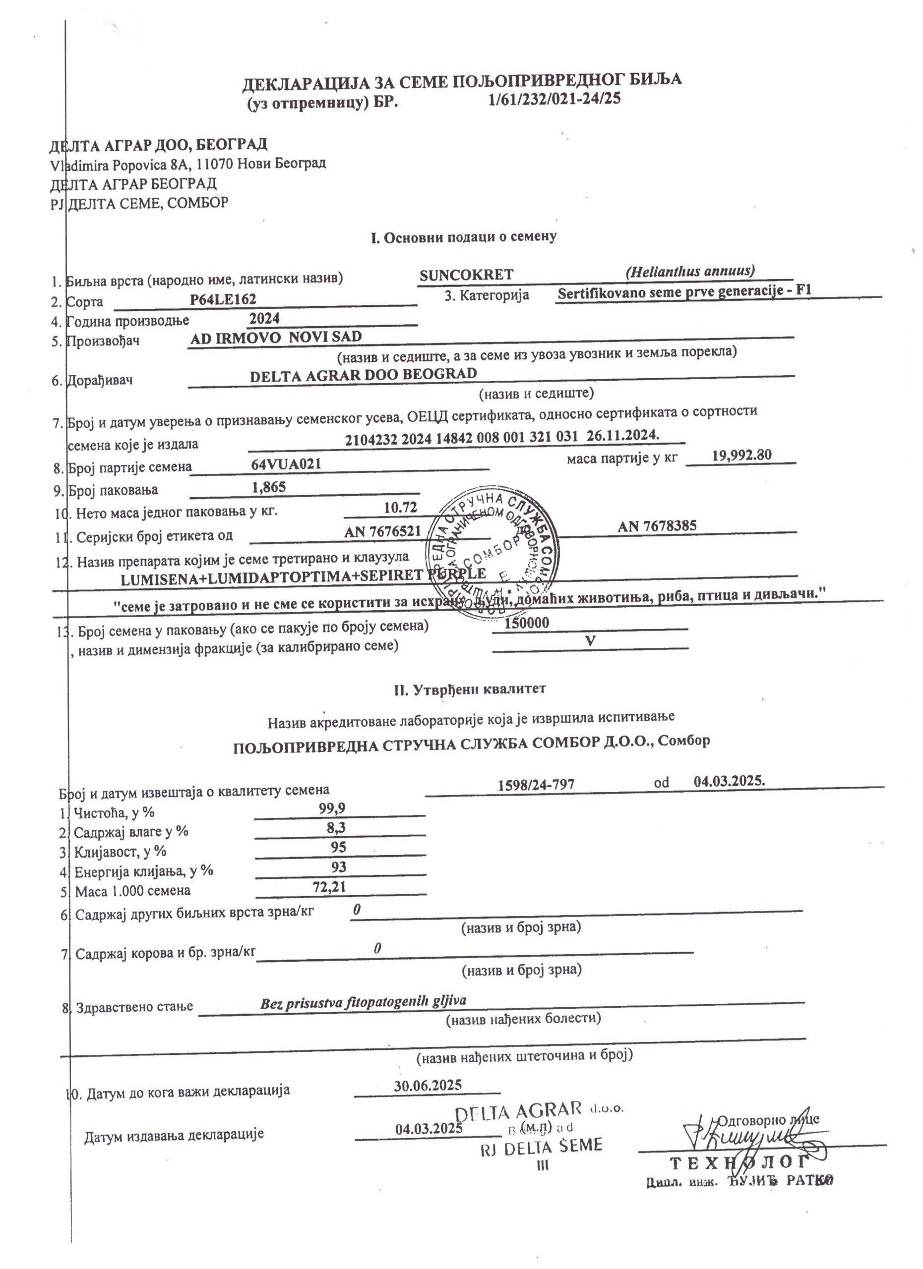 Uvoz i distribucija sredstava za zažštitu bilja kompanije NUFARM GmbH & Co KG, semena kukuruza i semena uljane repice kompanije MONSANTO INTERNATIONAL SARL.