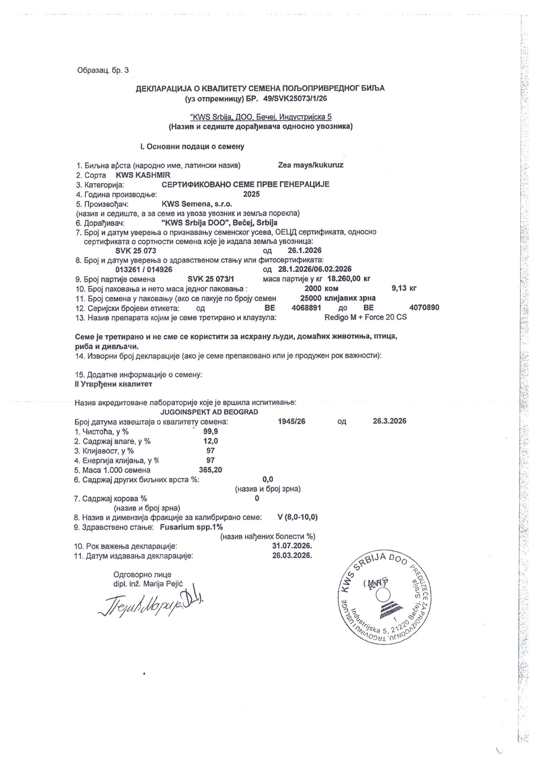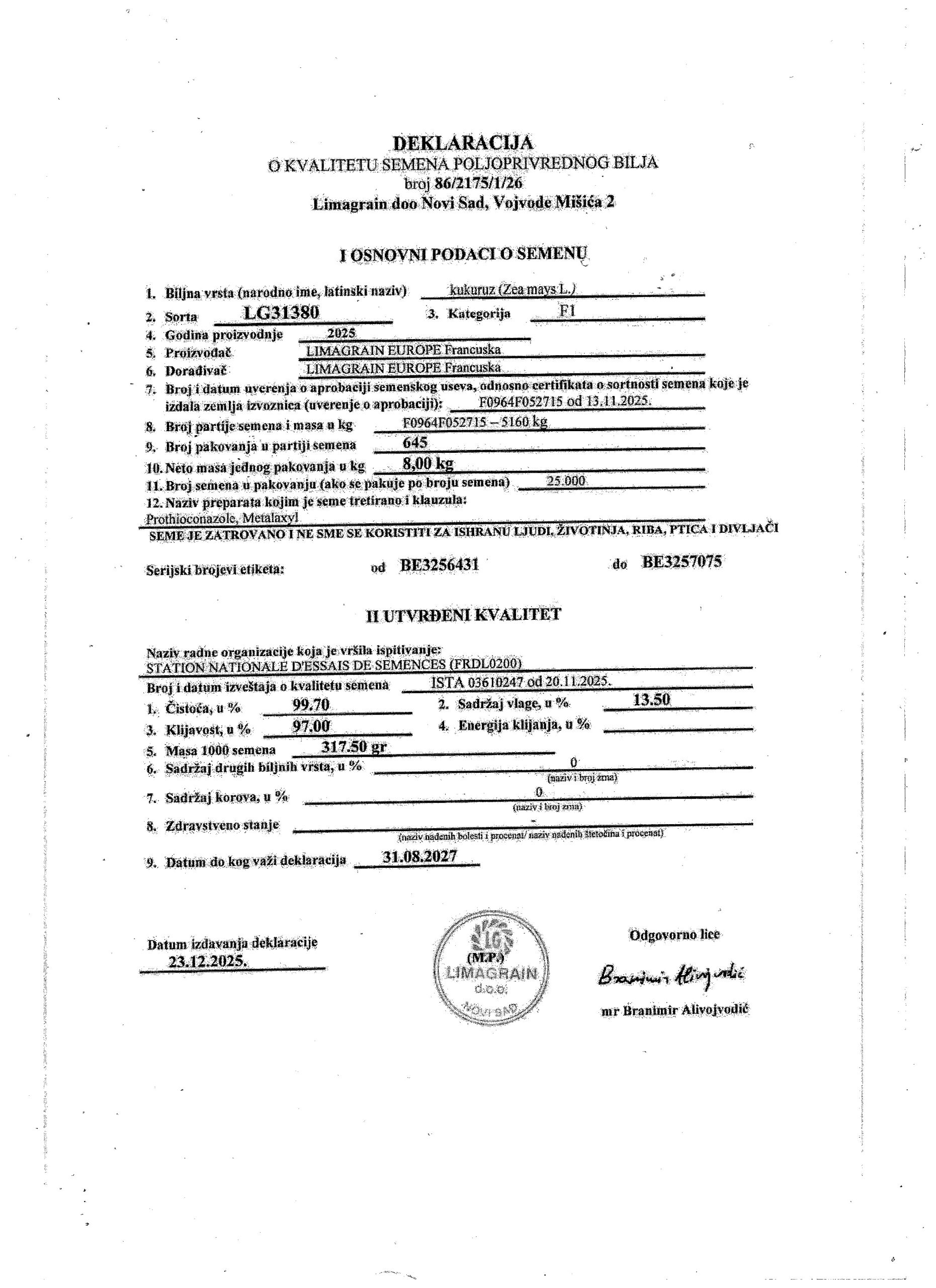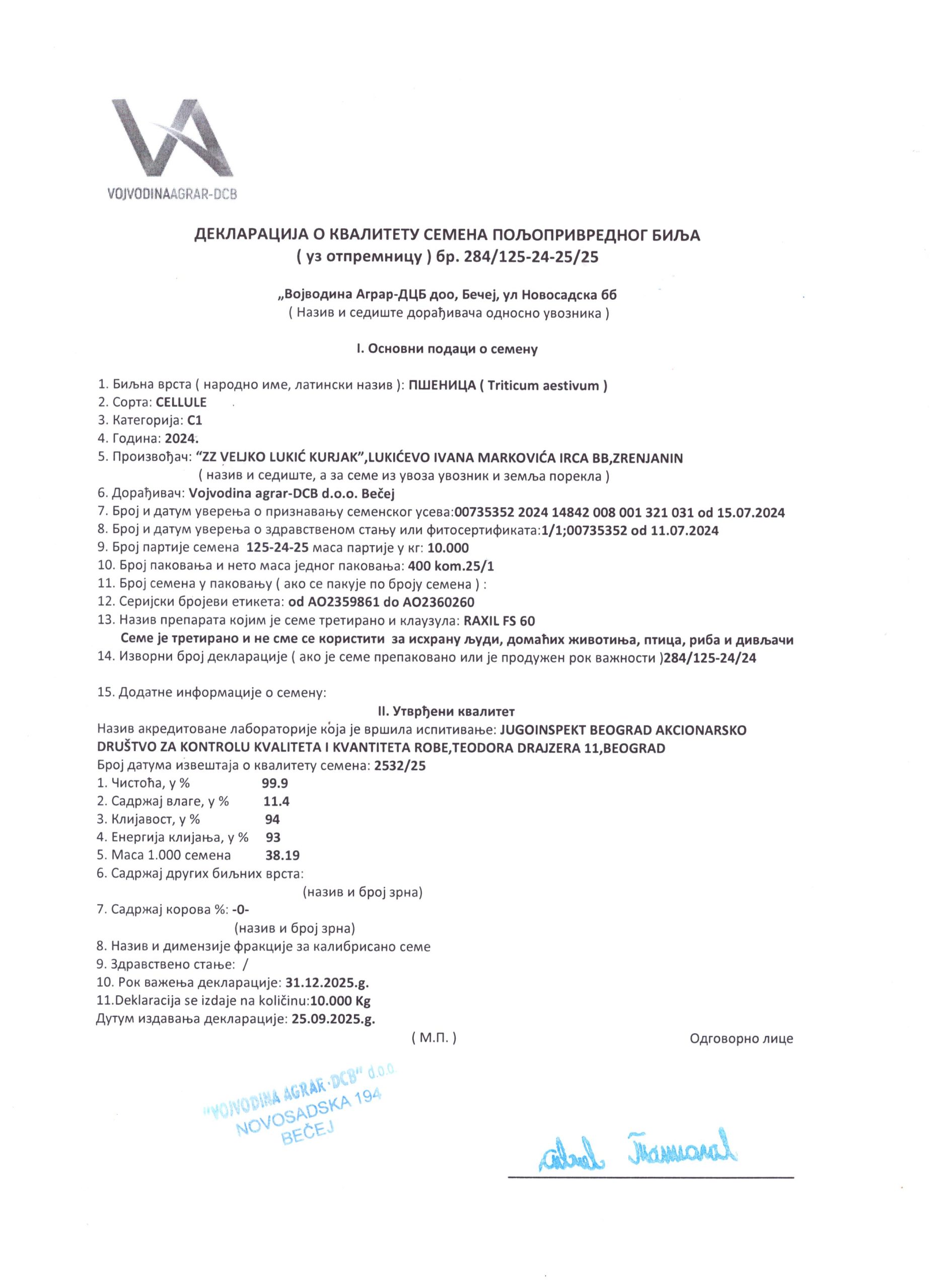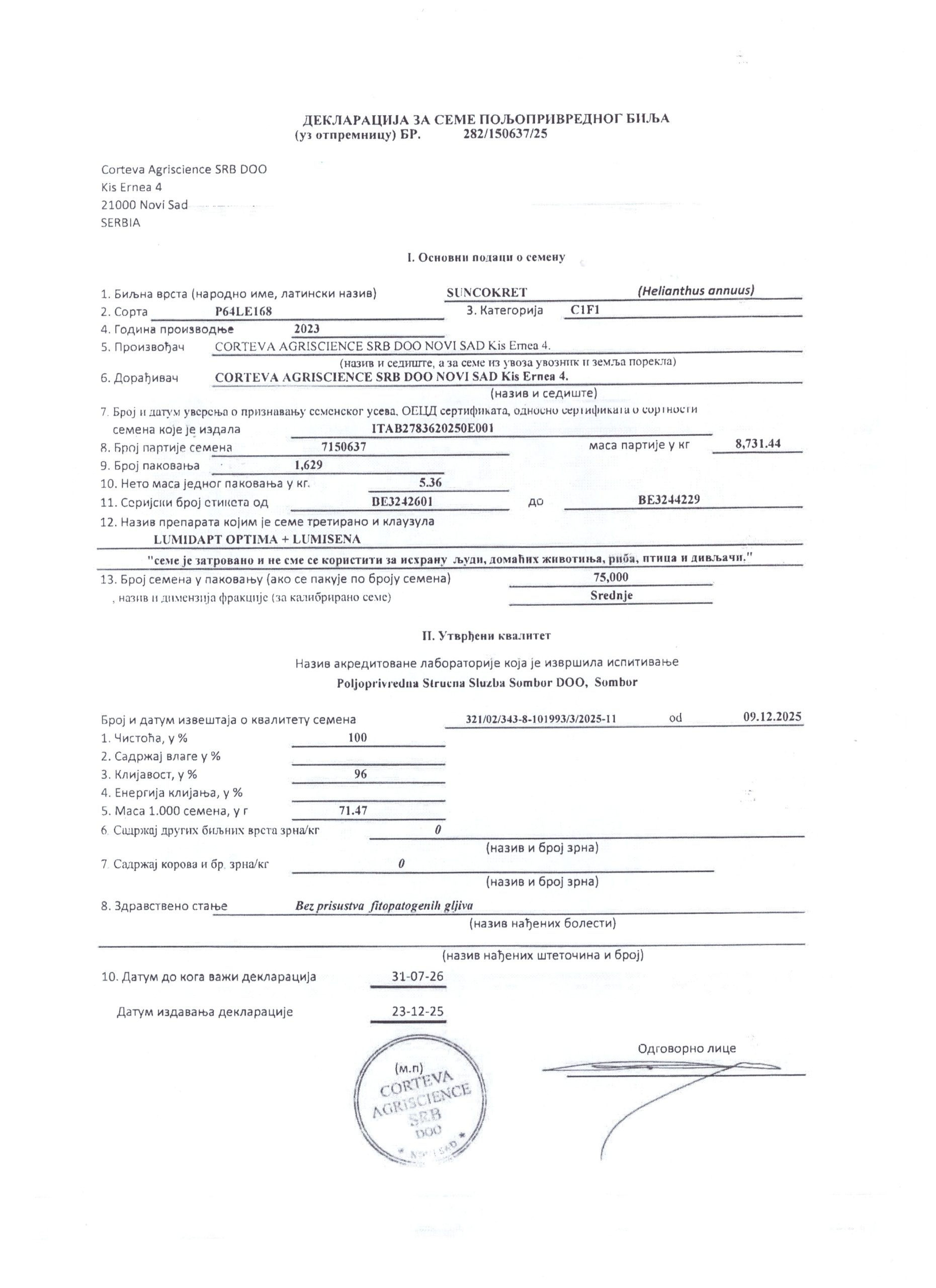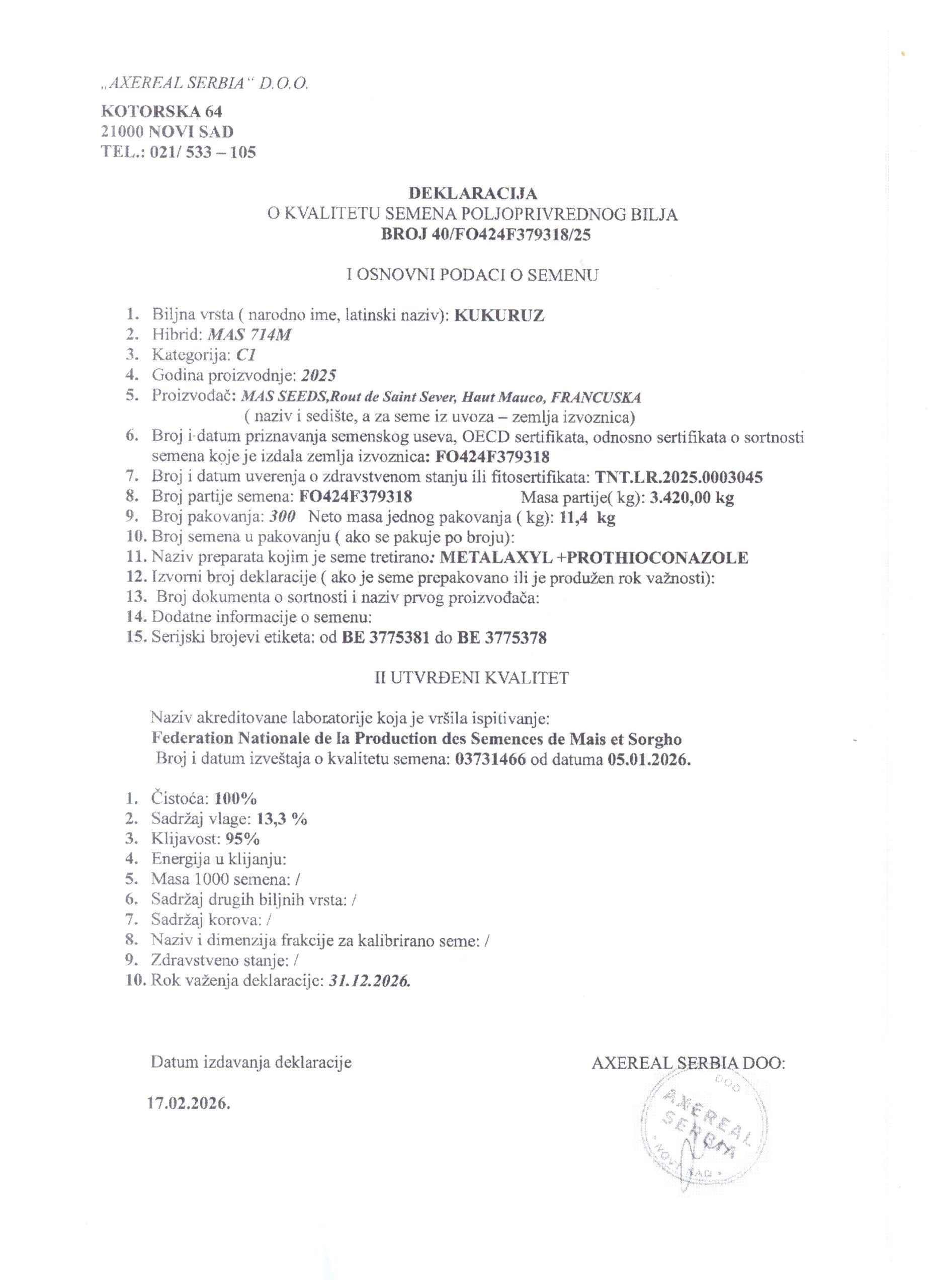 Uvoz i distribucija sredstava za zažštitu bilja kompanije NUFARM GmbH & Co KG, semena kukuruza i semena uljane repice kompanije MONSANTO INTERNATIONAL SARL.