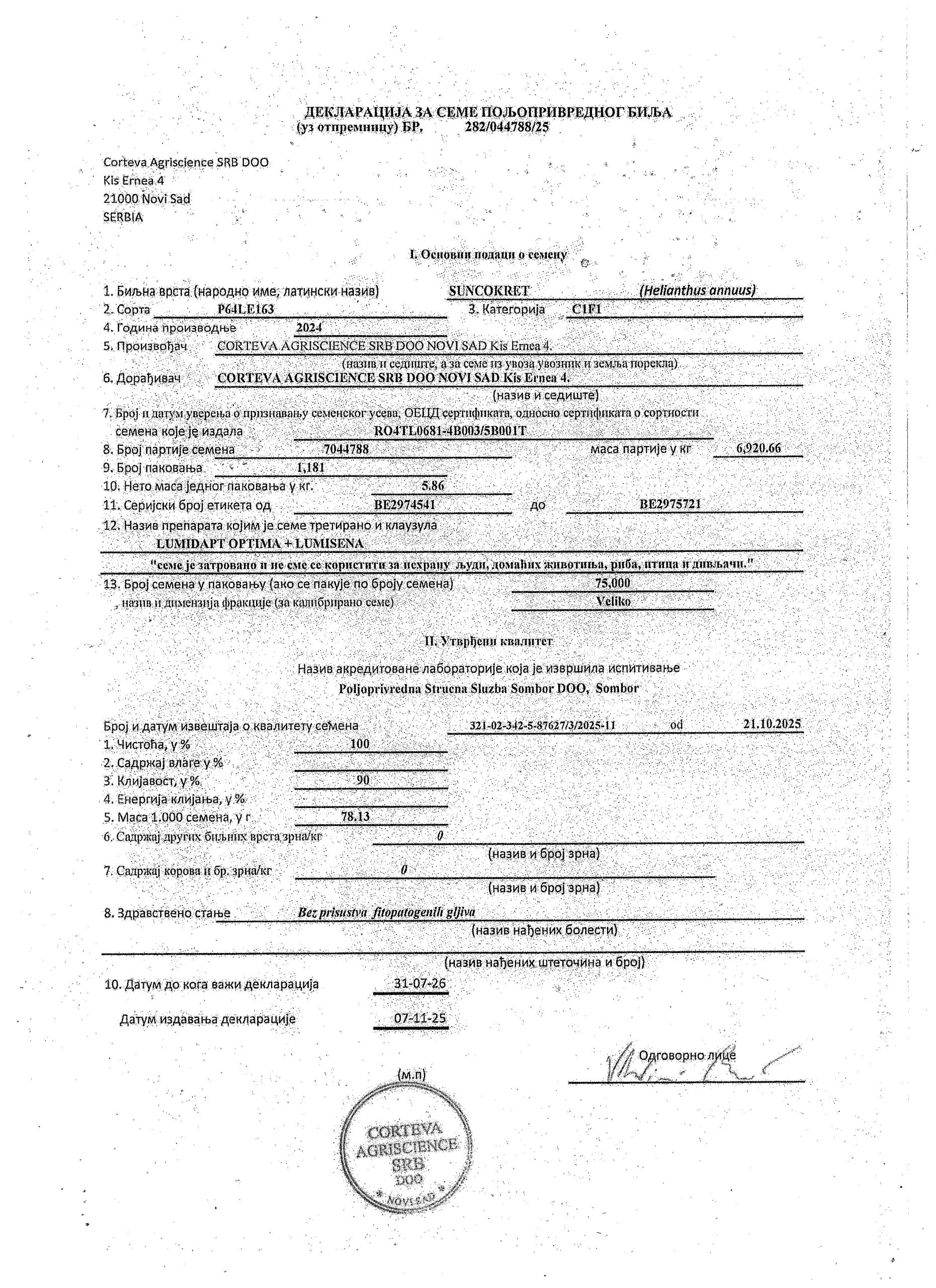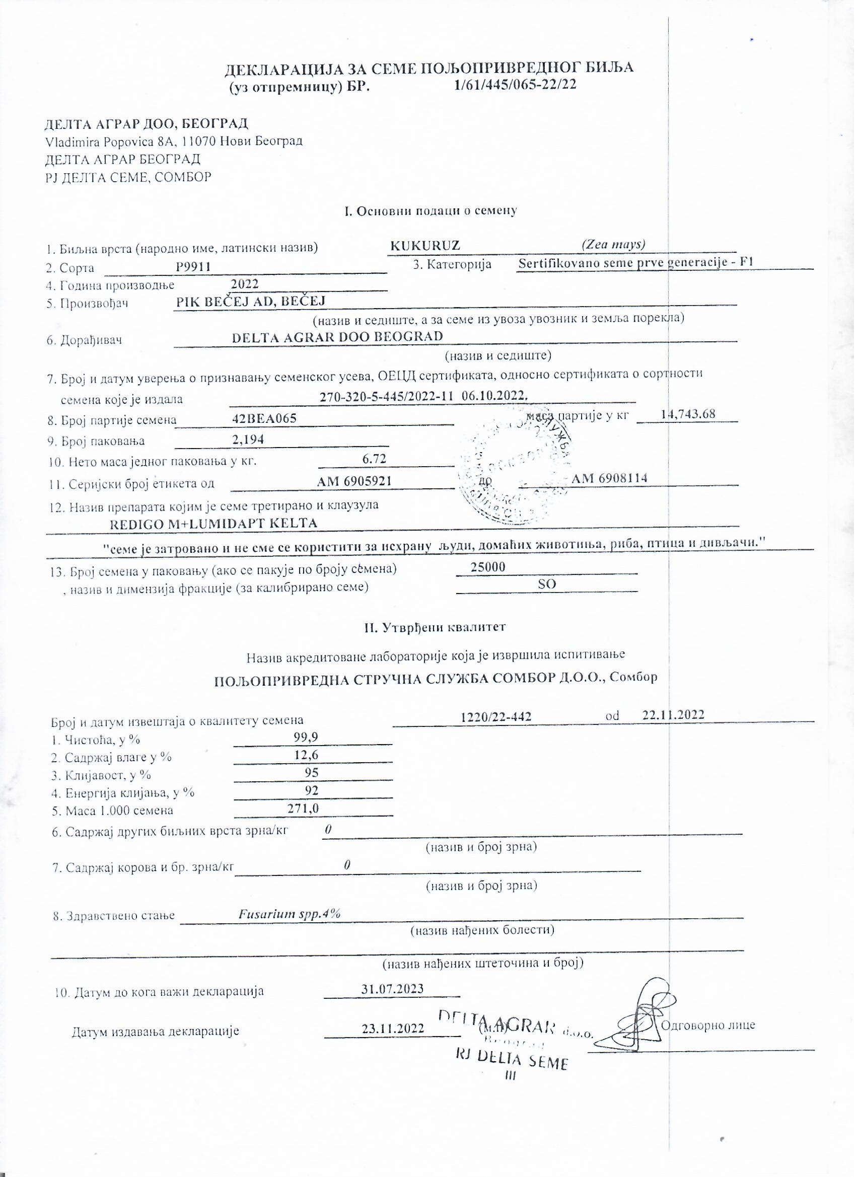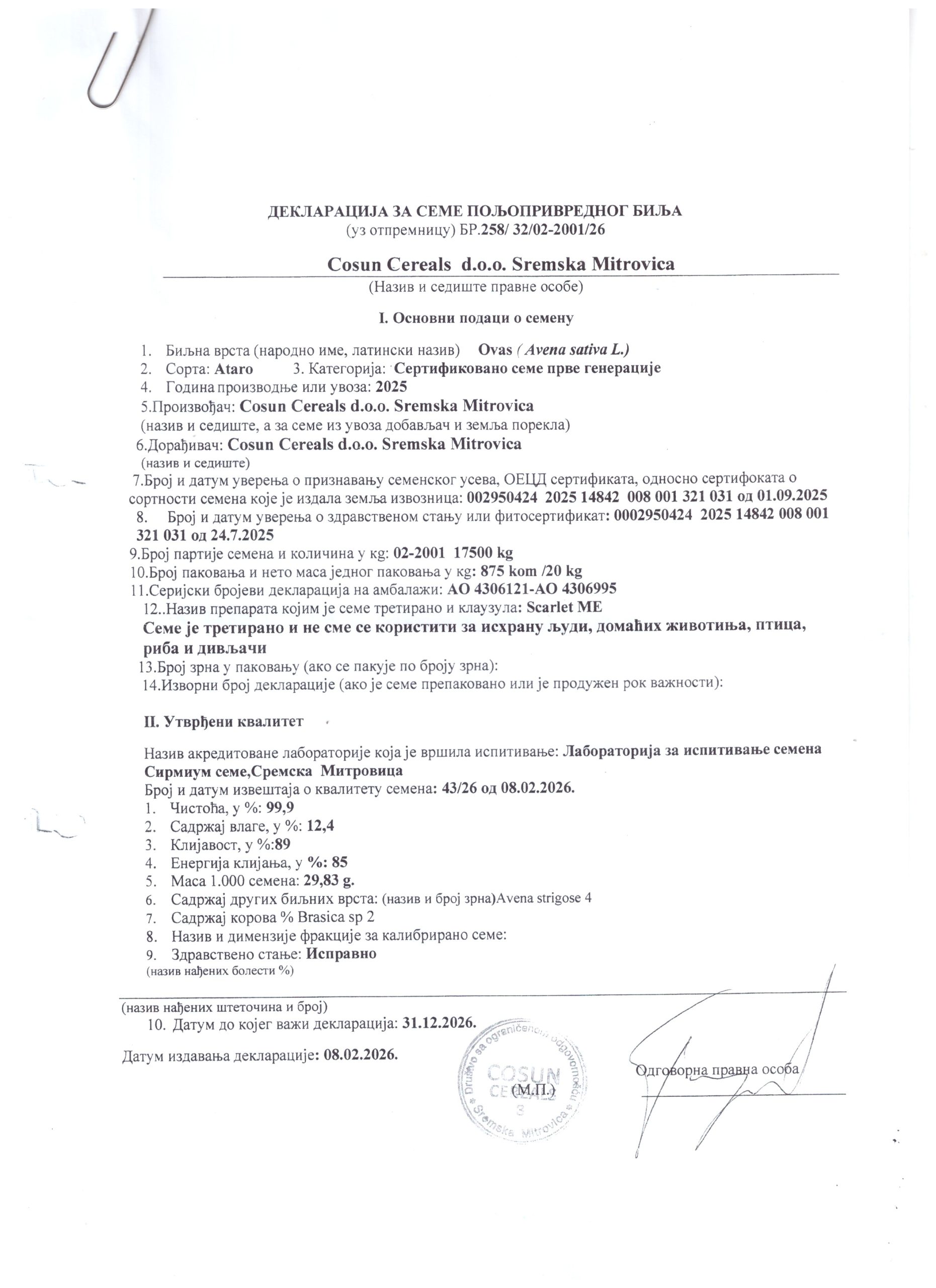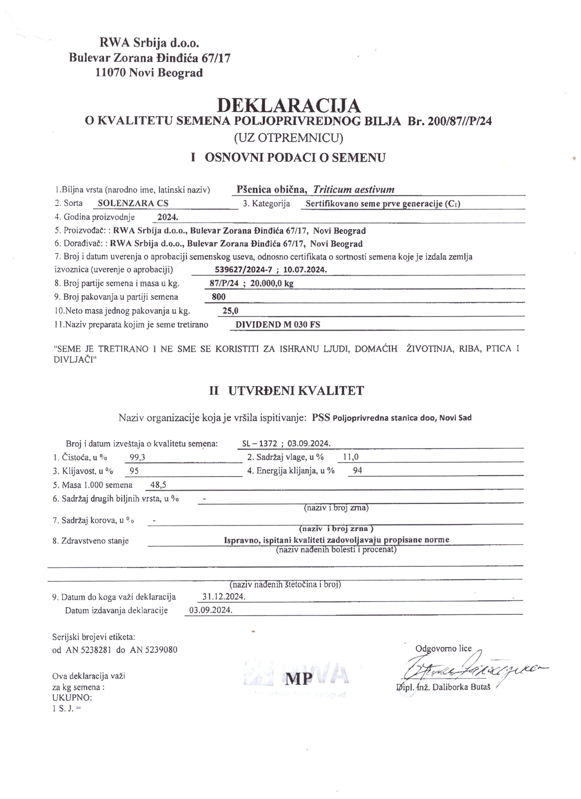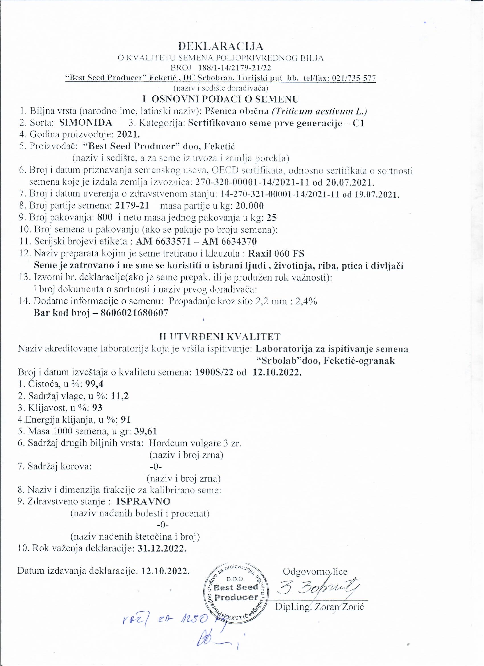 Uvoz i distribucija sredstava za zažštitu bilja kompanije NUFARM GmbH & Co KG, semena kukuruza i semena uljane repice kompanije MONSANTO INTERNATIONAL SARL.