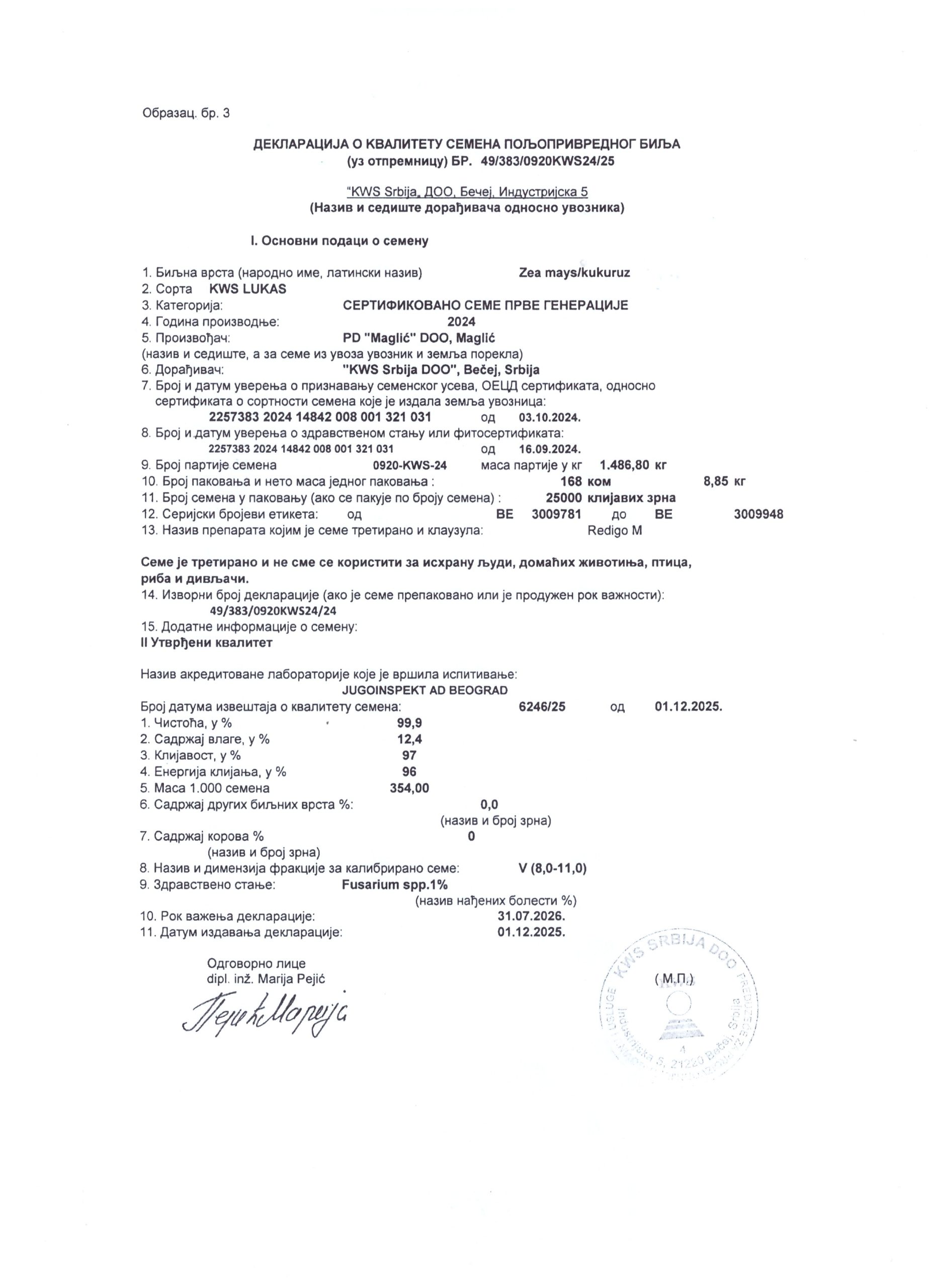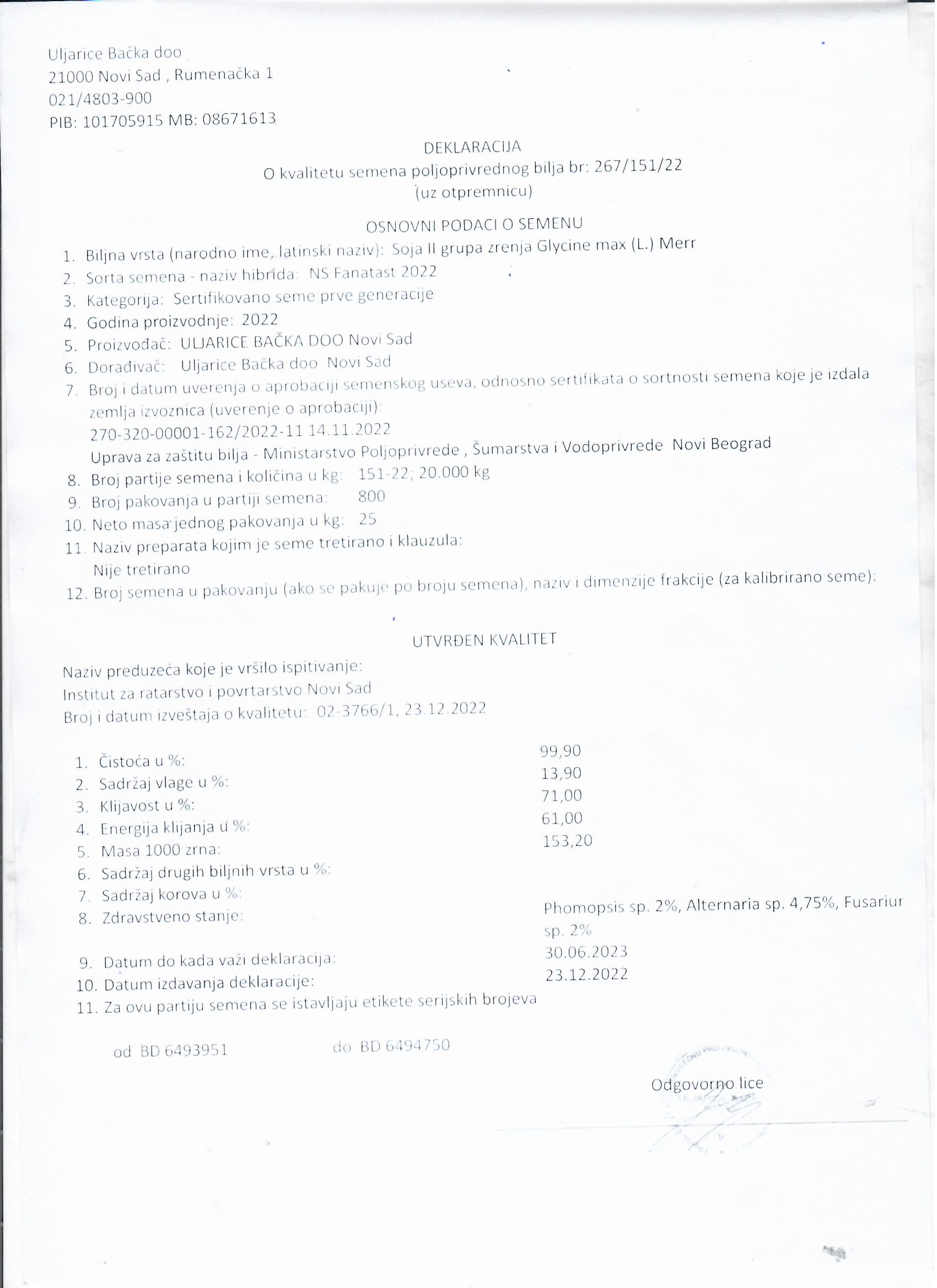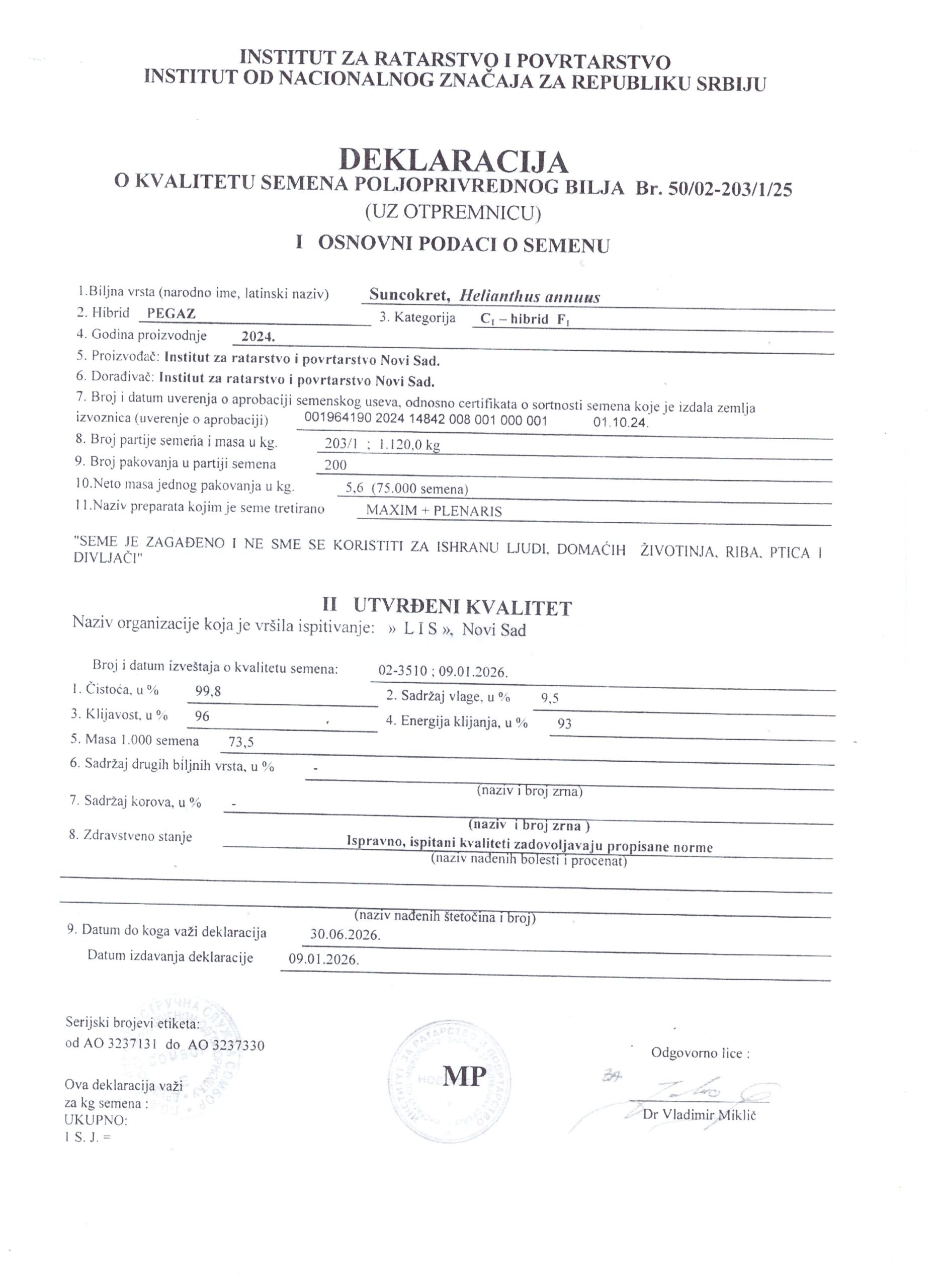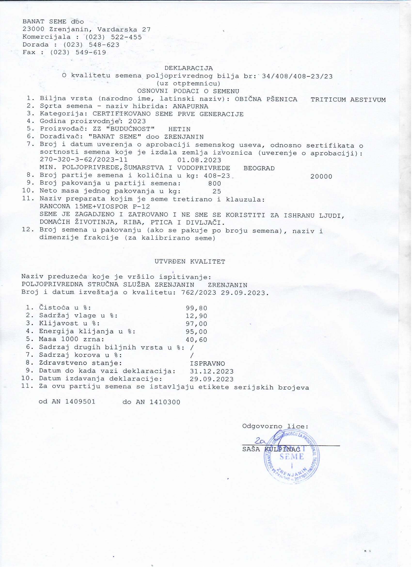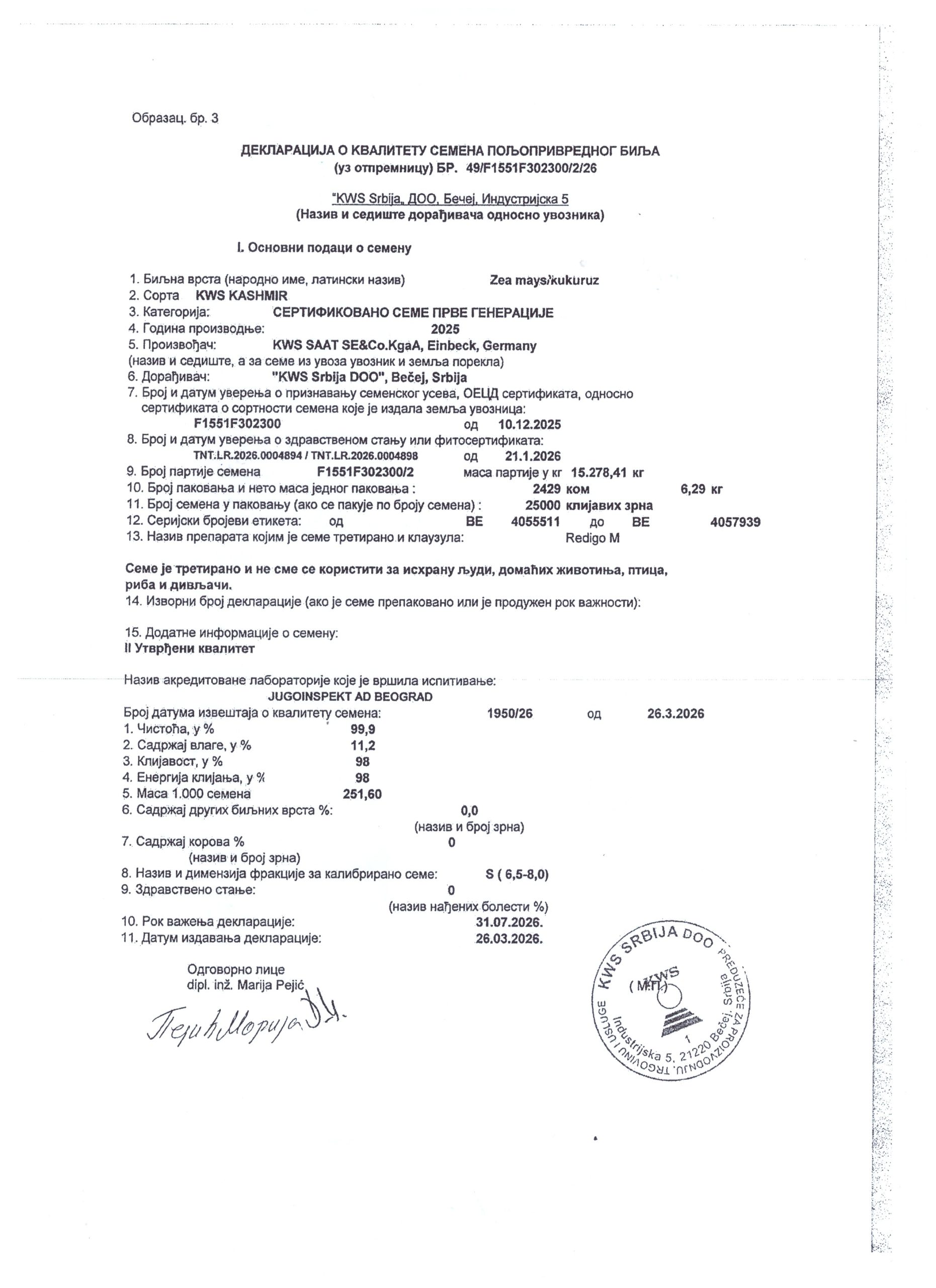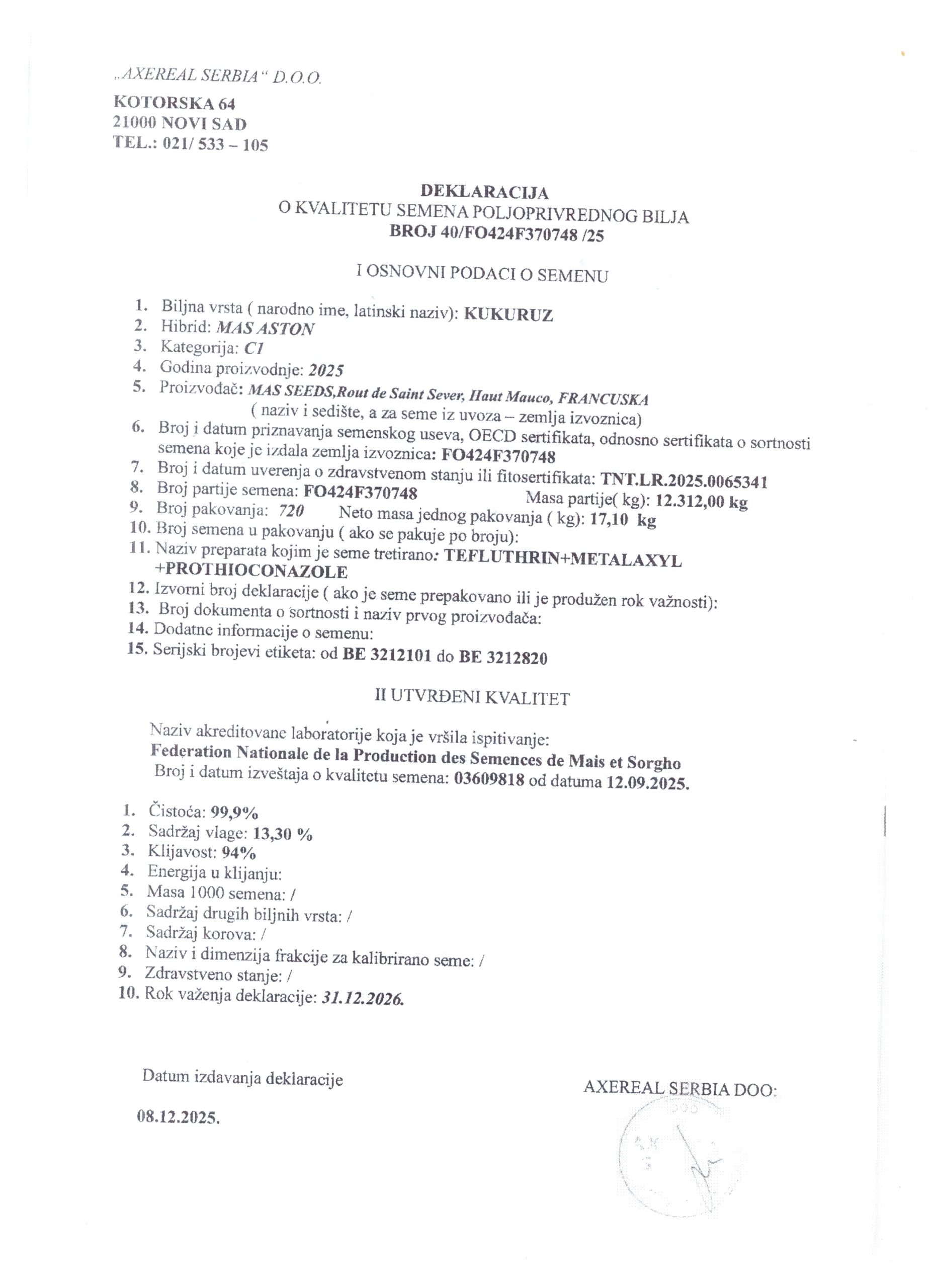 Uvoz i distribucija sredstava za zažštitu bilja kompanije NUFARM GmbH & Co KG, semena kukuruza i semena uljane repice kompanije MONSANTO INTERNATIONAL SARL.