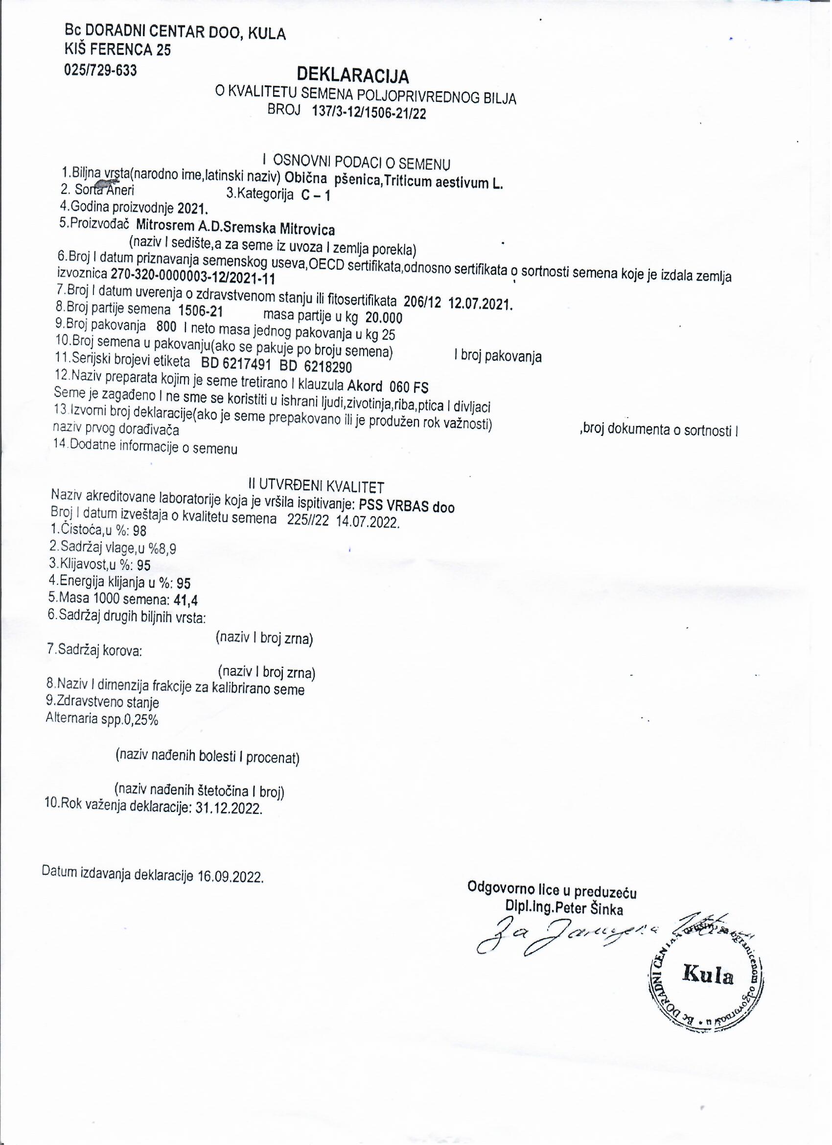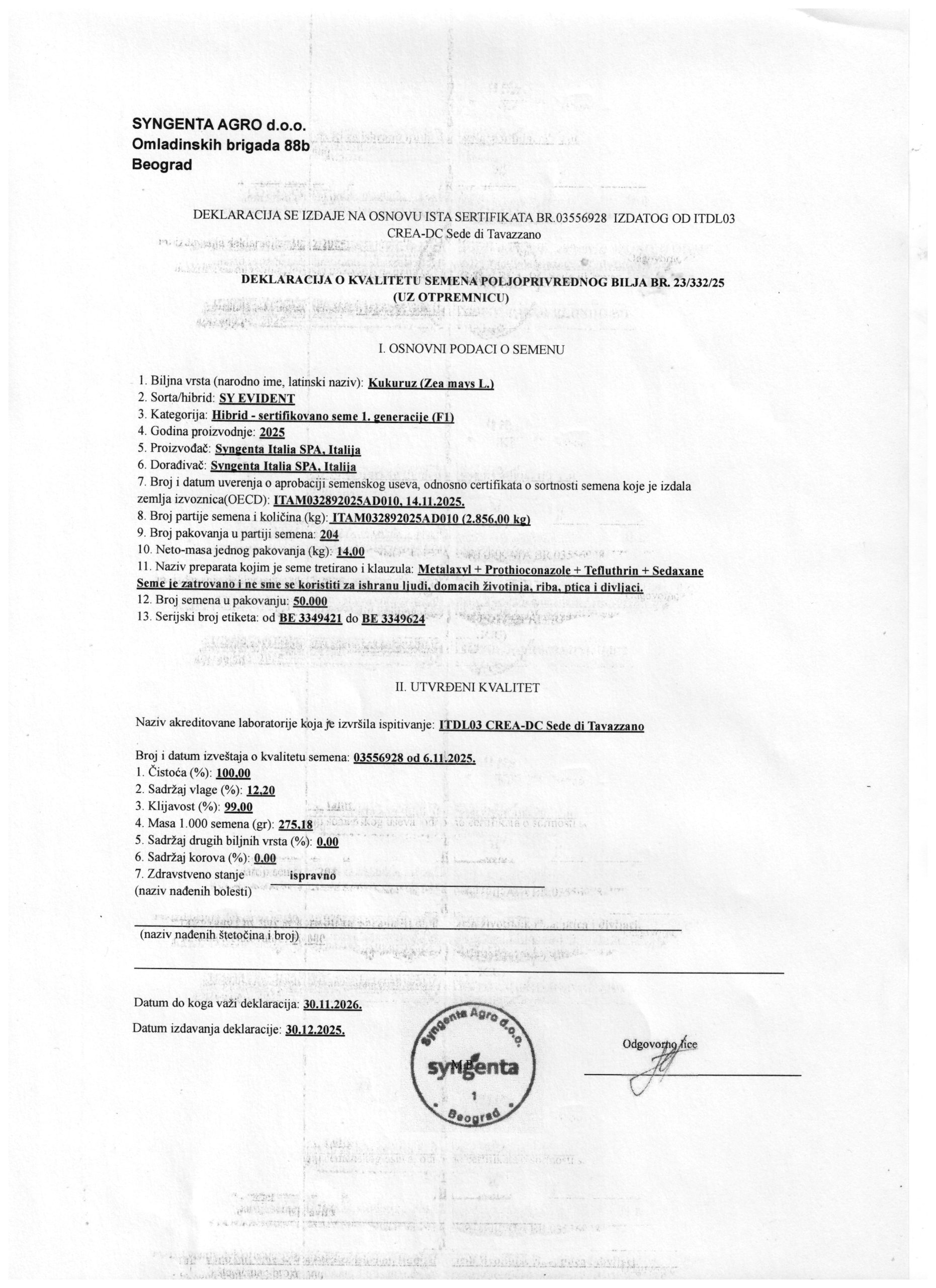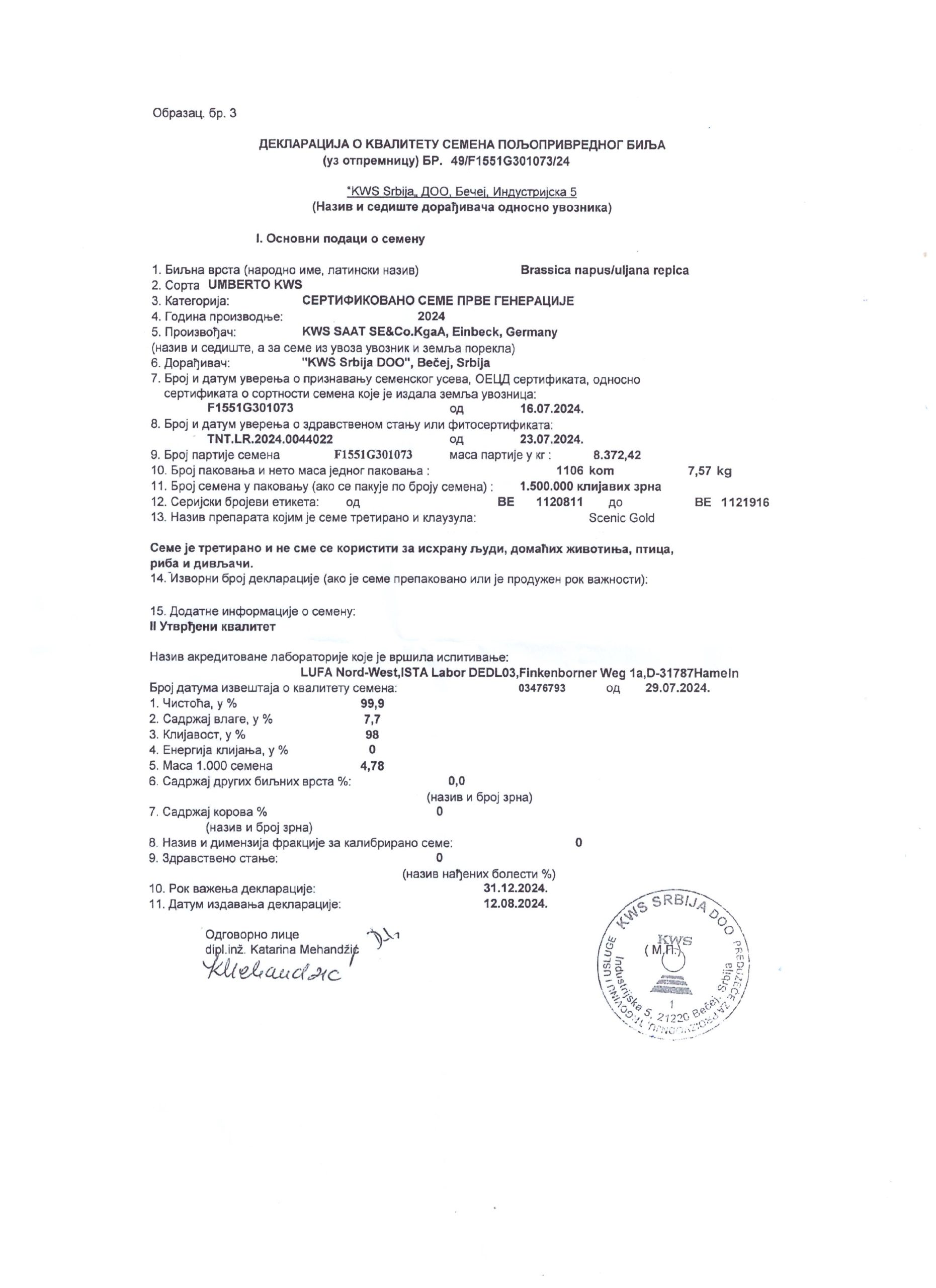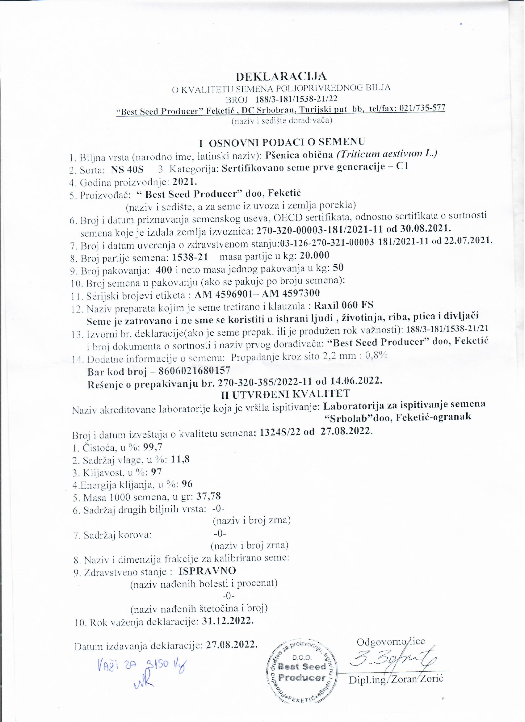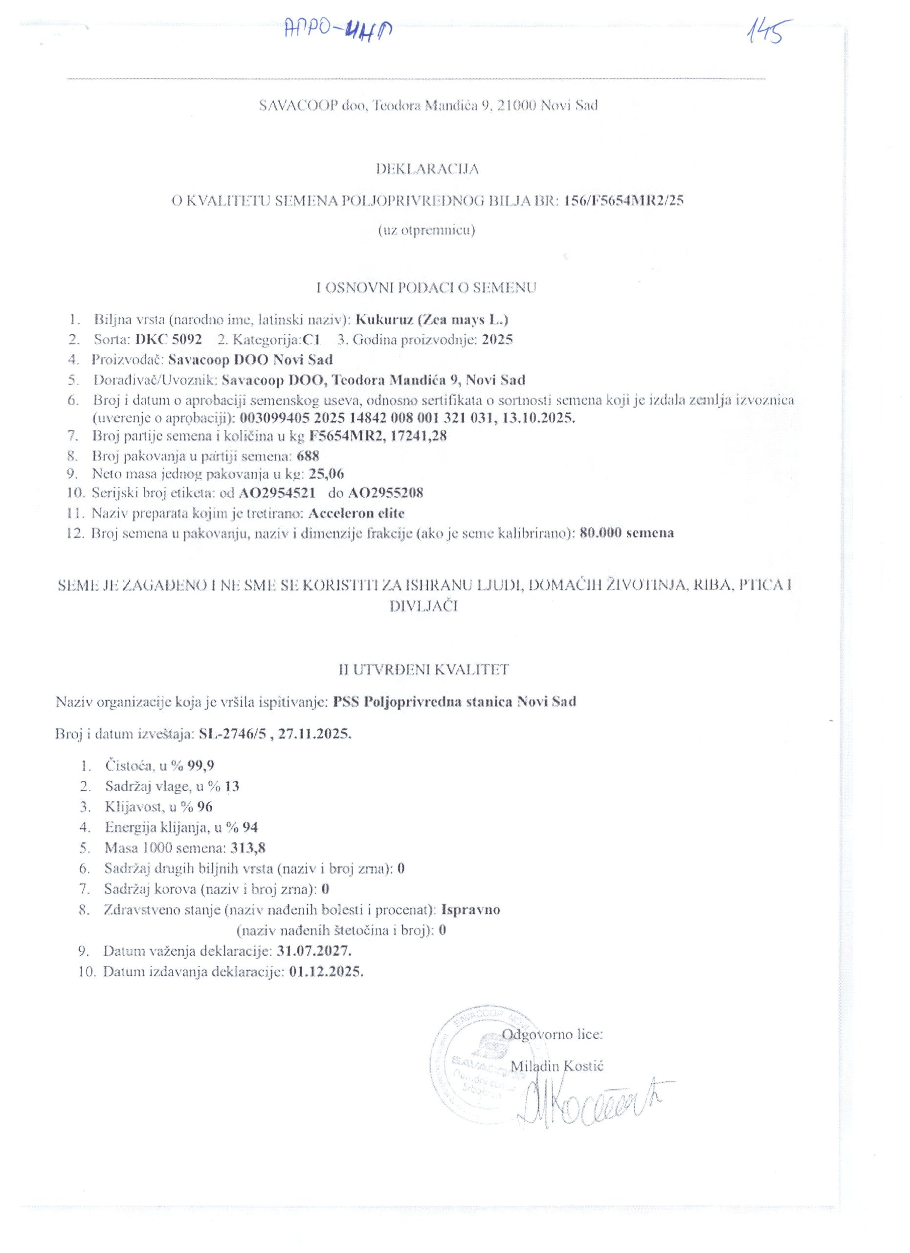 Uvoz i distribucija sredstava za zažštitu bilja kompanije NUFARM GmbH & Co KG, semena kukuruza i semena uljane repice kompanije MONSANTO INTERNATIONAL SARL.