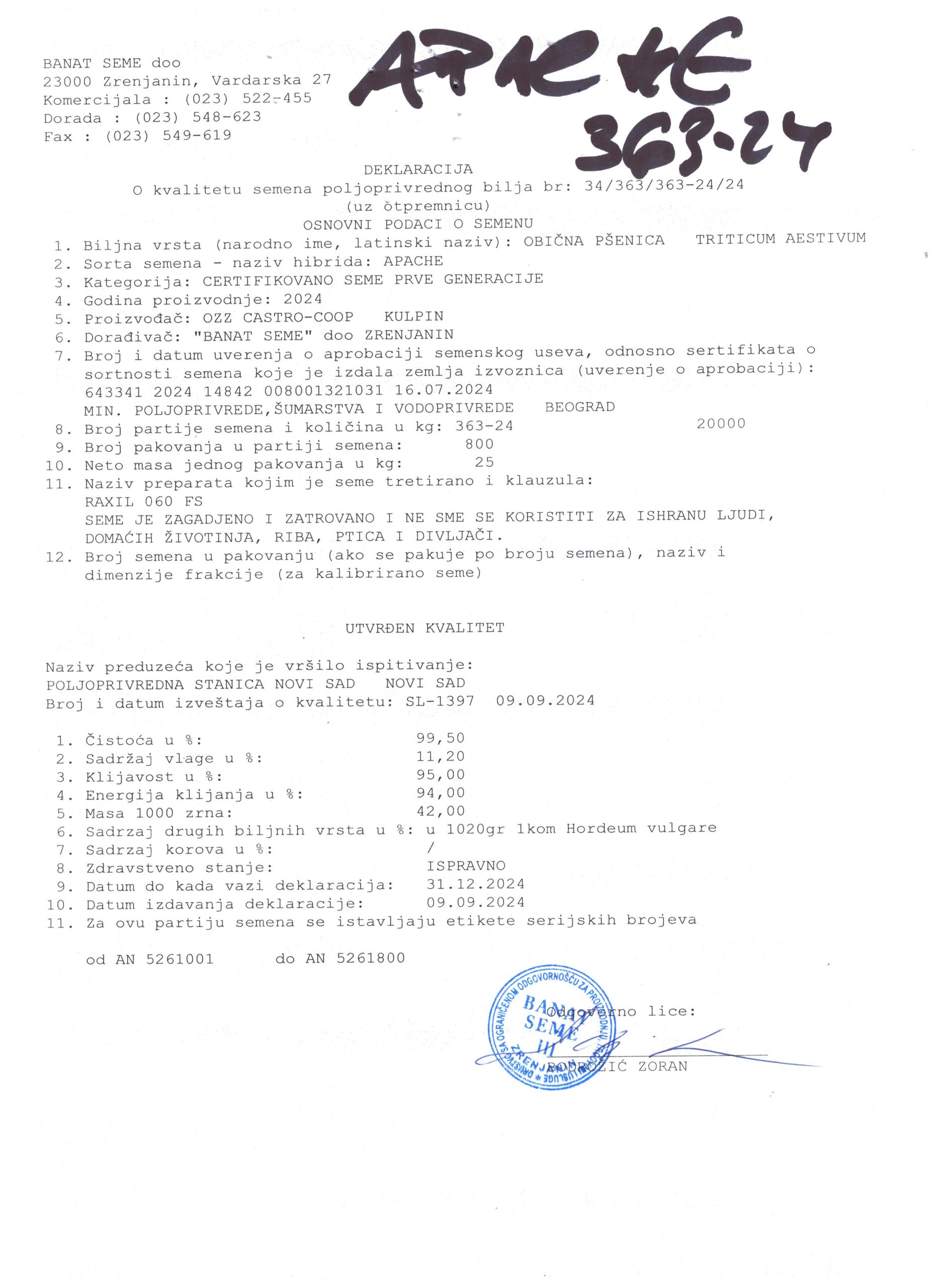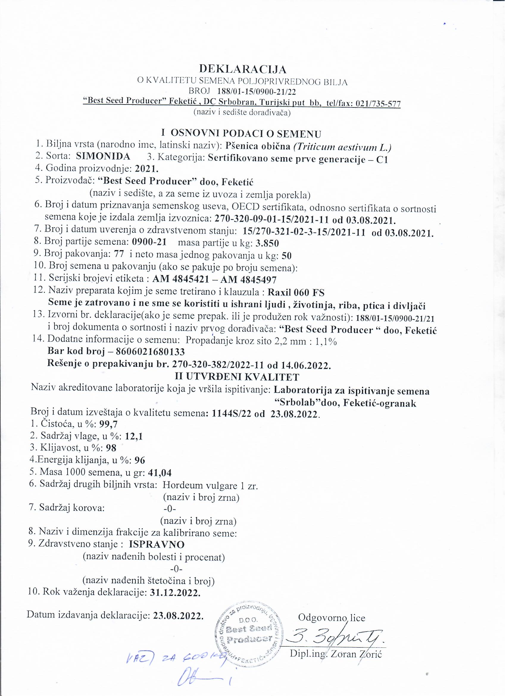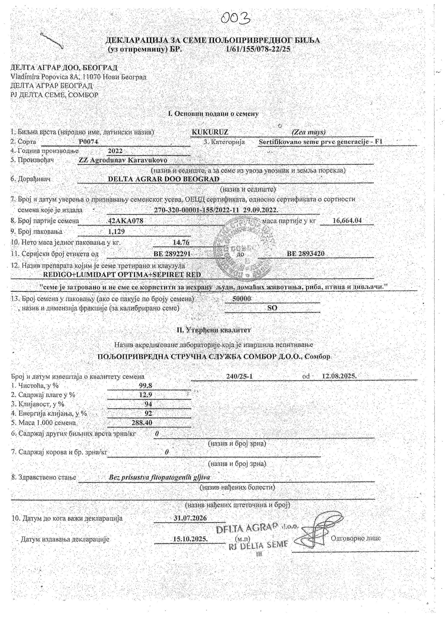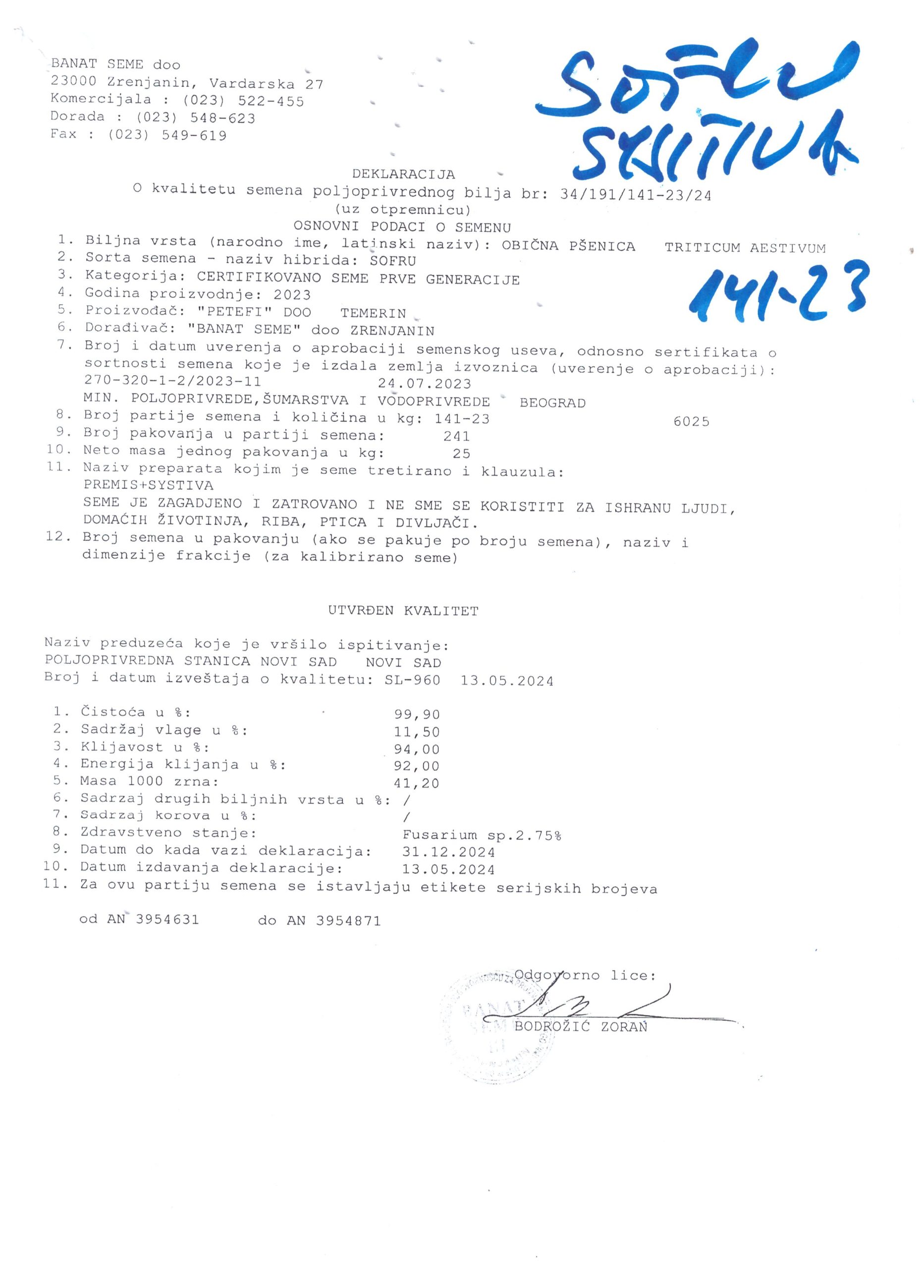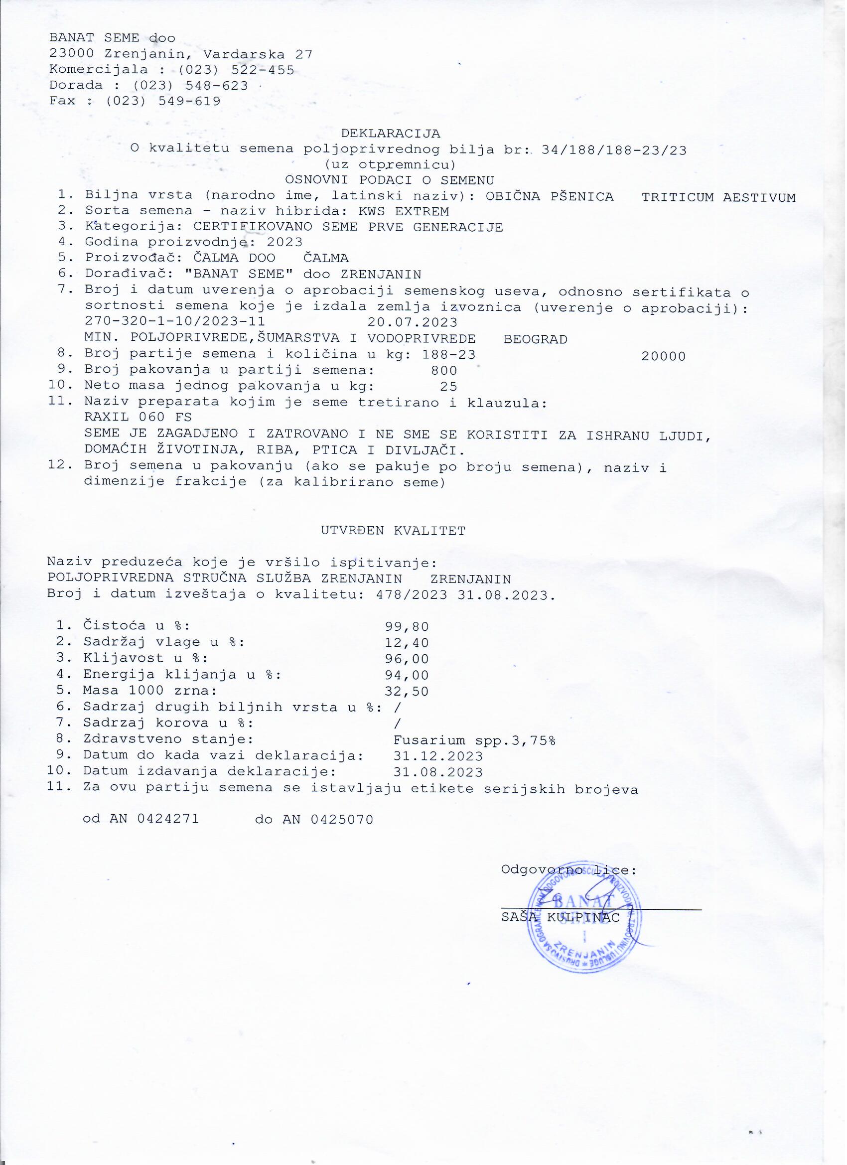 Uvoz i distribucija sredstava za zažštitu bilja kompanije NUFARM GmbH & Co KG, semena kukuruza i semena uljane repice kompanije MONSANTO INTERNATIONAL SARL.